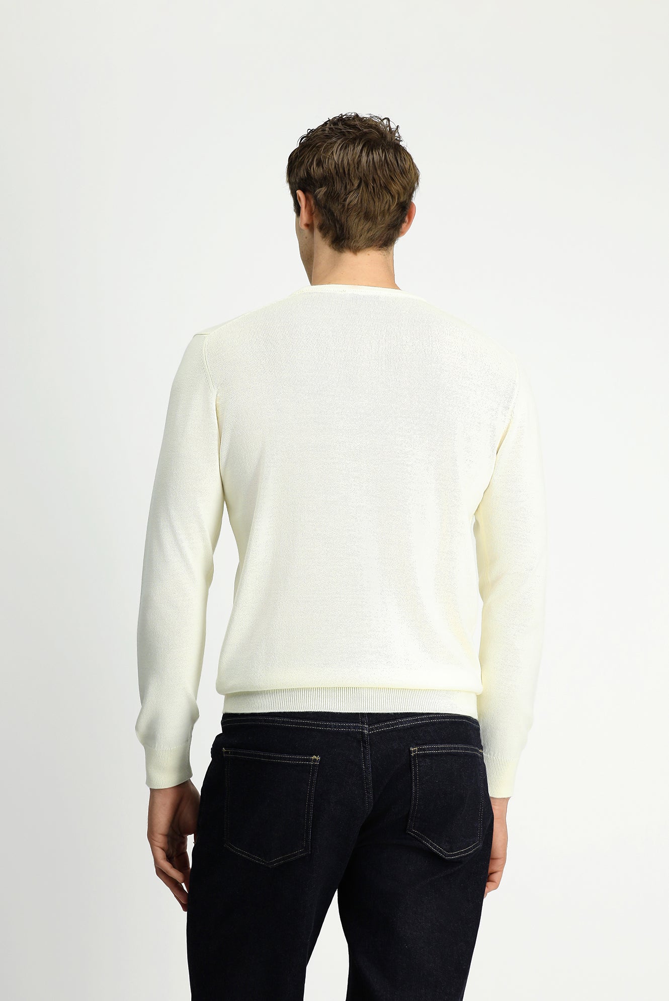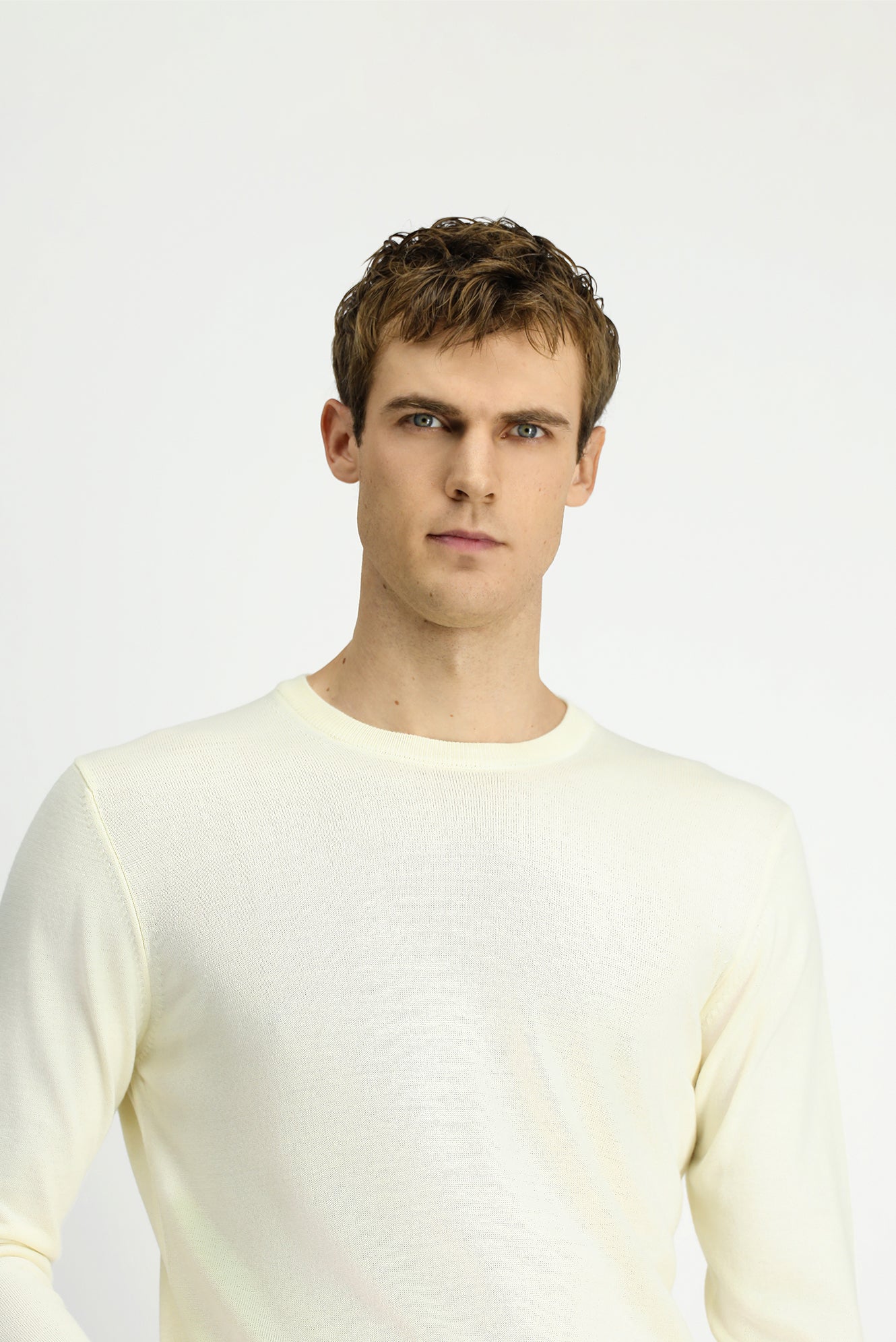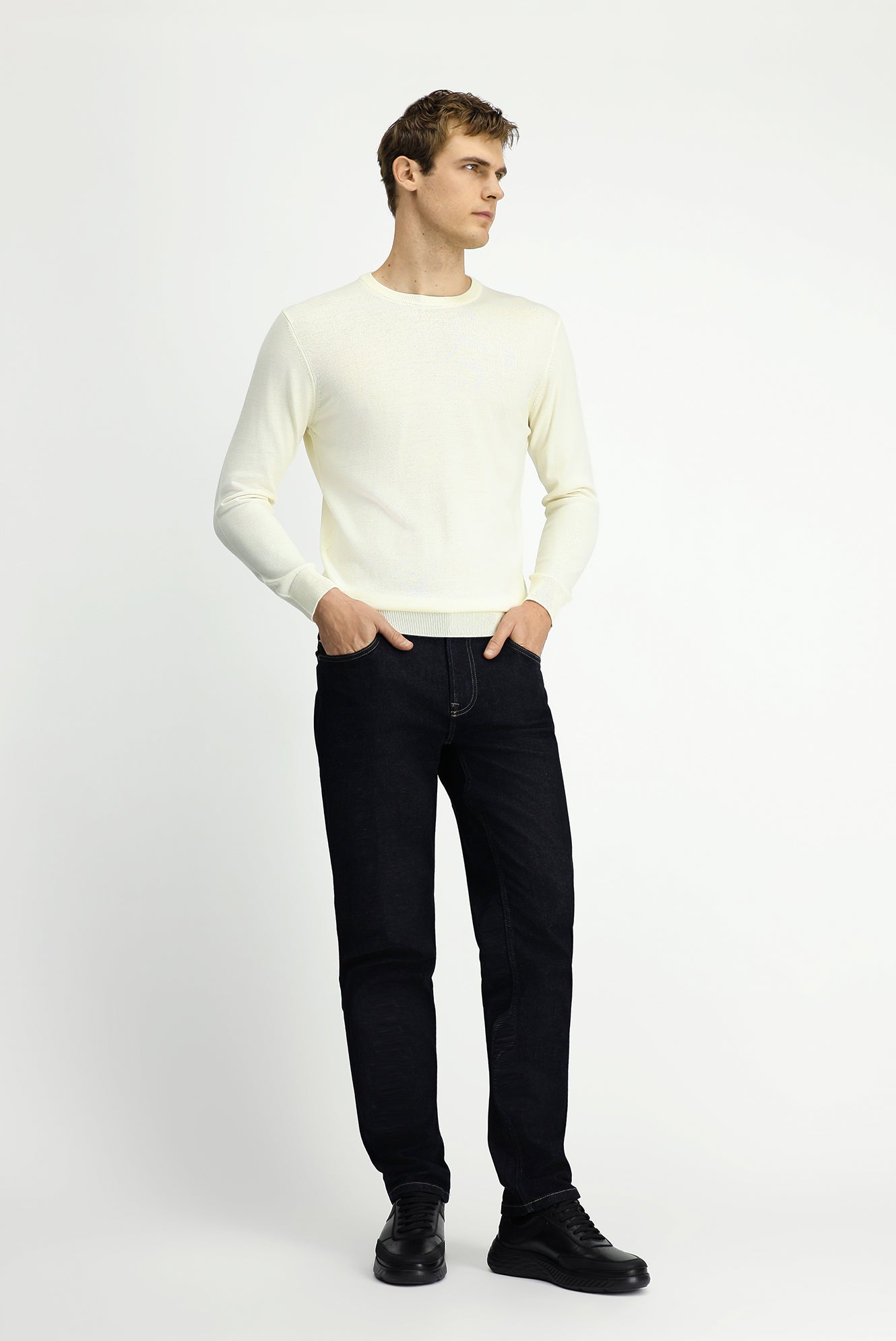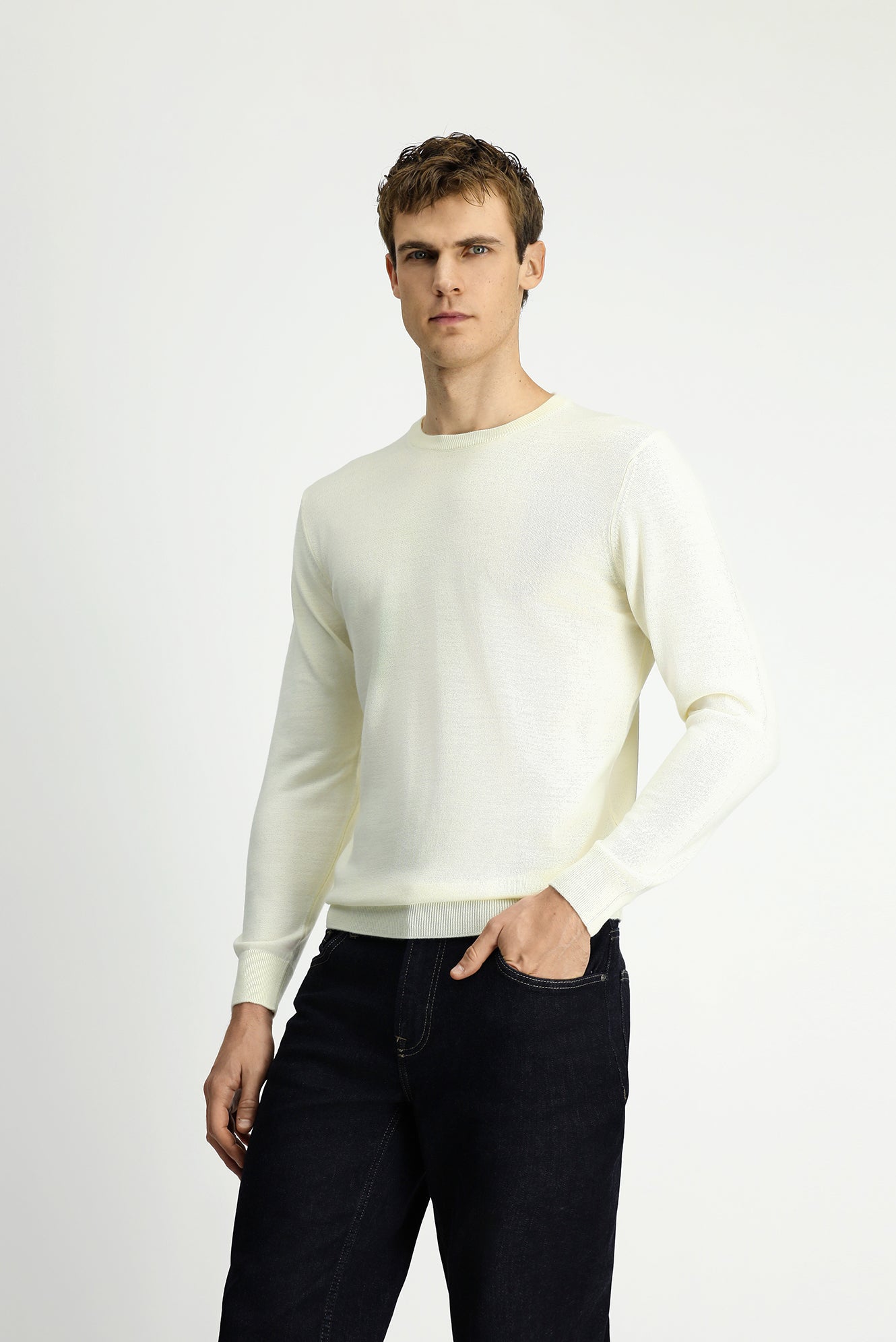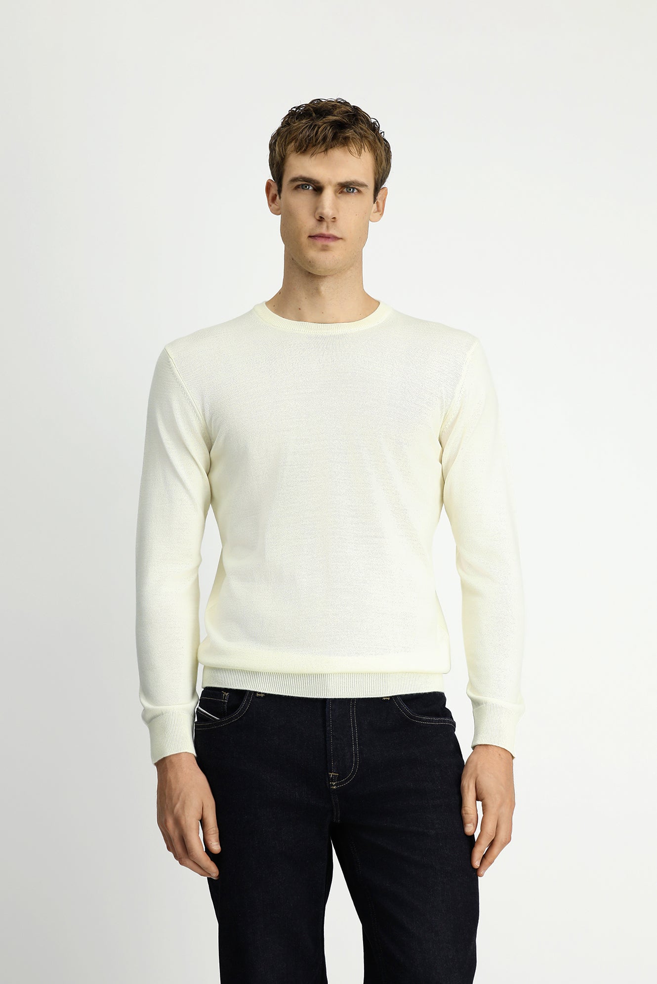 Ekru Bisiklet Yaka Regular Fit Yünlü Örme Triko Kazak