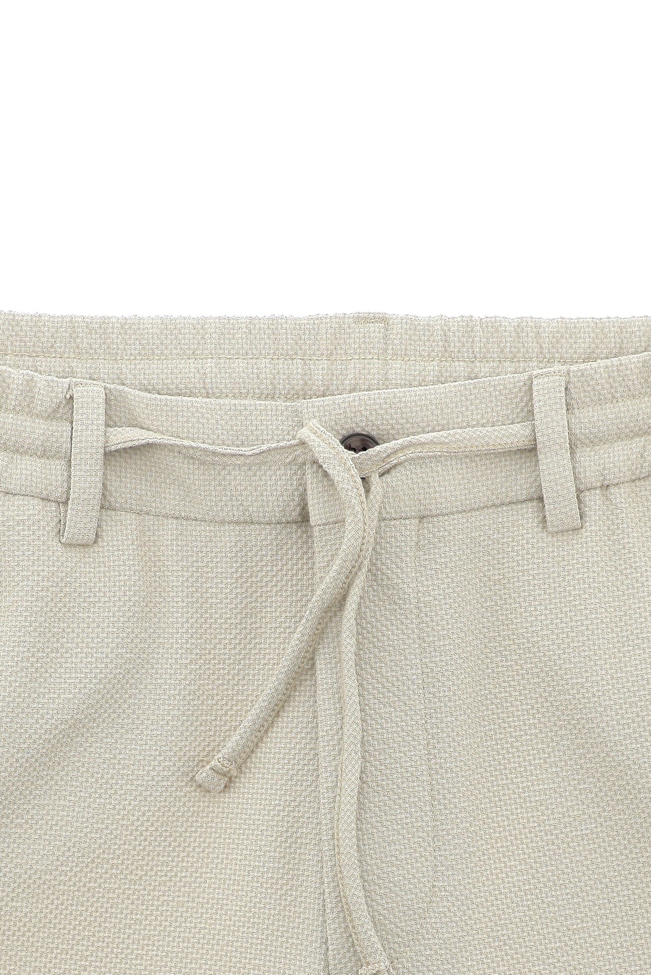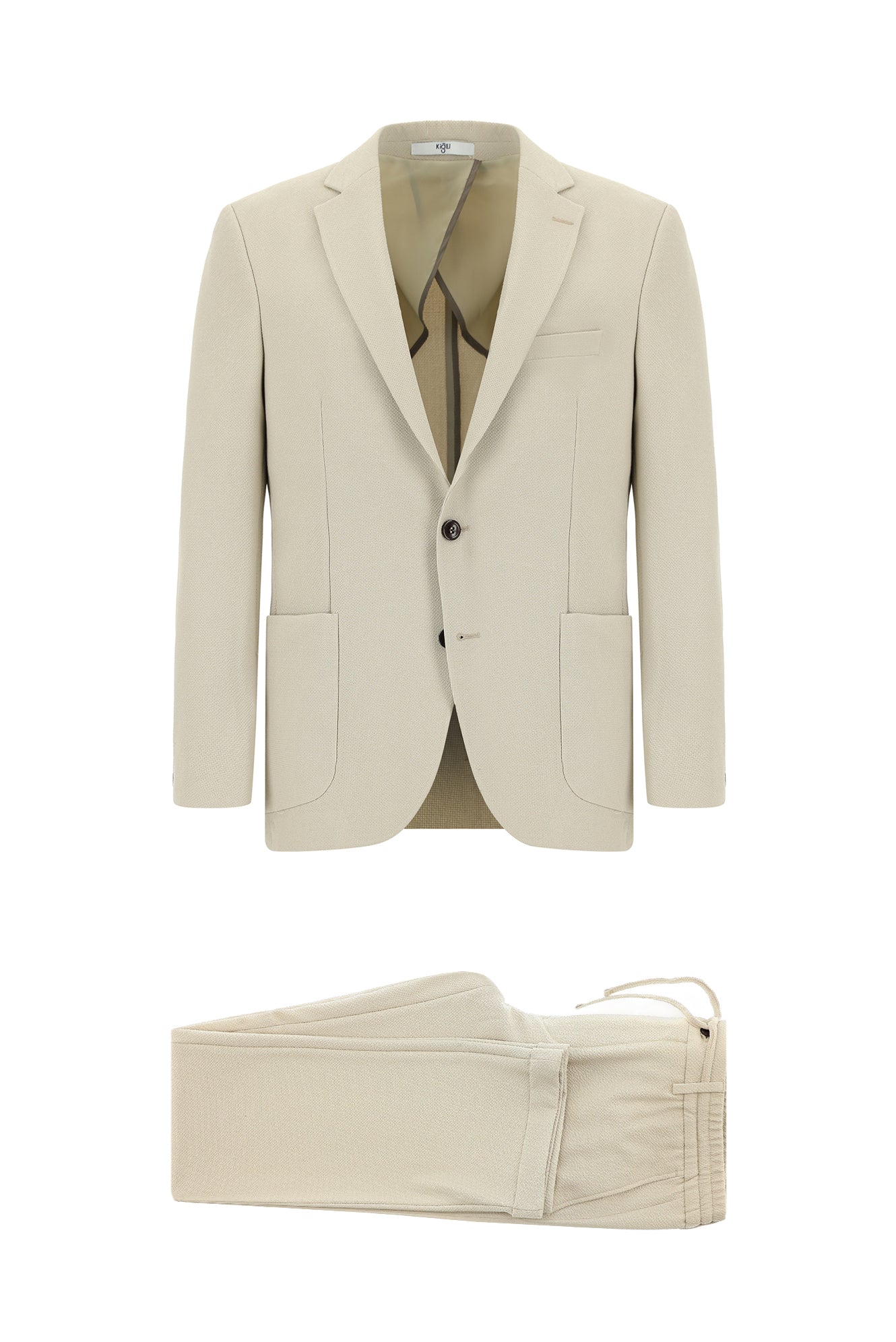 Ekru 6 Drop Regular Fit Standart Kesim Çizgili Beli Lastikli İpli Takım Elbise