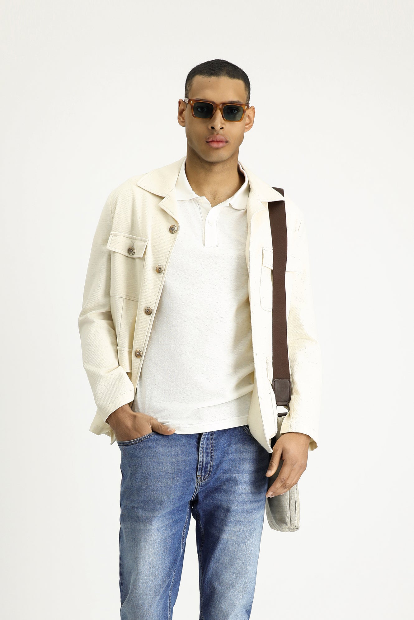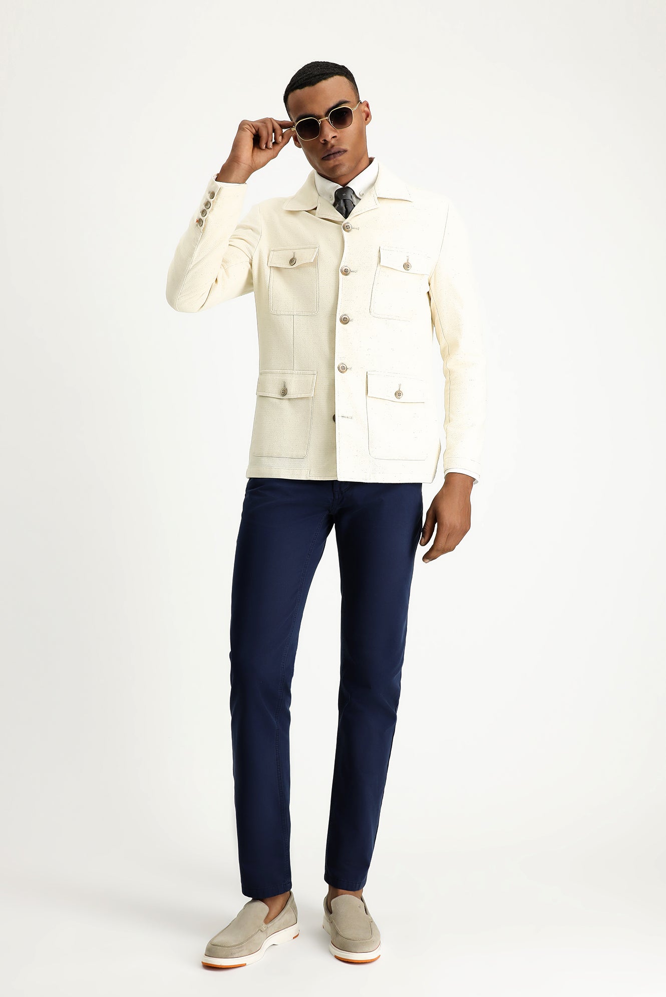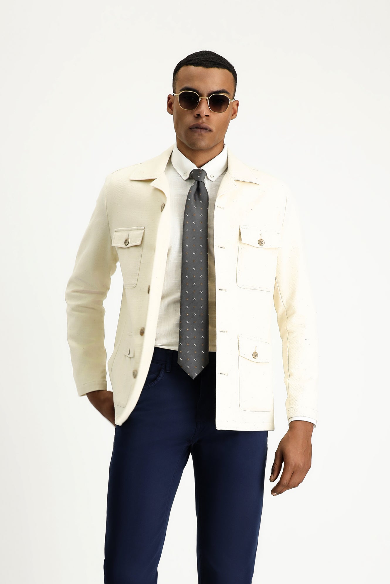 Ekru Regular Fit Keten Karışımlı Spor Ceket