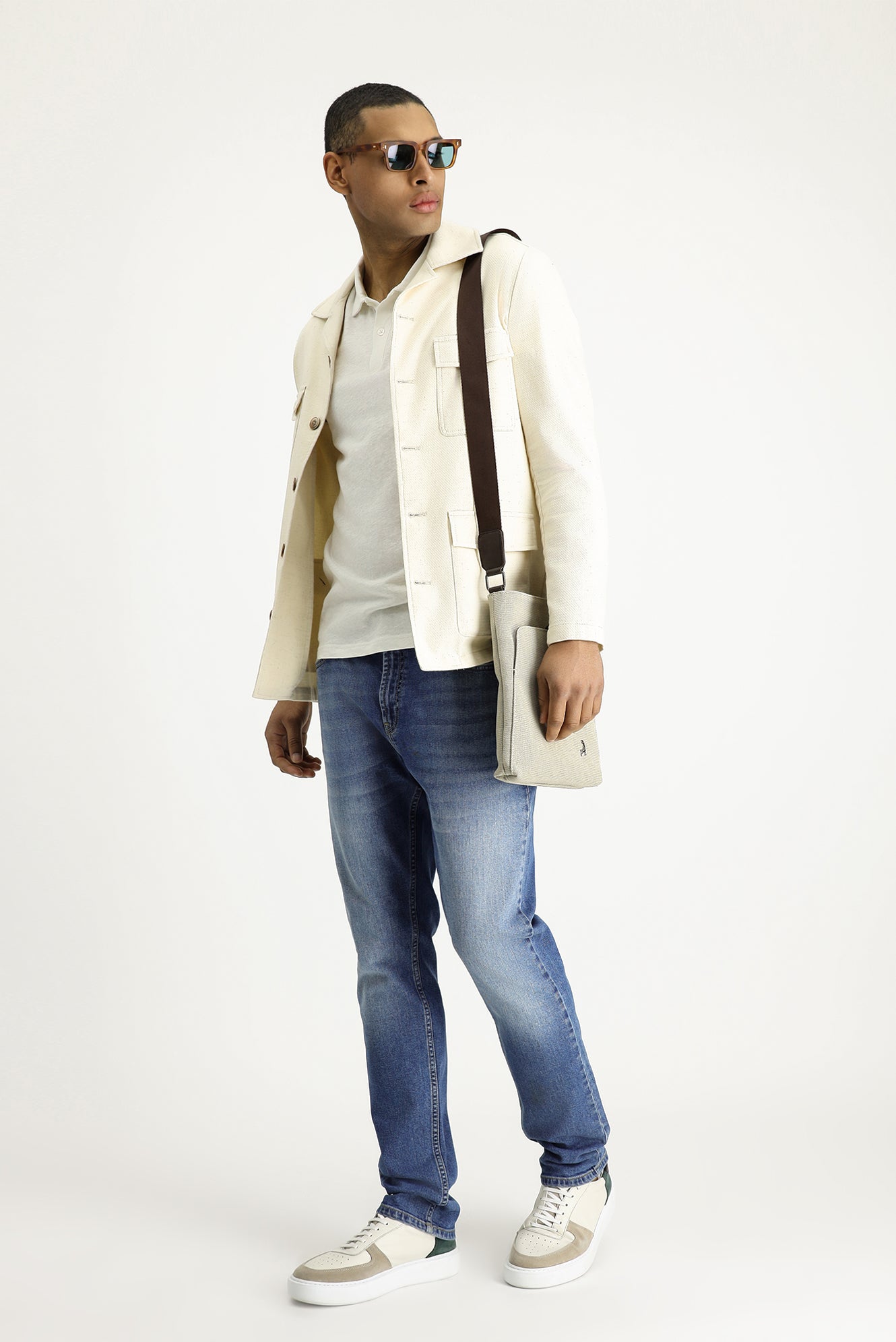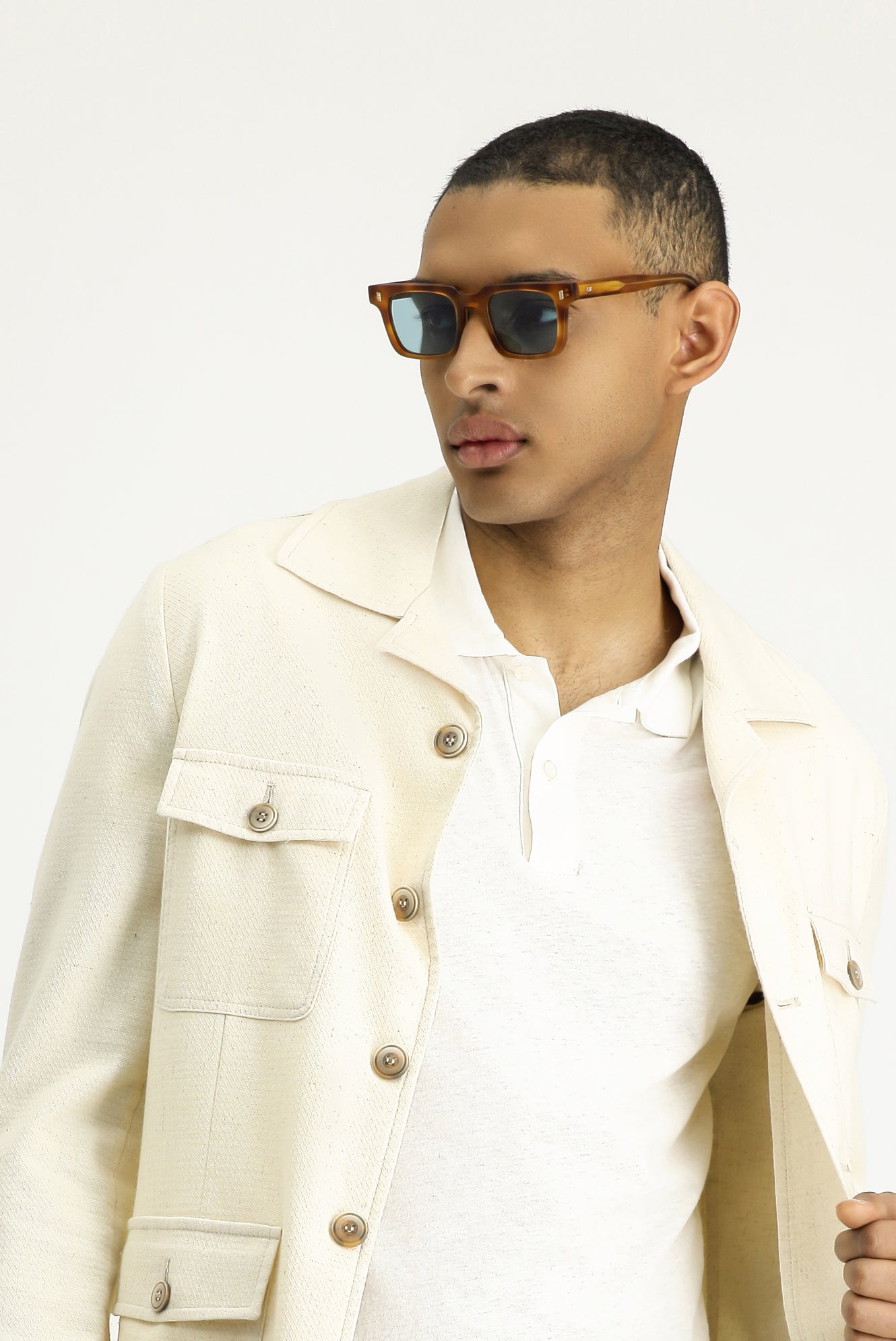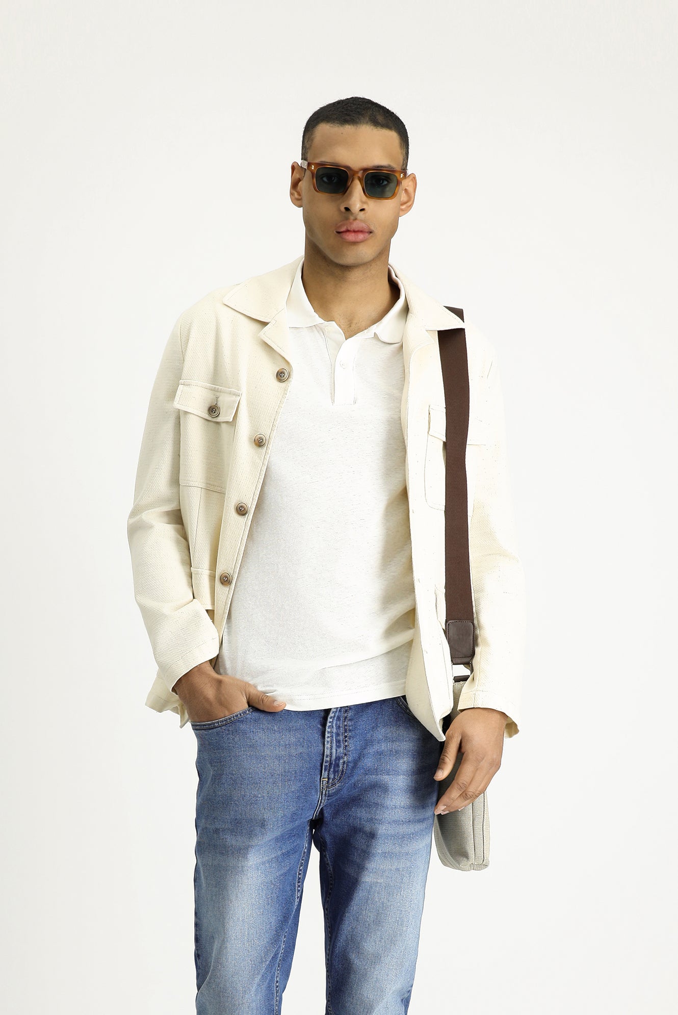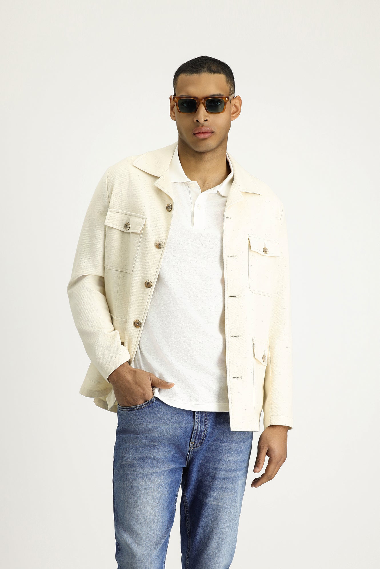 Ekru Regular Fit Keten Karışımlı Spor Ceket
