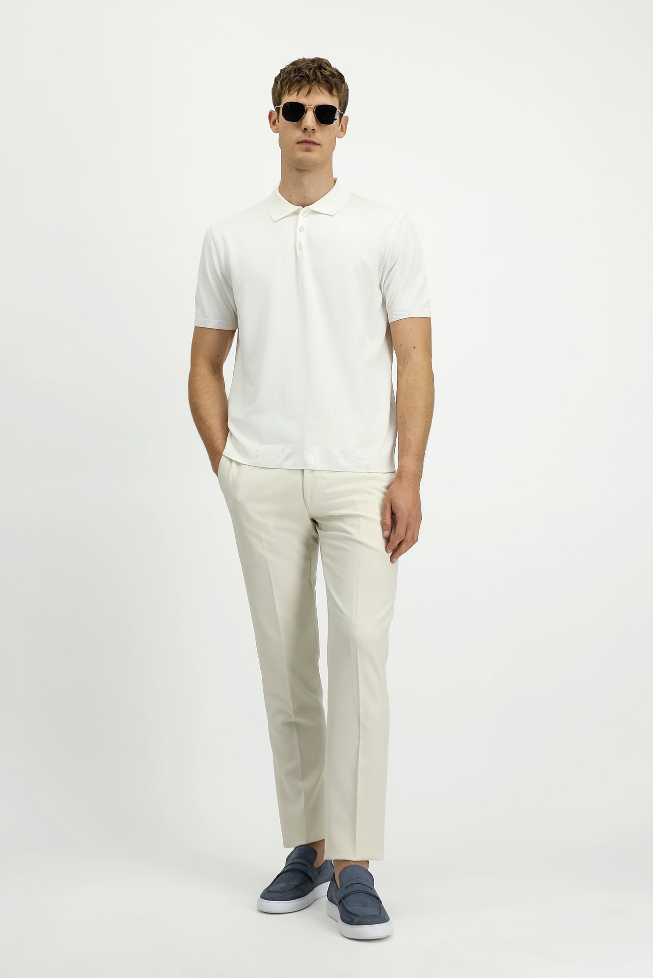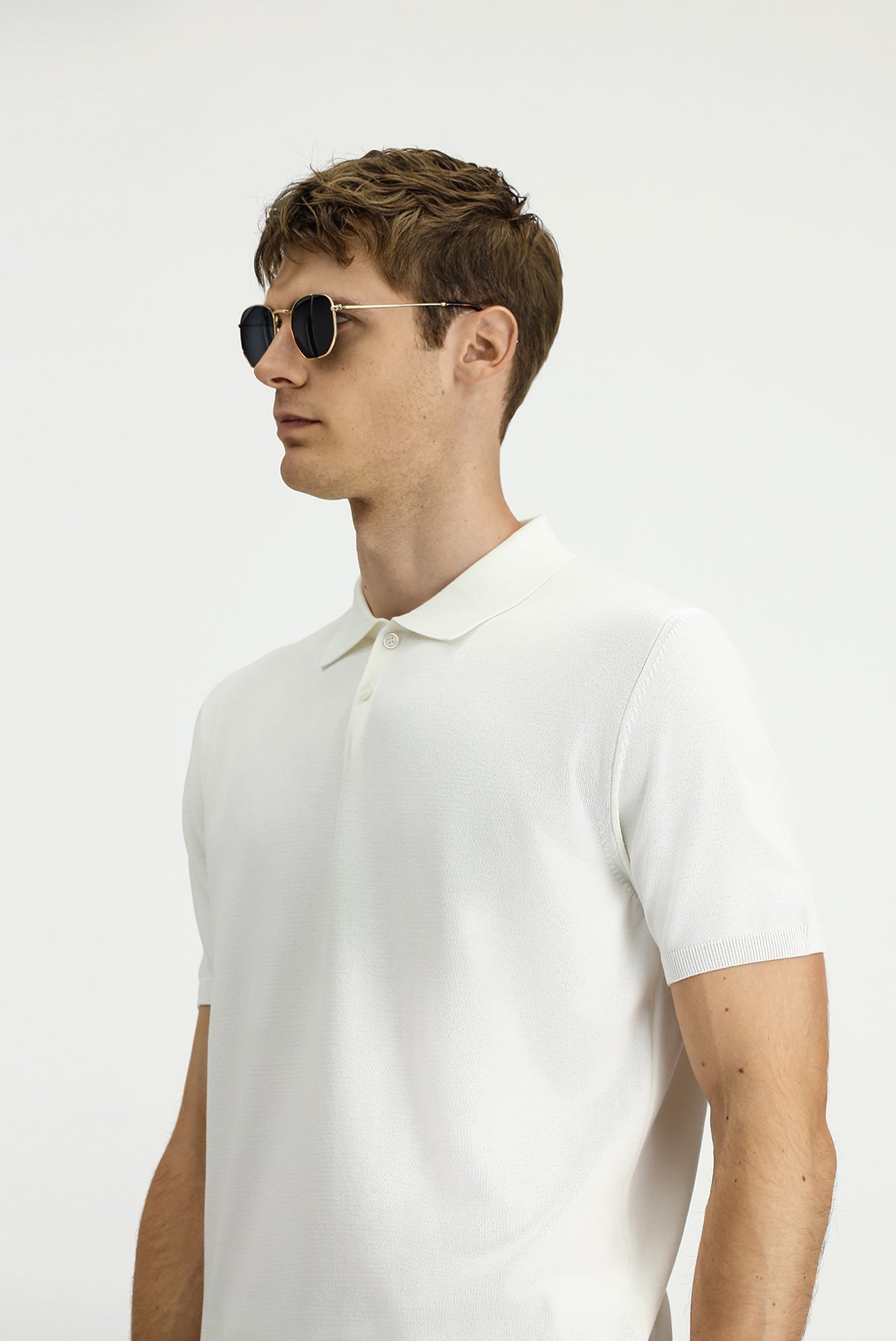 Ekru Regular Fit Polo Yaka Triko Tişört