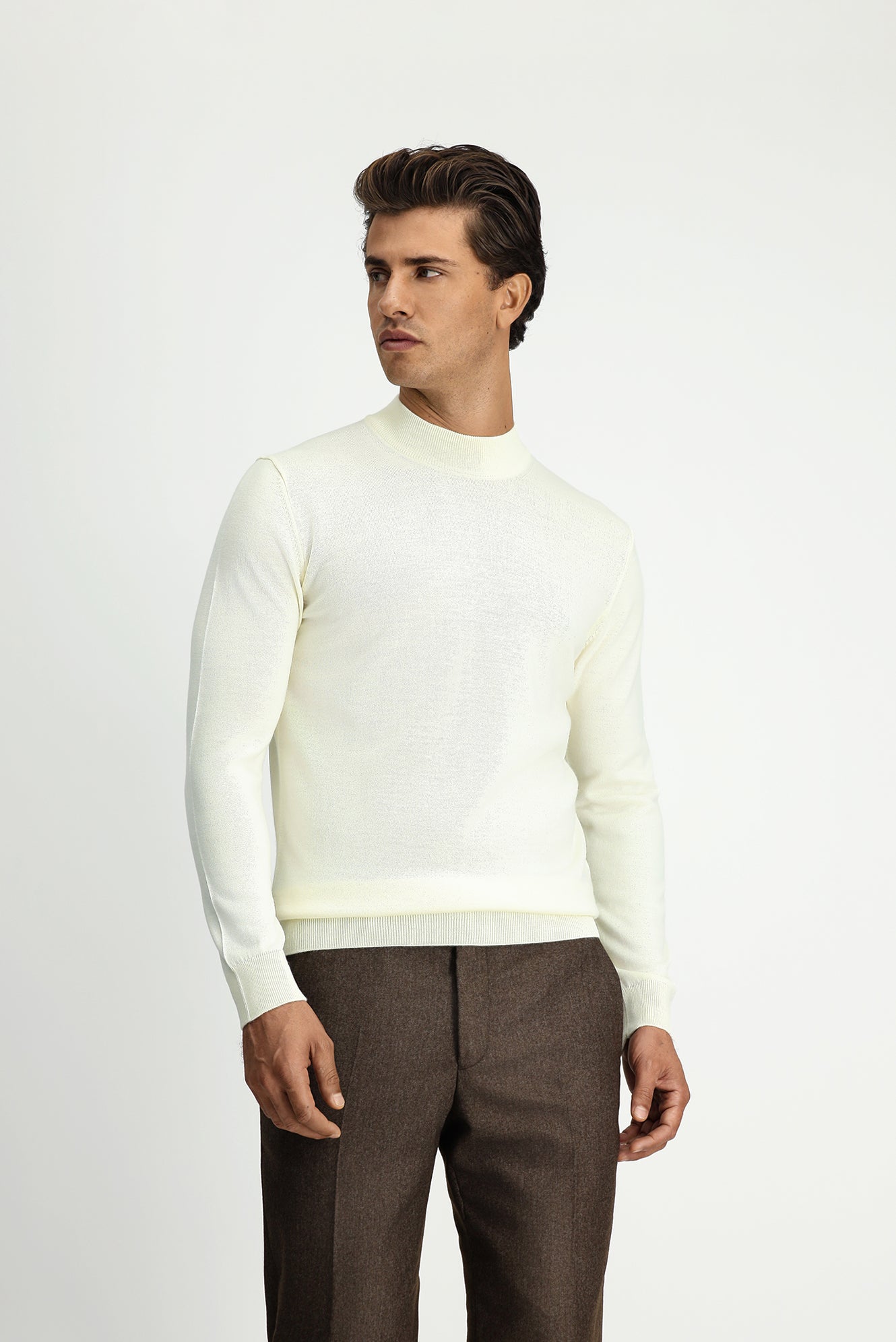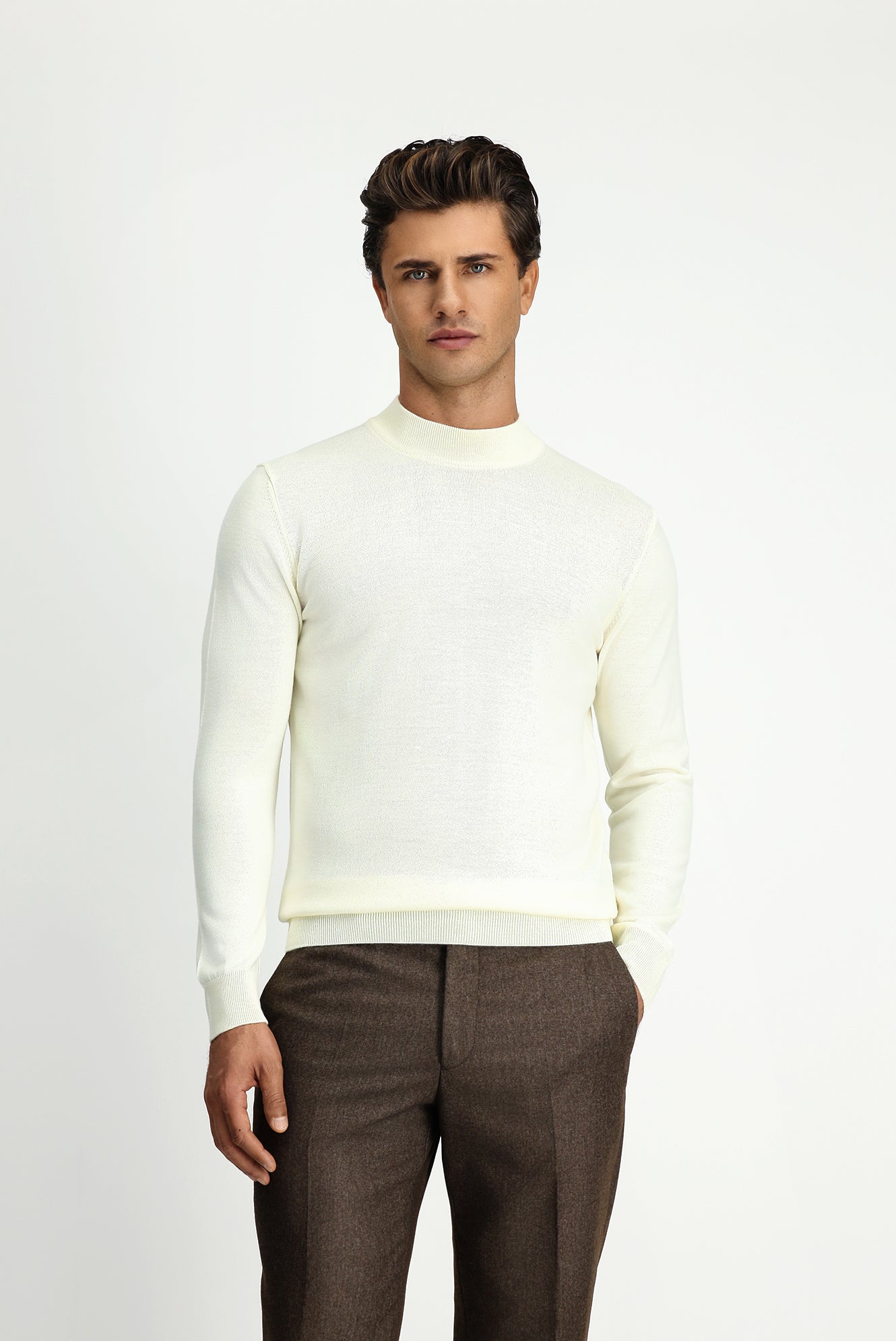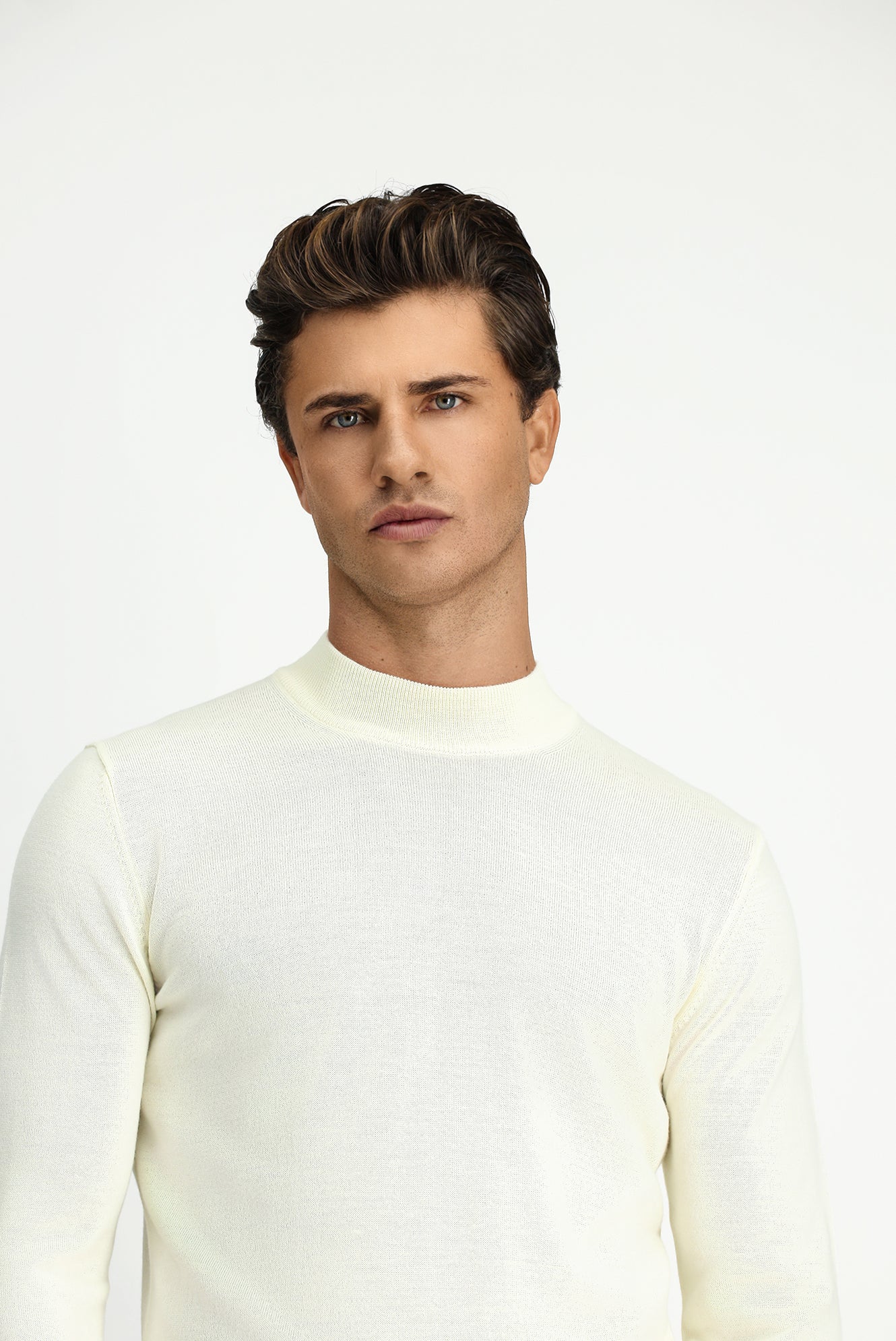 Ekru Yarım Balıkçı Yaka Regular Fit Yünlü Triko Kazak