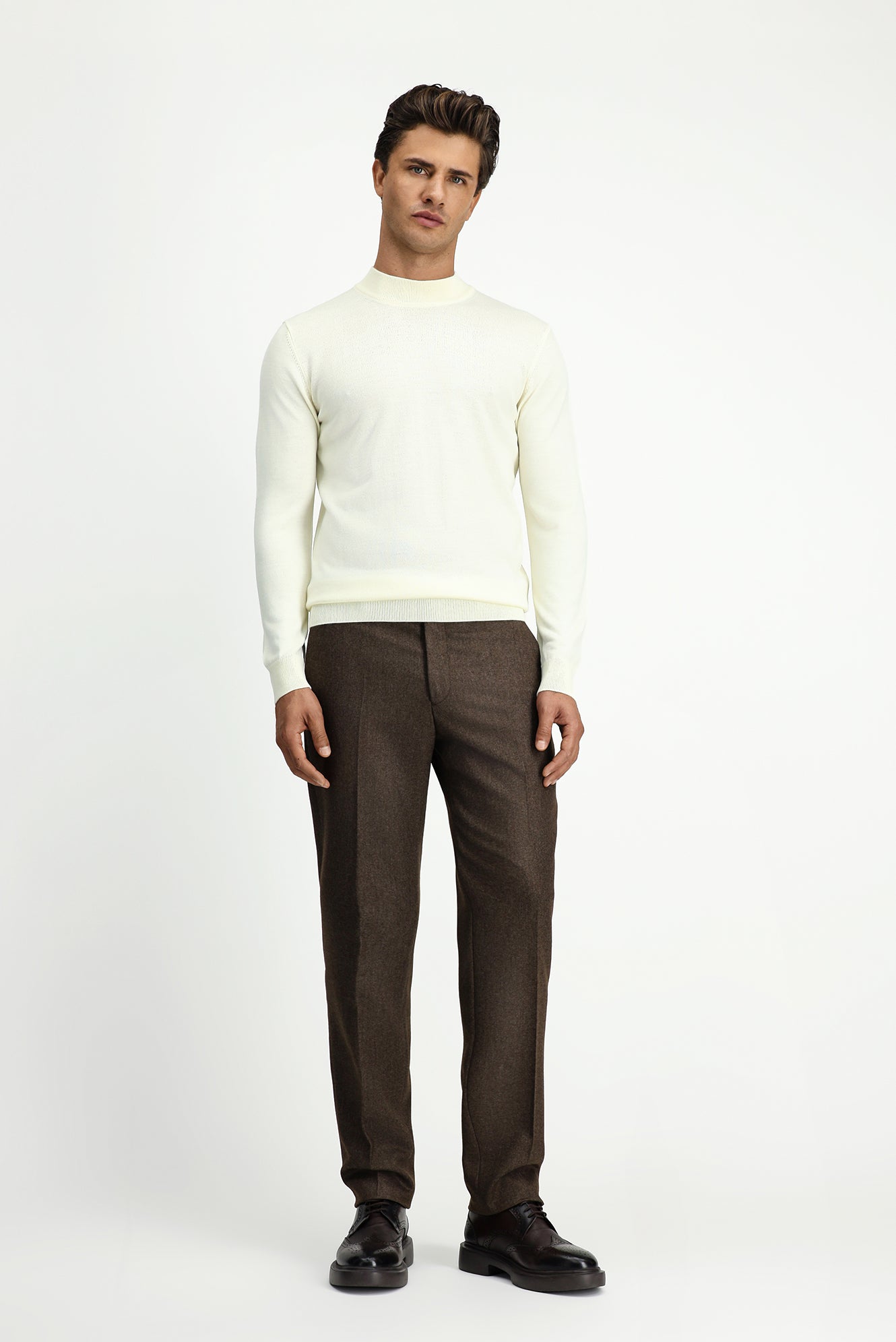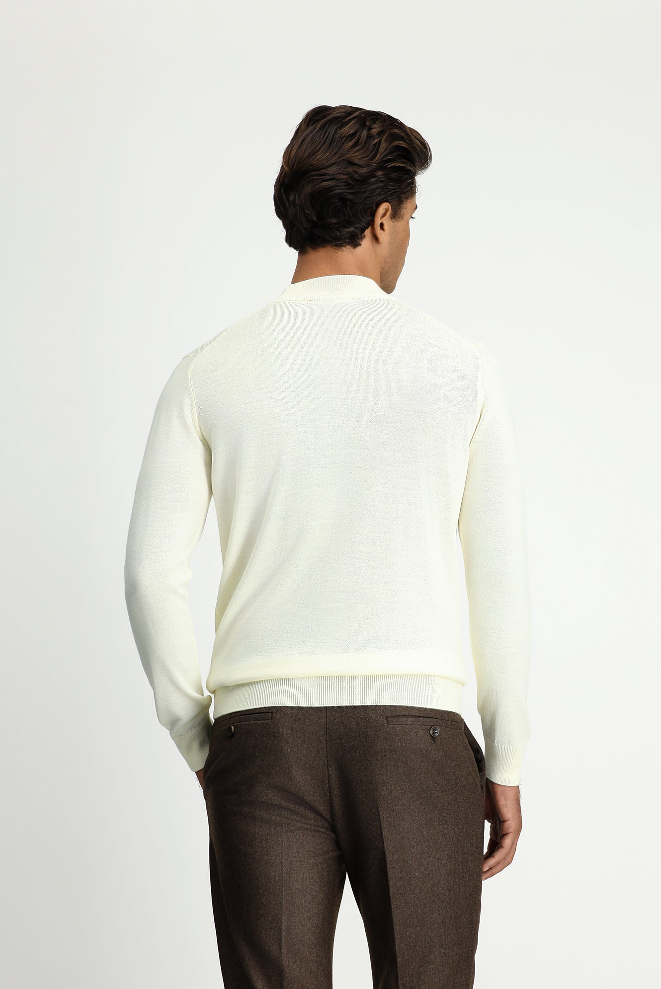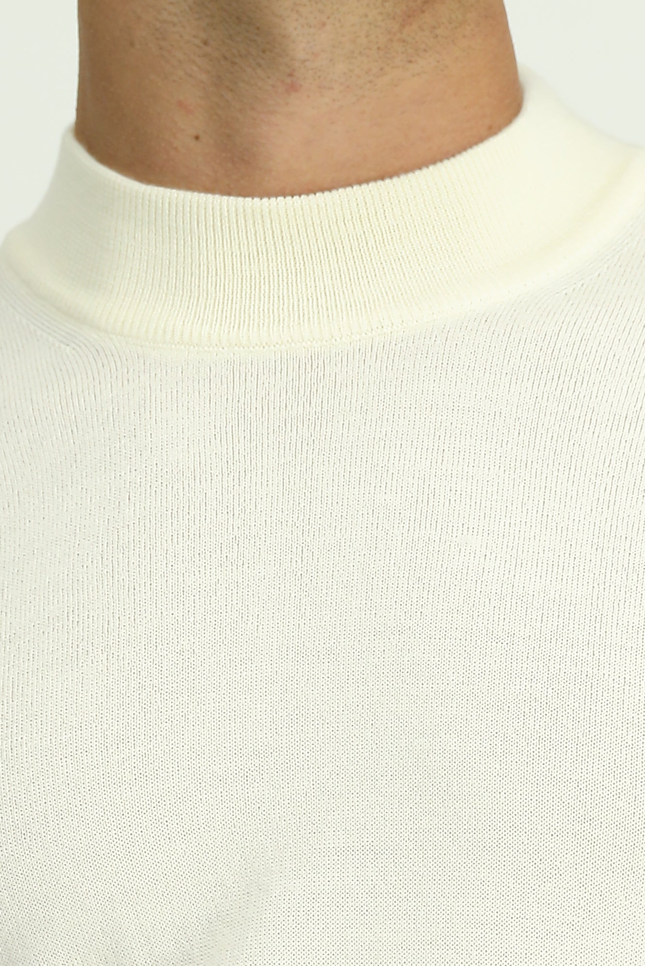 Ekru Yarım Balıkçı Yaka Regular Fit Yünlü Triko Kazak