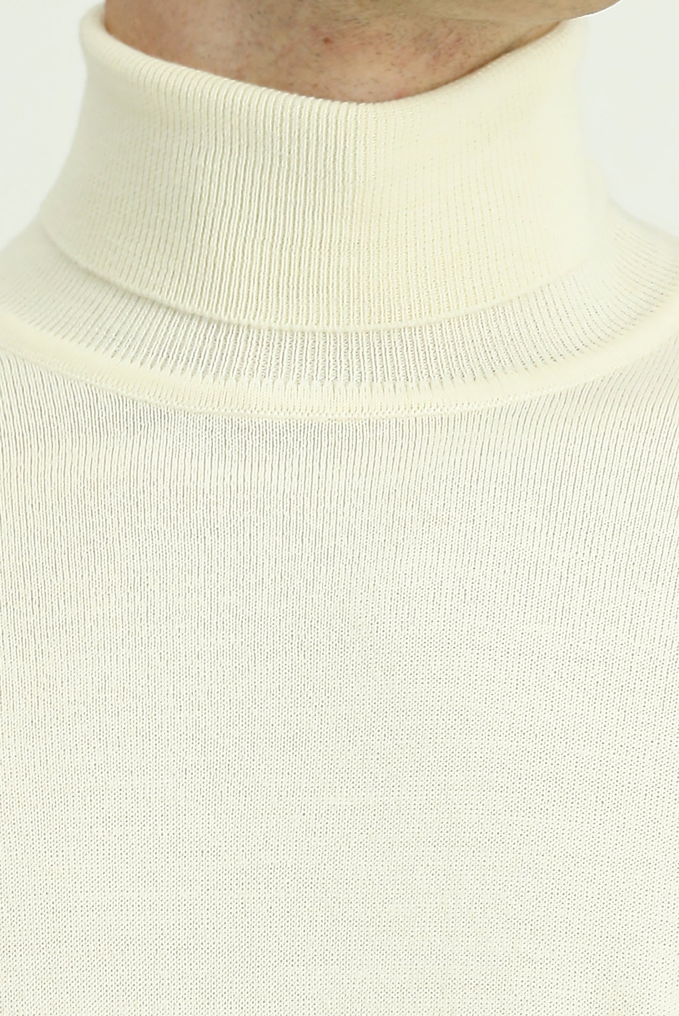 Ekru Balıkçı Yaka Regular Fit Yünlü Triko Kazak