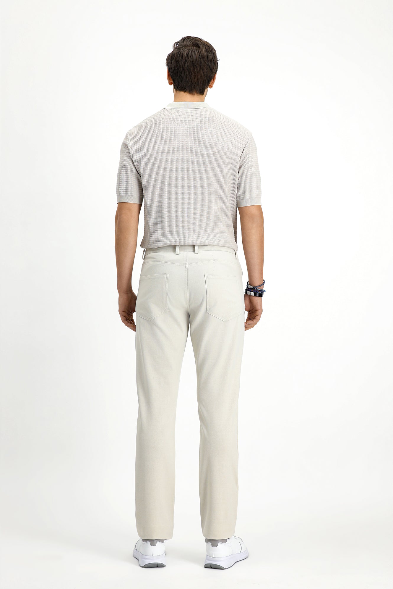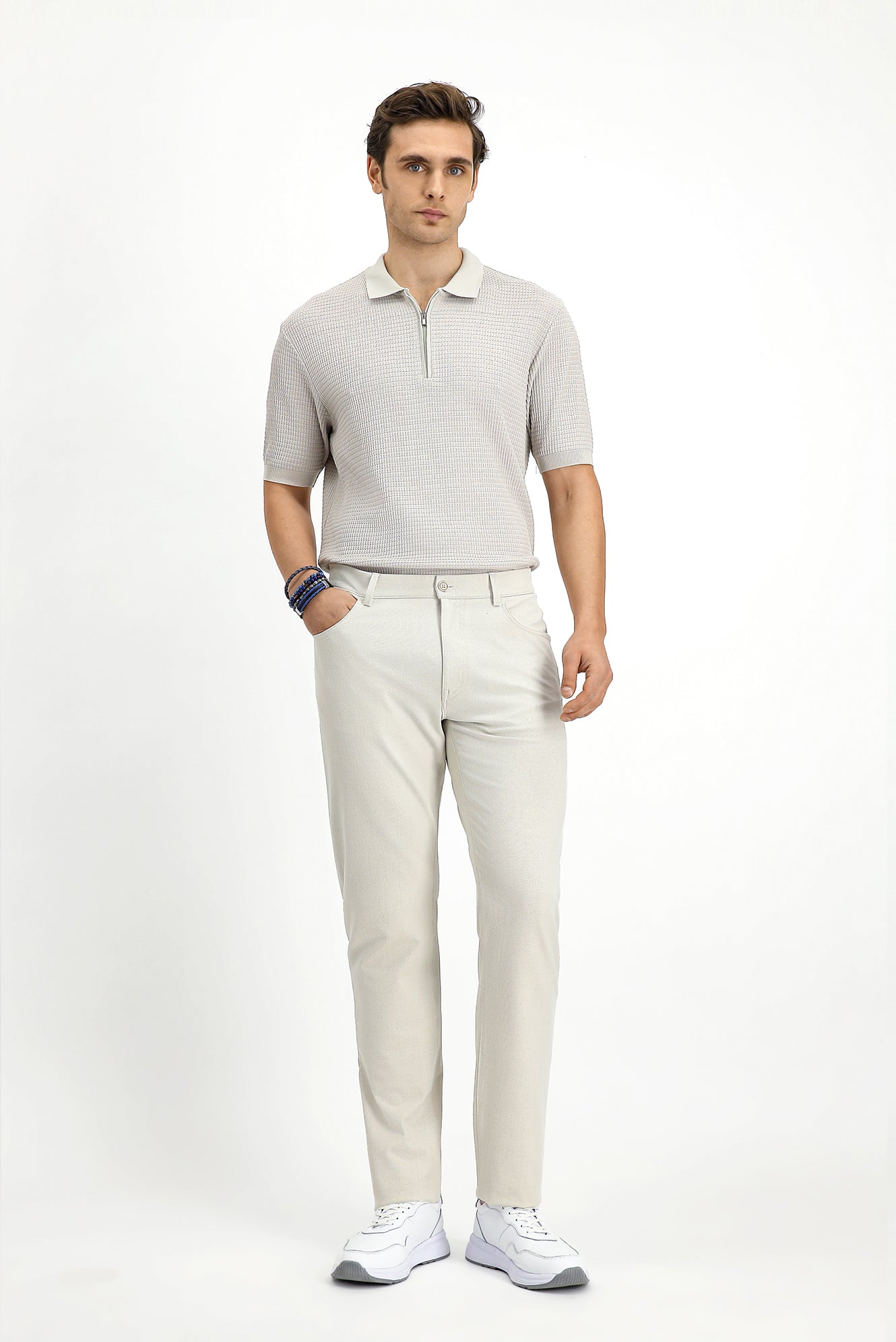 Ekru Slim Fit Dar Kesim Desenli Likralı Kanvas / Chino Pantolon