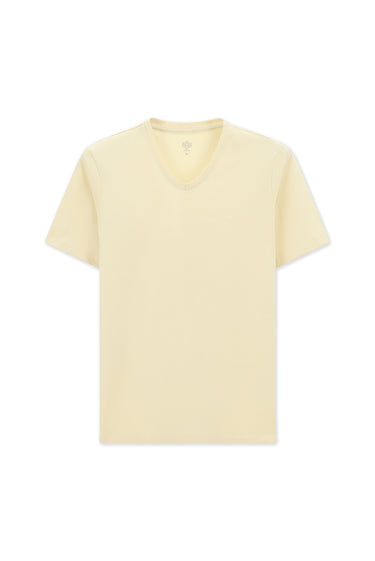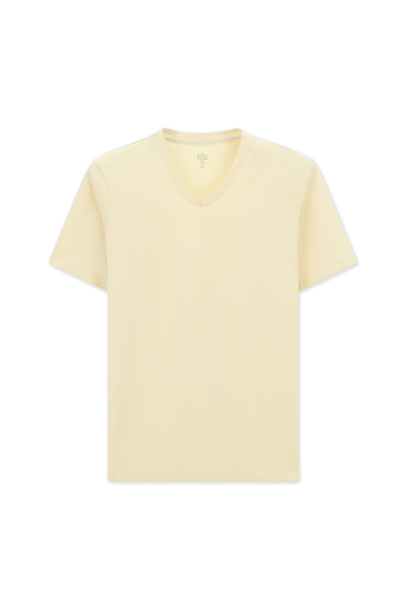 Ekru V Yaka Slim Fit Dar Kesim Süprem Pamuklu Basic Tişört