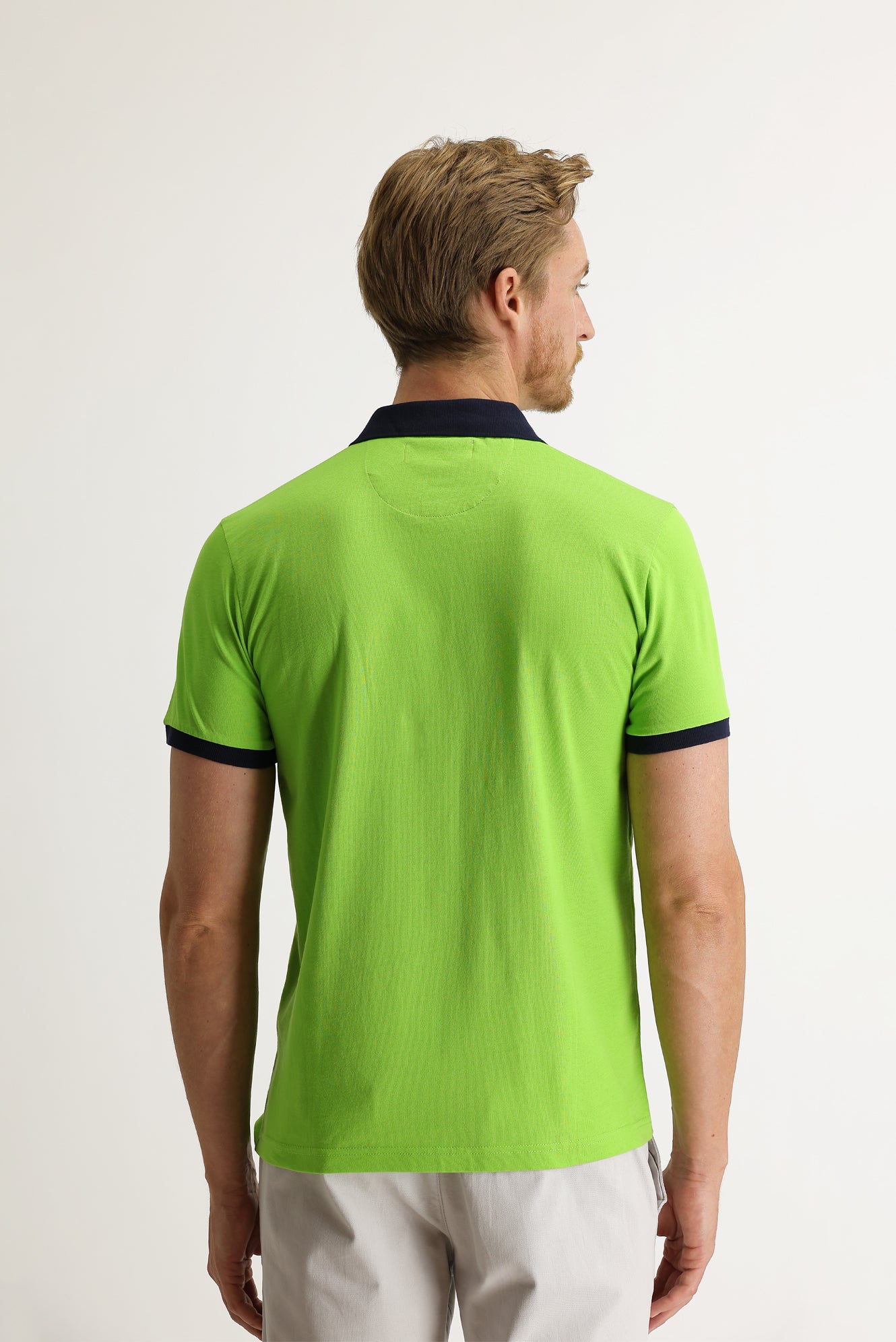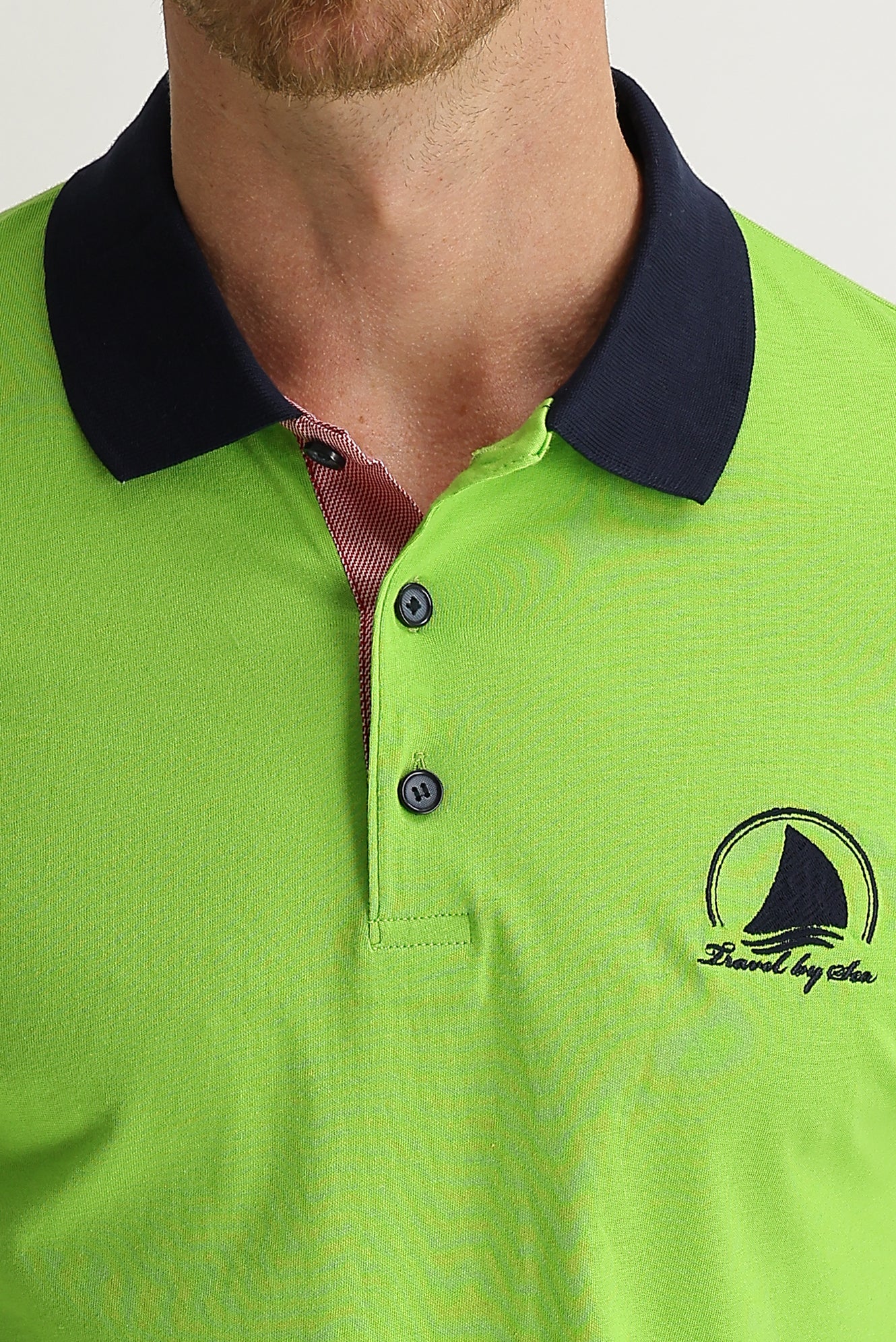 Fıstık Yeşili Polo Yaka Slim Fit Dar Kesim Desenli Tişört