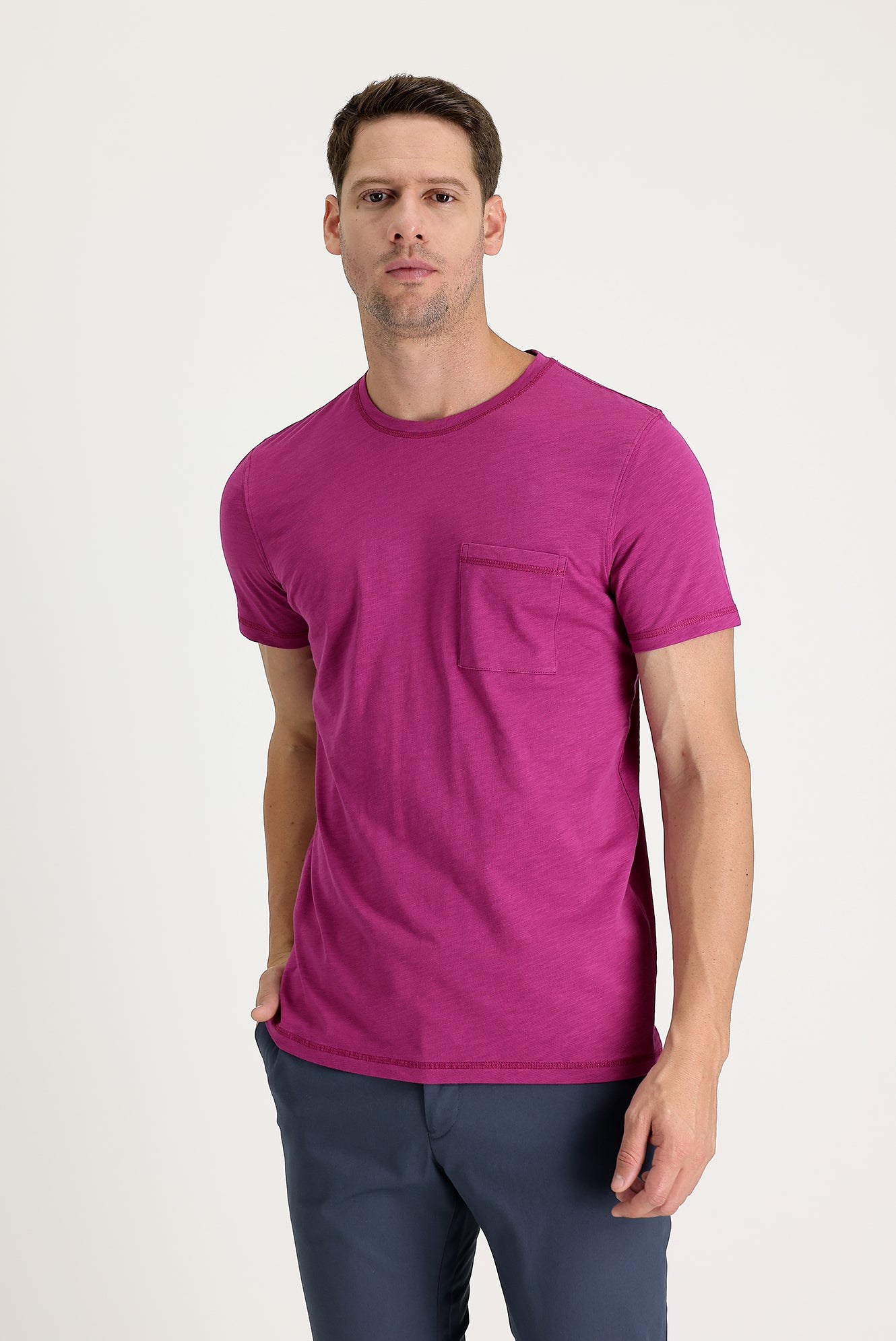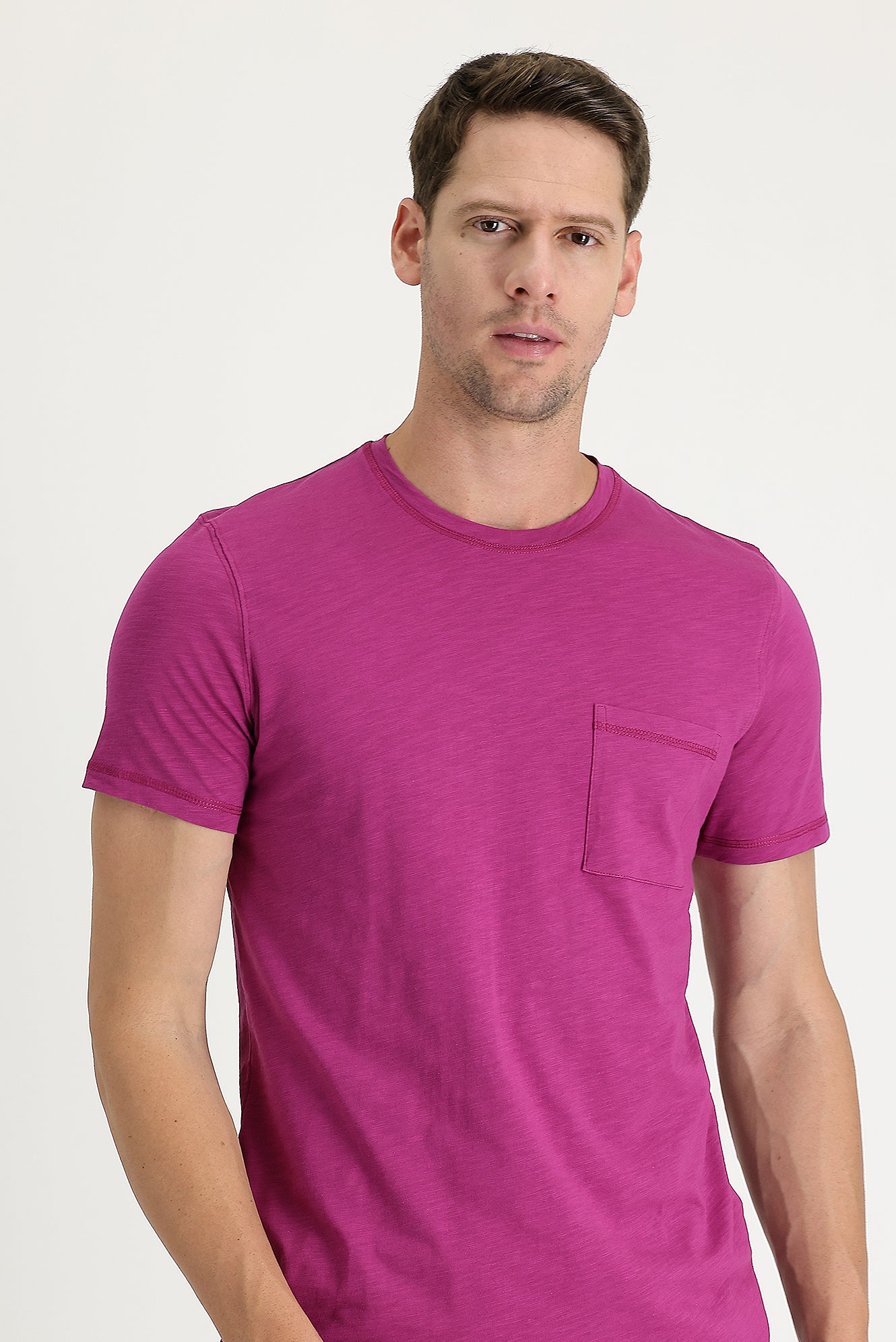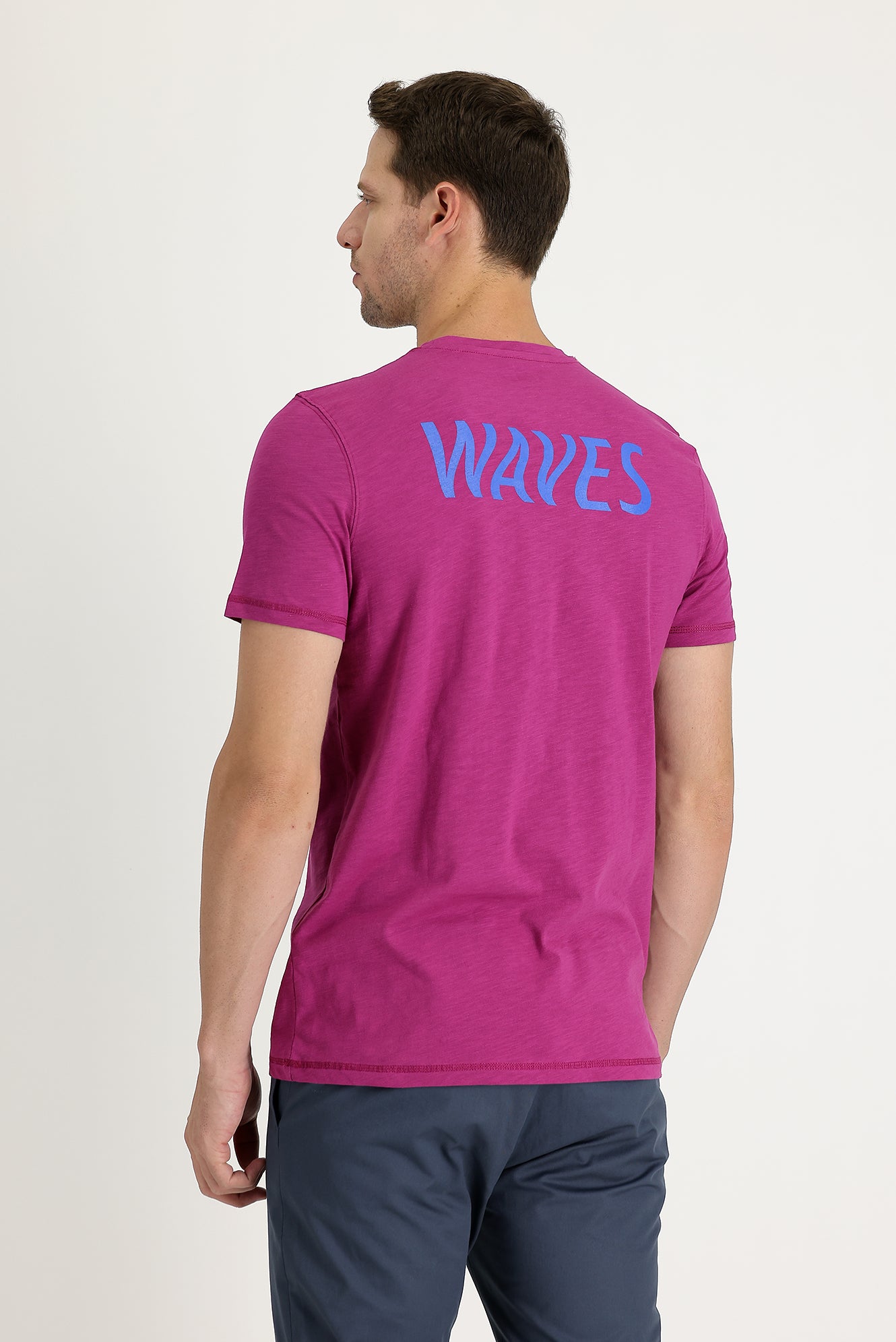 Fuşya Bisiklet Yaka Slim Fit Dar Kesim Baskılı Pamuk Tişört