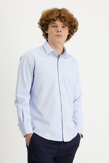 Gök Mavisi Uzun Kol Slim Fit Dar Kesim Klasik Desenli Pamuklu Kolay Ütülenebilir Gömlek