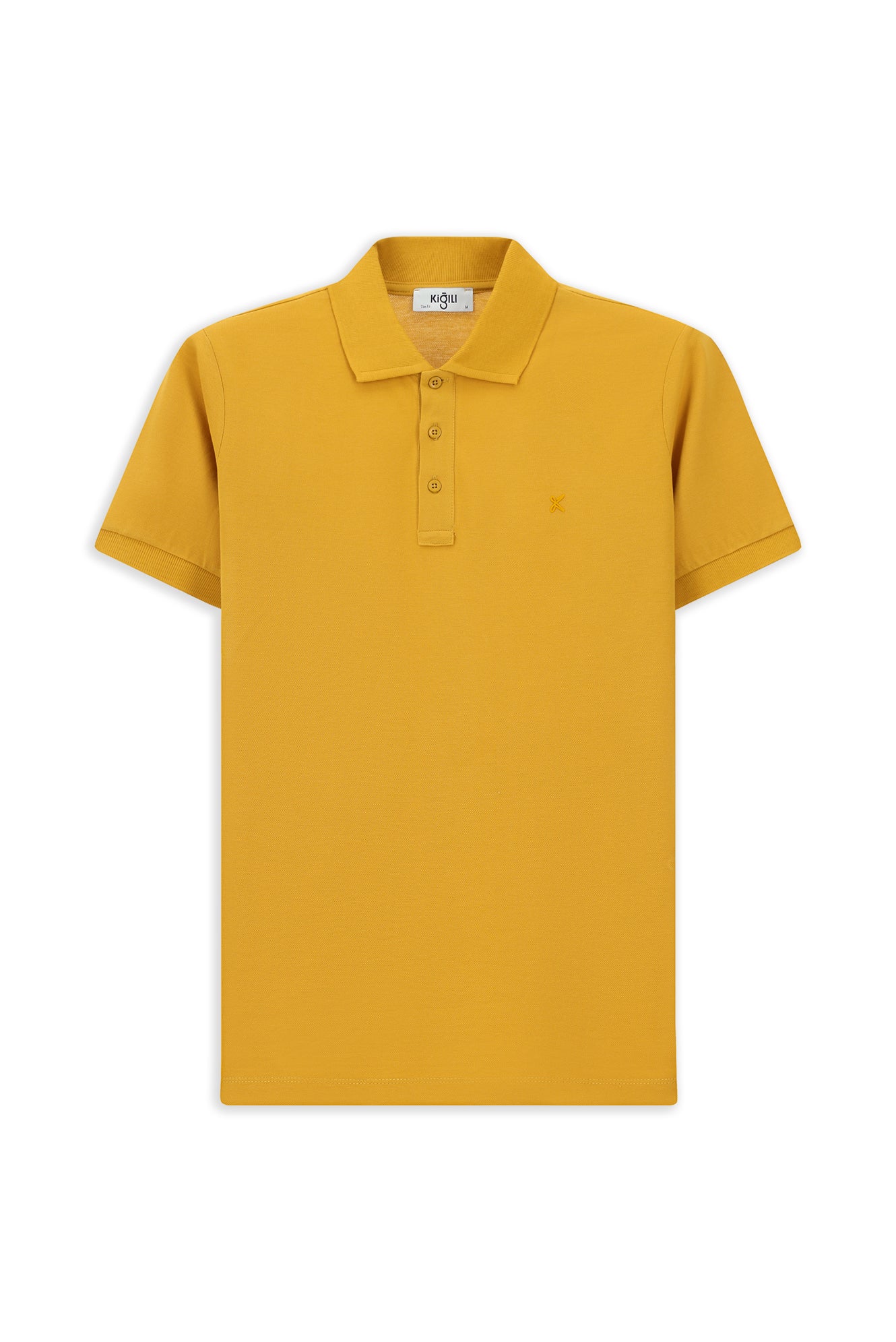 Hardal Slim Fit Dar Kesim Pamuk Kıvrılmaz Polo Yaka Tişört