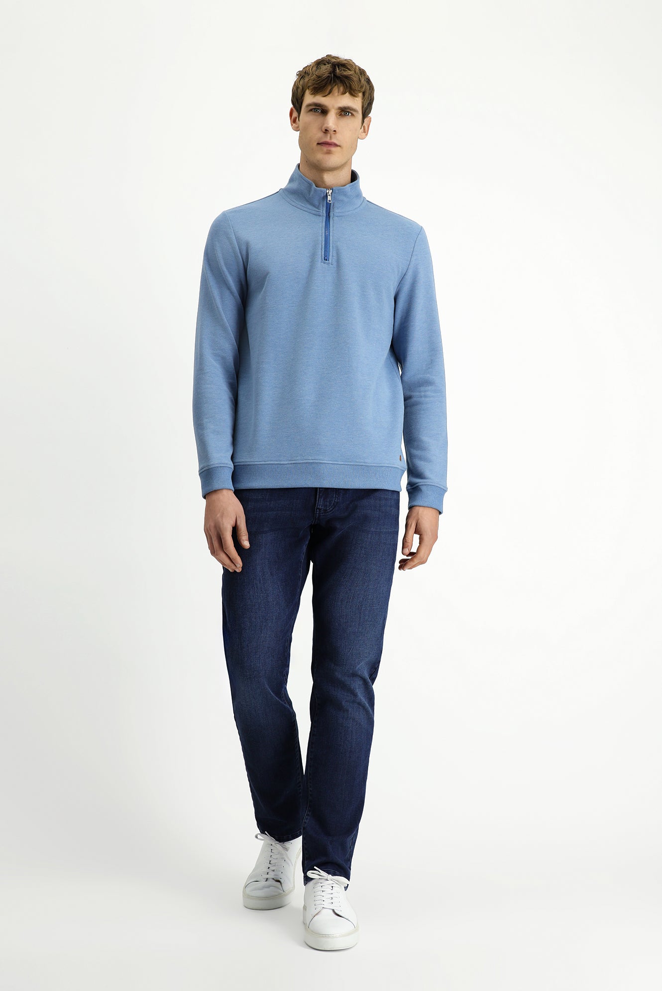Havacı Mavi Yarım Balıkçı Yaka Yaka Regular Fit Fermuarlı Pamuklu Sweatshirt