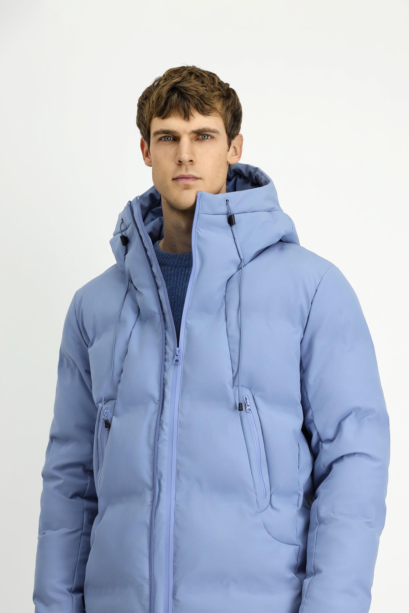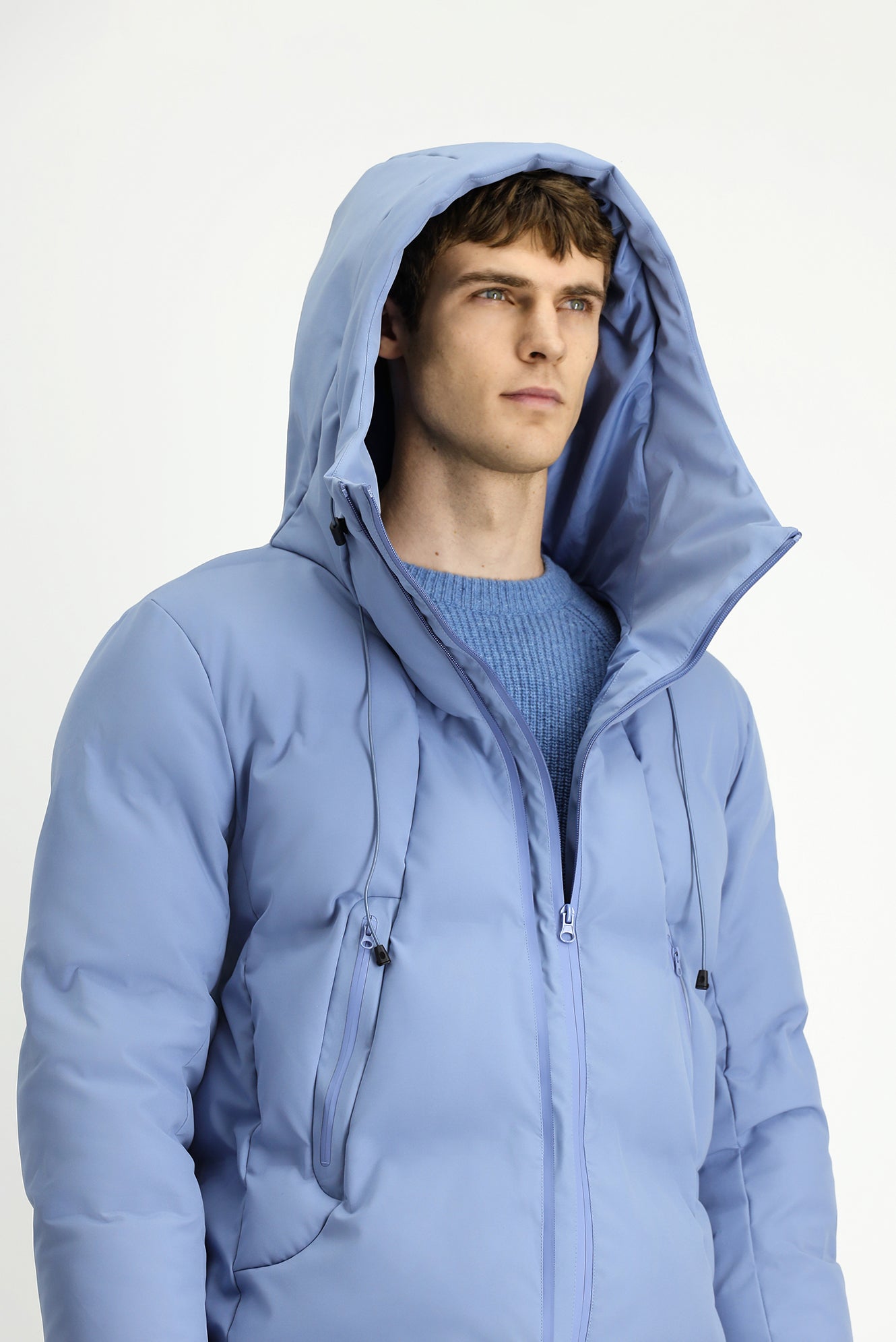 Havacı Mavi Kapüşonlu Şişme Spor Mont