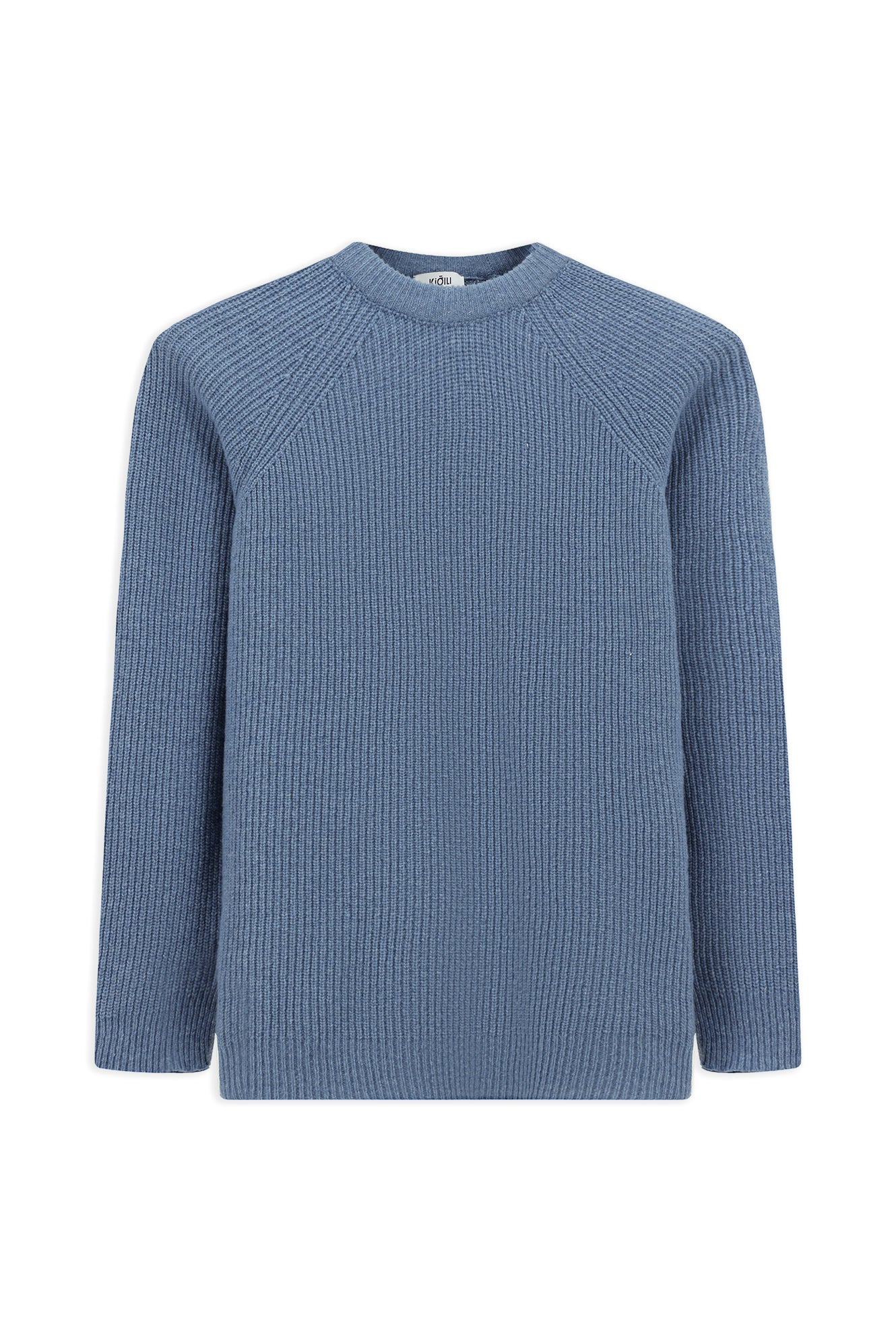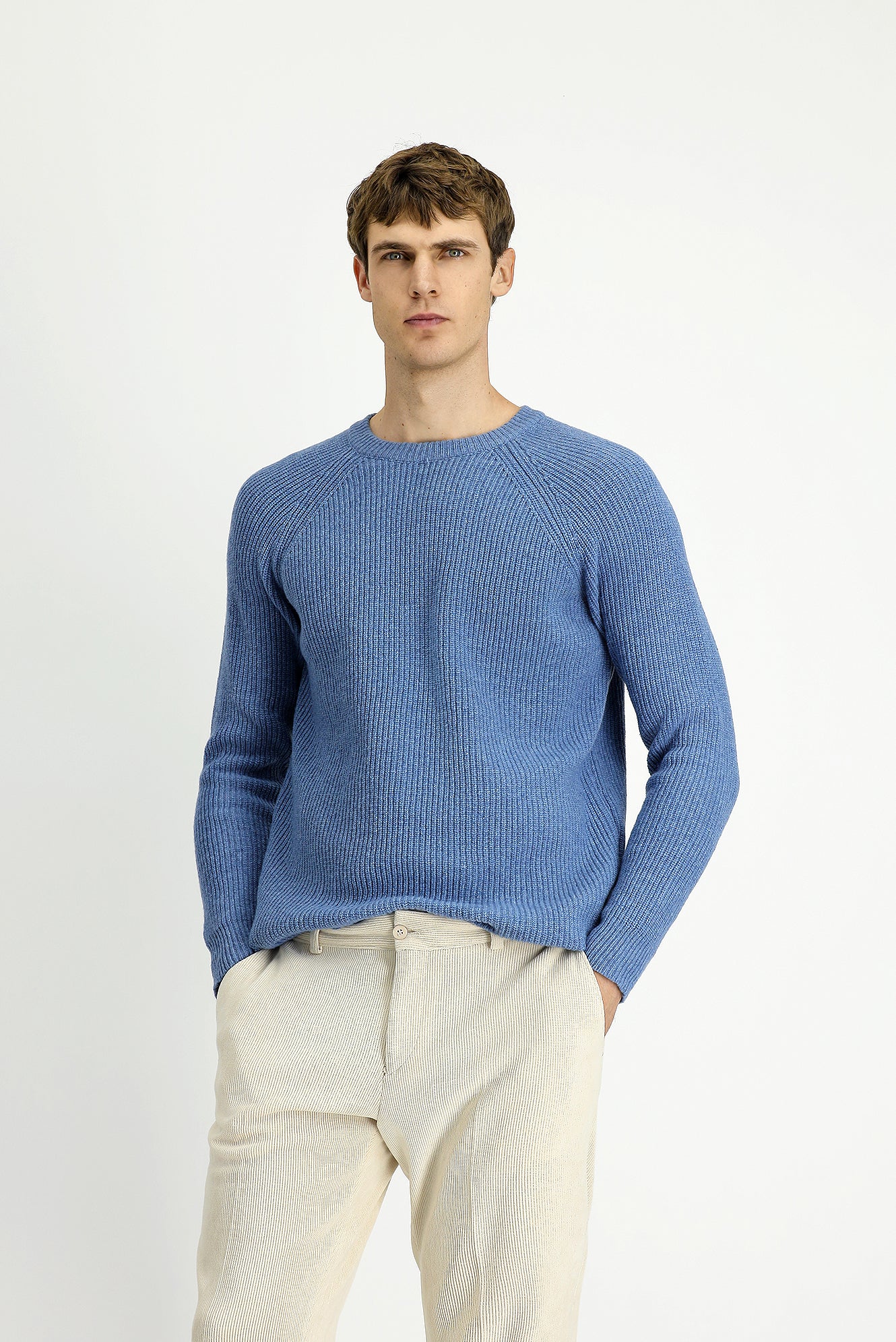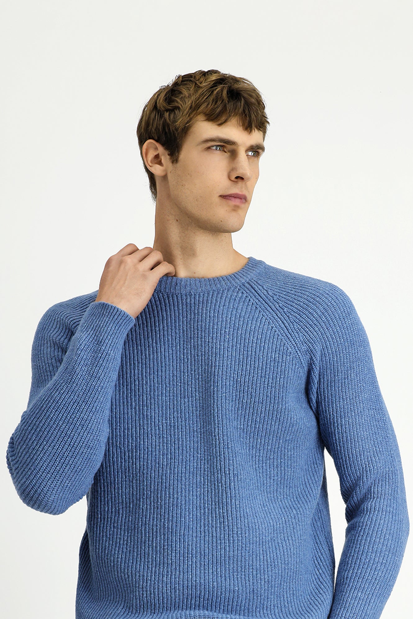 Havacı Mavi Melanj Bisiklet Yaka Regular Fit Yünlü Triko Kazak