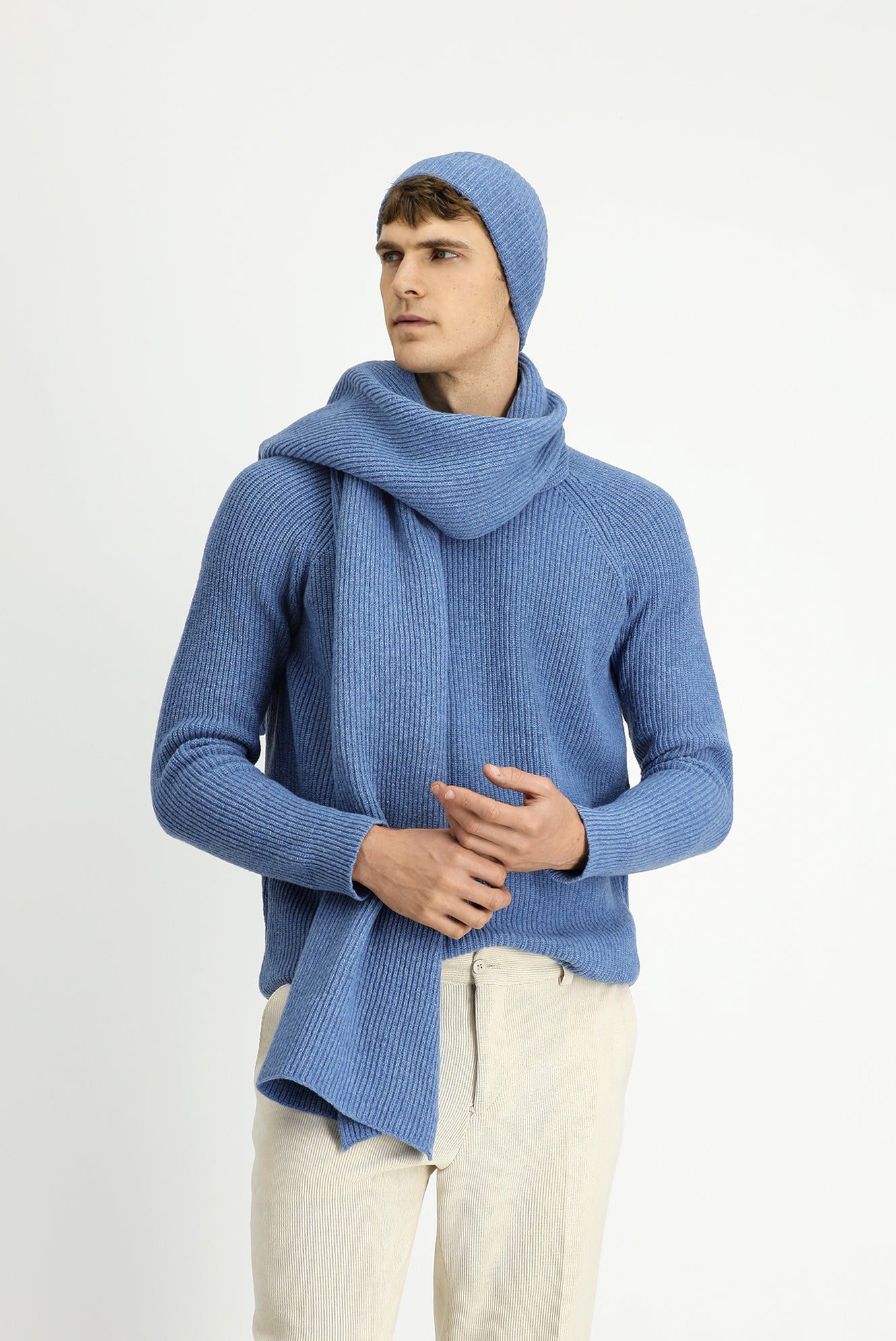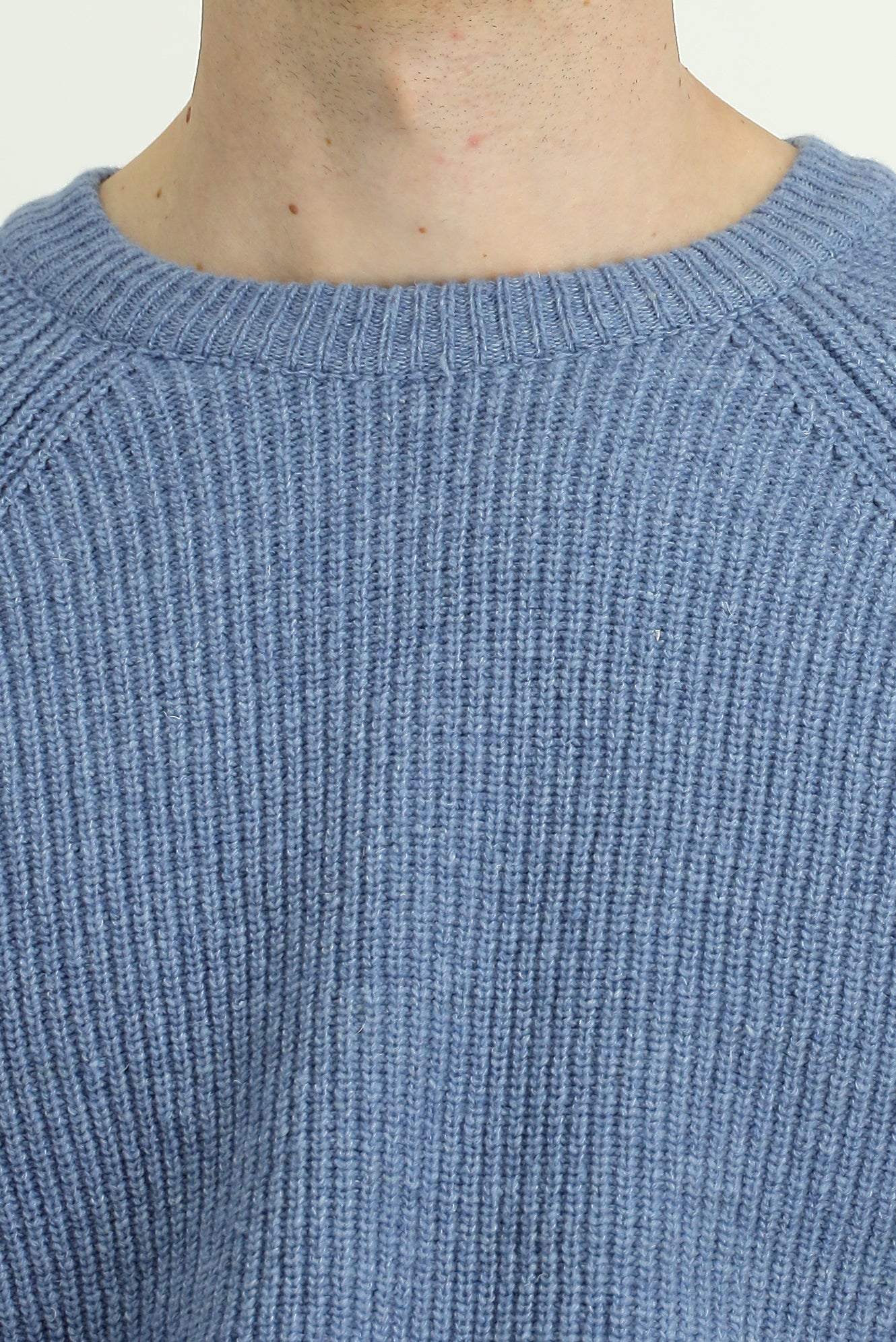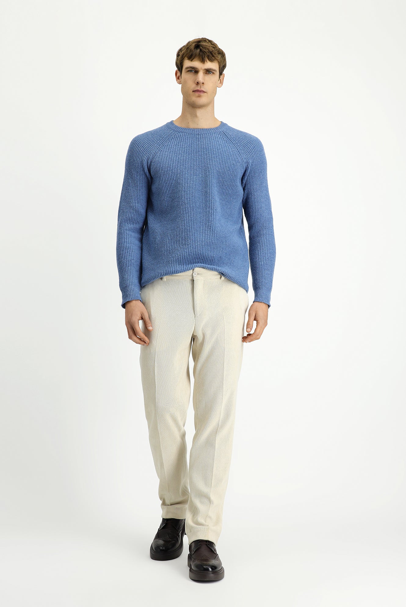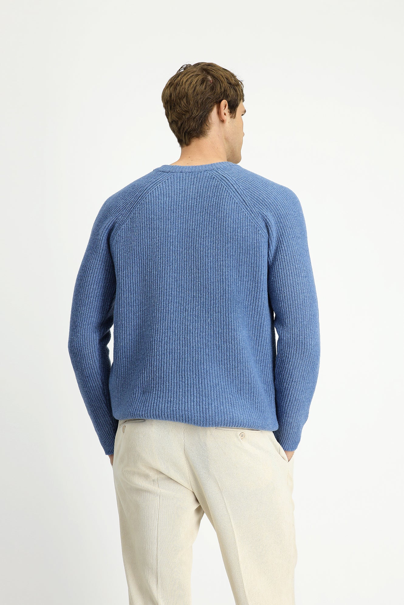Havacı Mavi Melanj Bisiklet Yaka Regular Fit Yünlü Triko Kazak