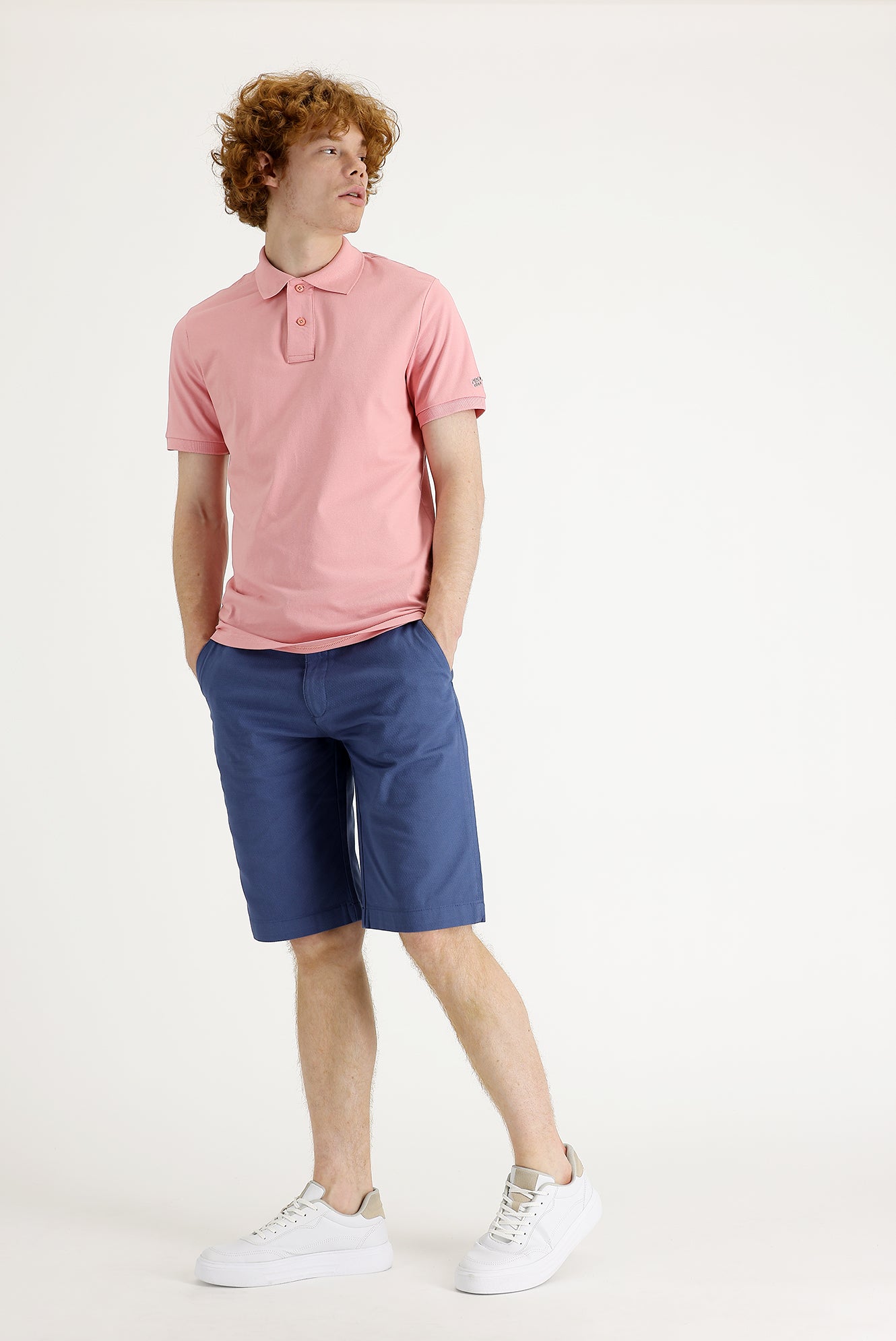 Havacı Mavi Regular Fit Pamuklu Bermuda Şort