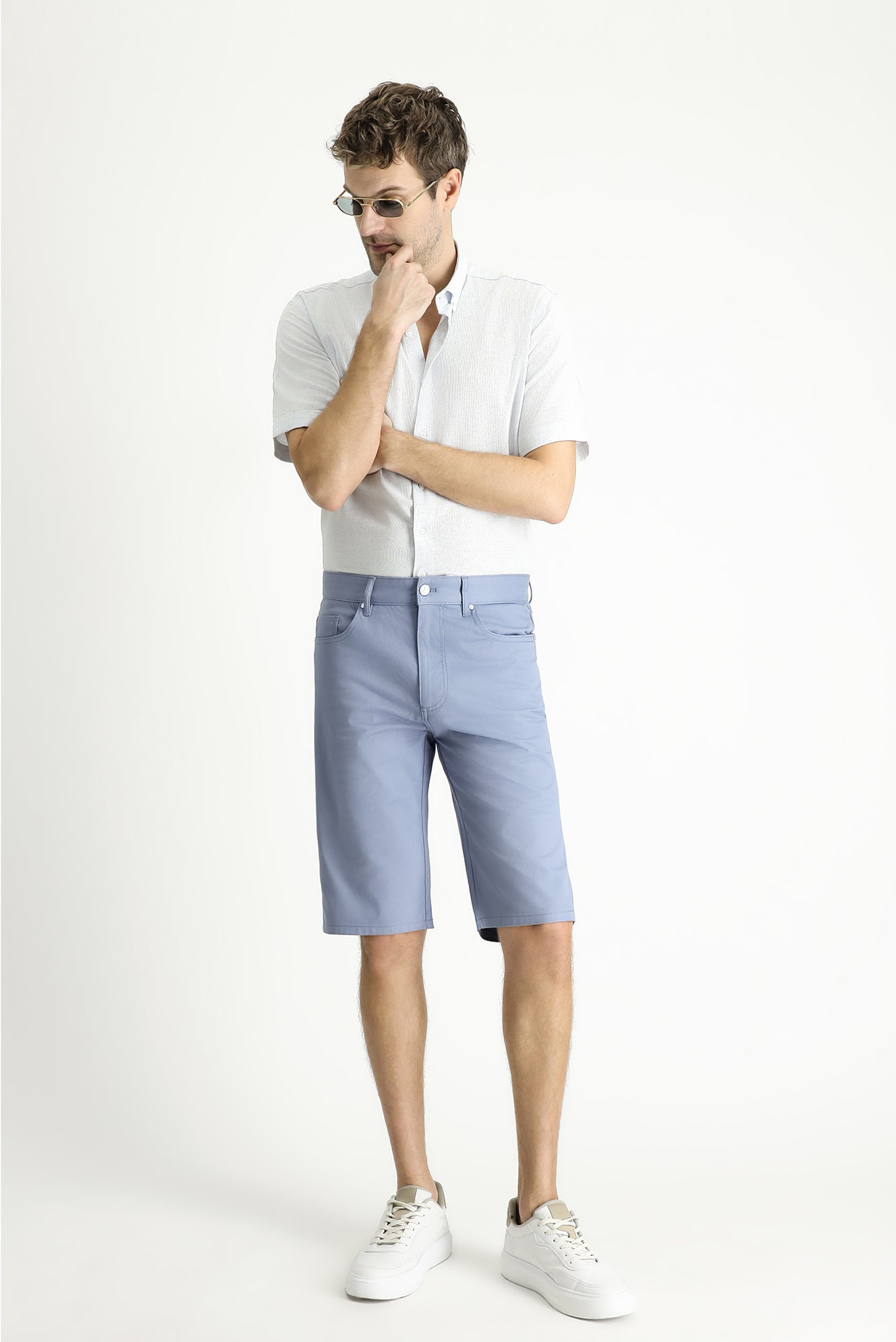 Havacı Mavi 6 Drop Regular Fit Standart Kesim Pamuklu Bermuda Şort