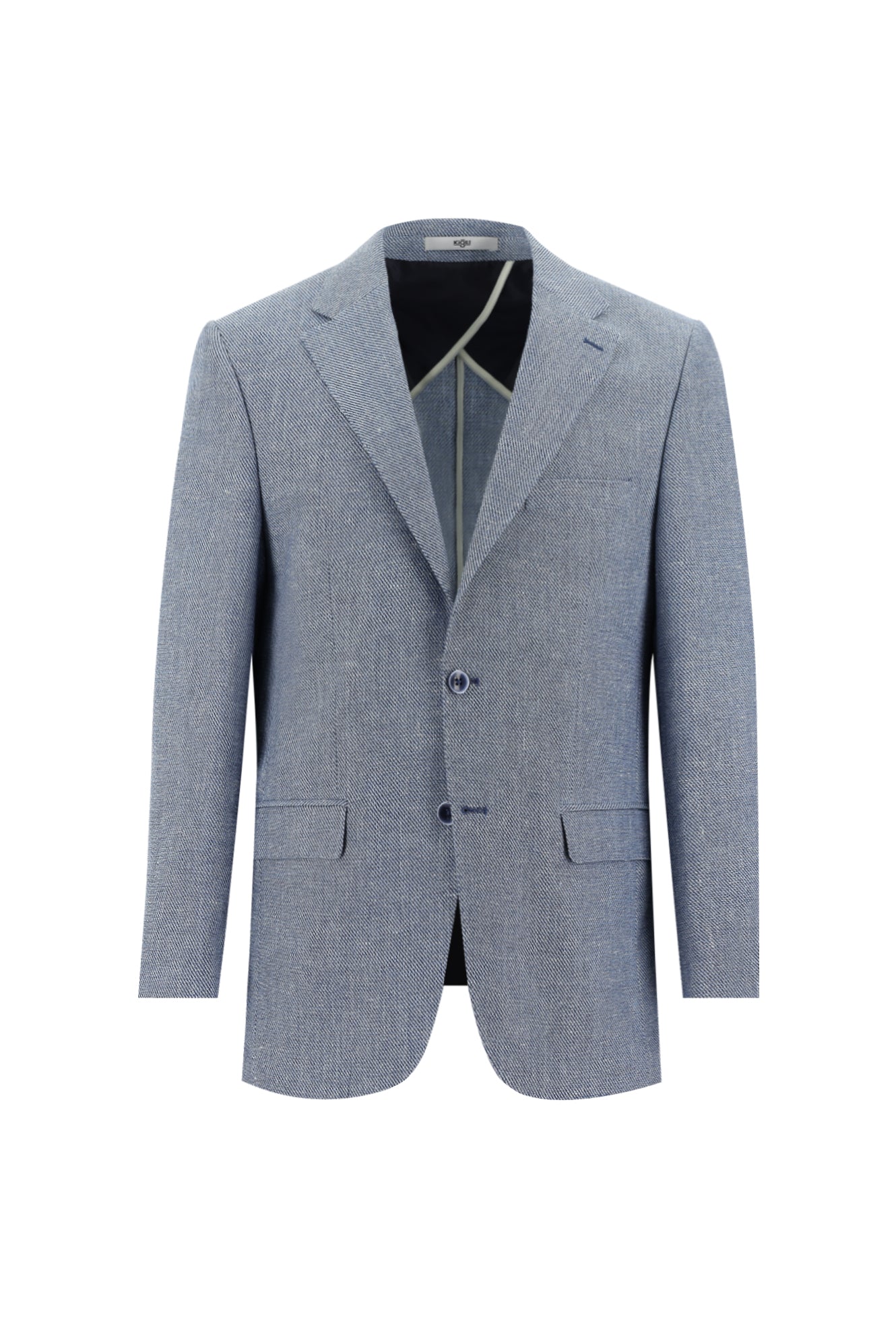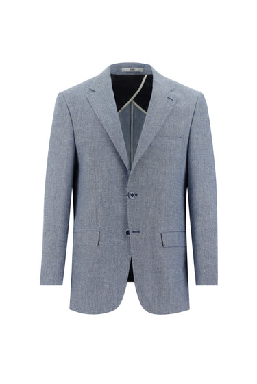 Havacı Mavi 6 Drop Regular Fit Standart Kesim Klasik Desenli Keten Karışımlı Ceket