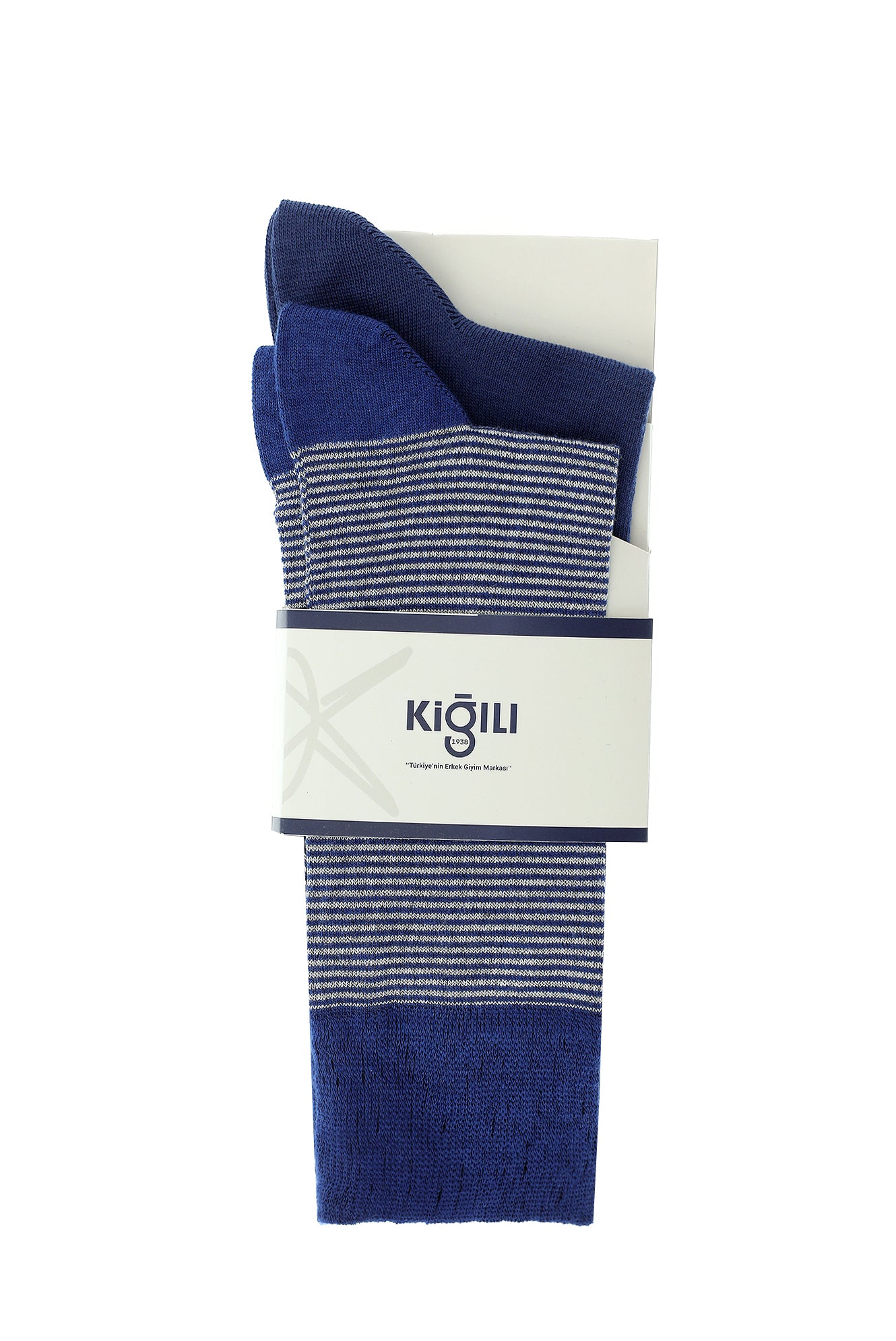 İndigo 2'li Pamuklu Çizgili Çorap Seti