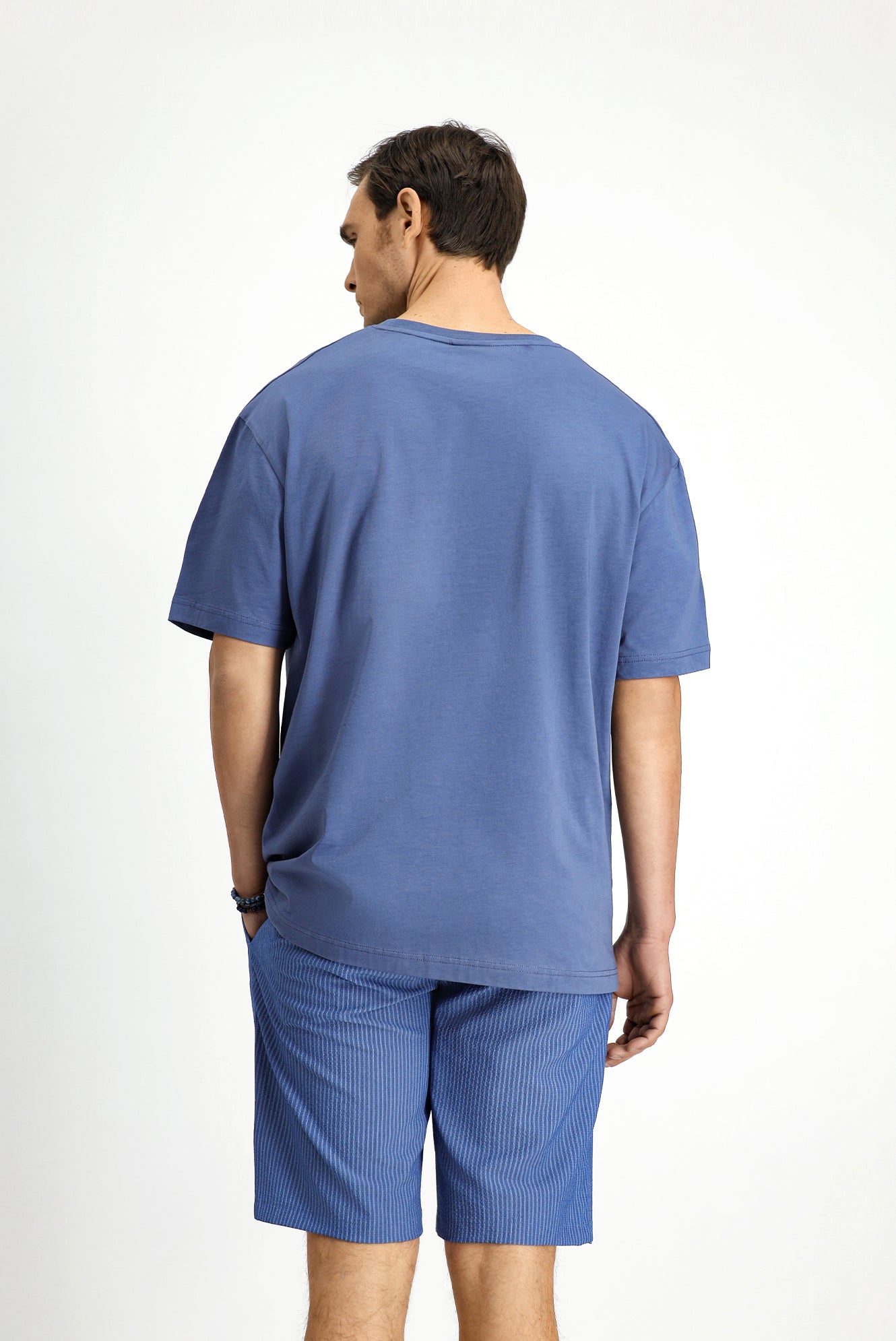 İndigo Bisiklet Yaka Oversize Pamuk Baskılı Tişört