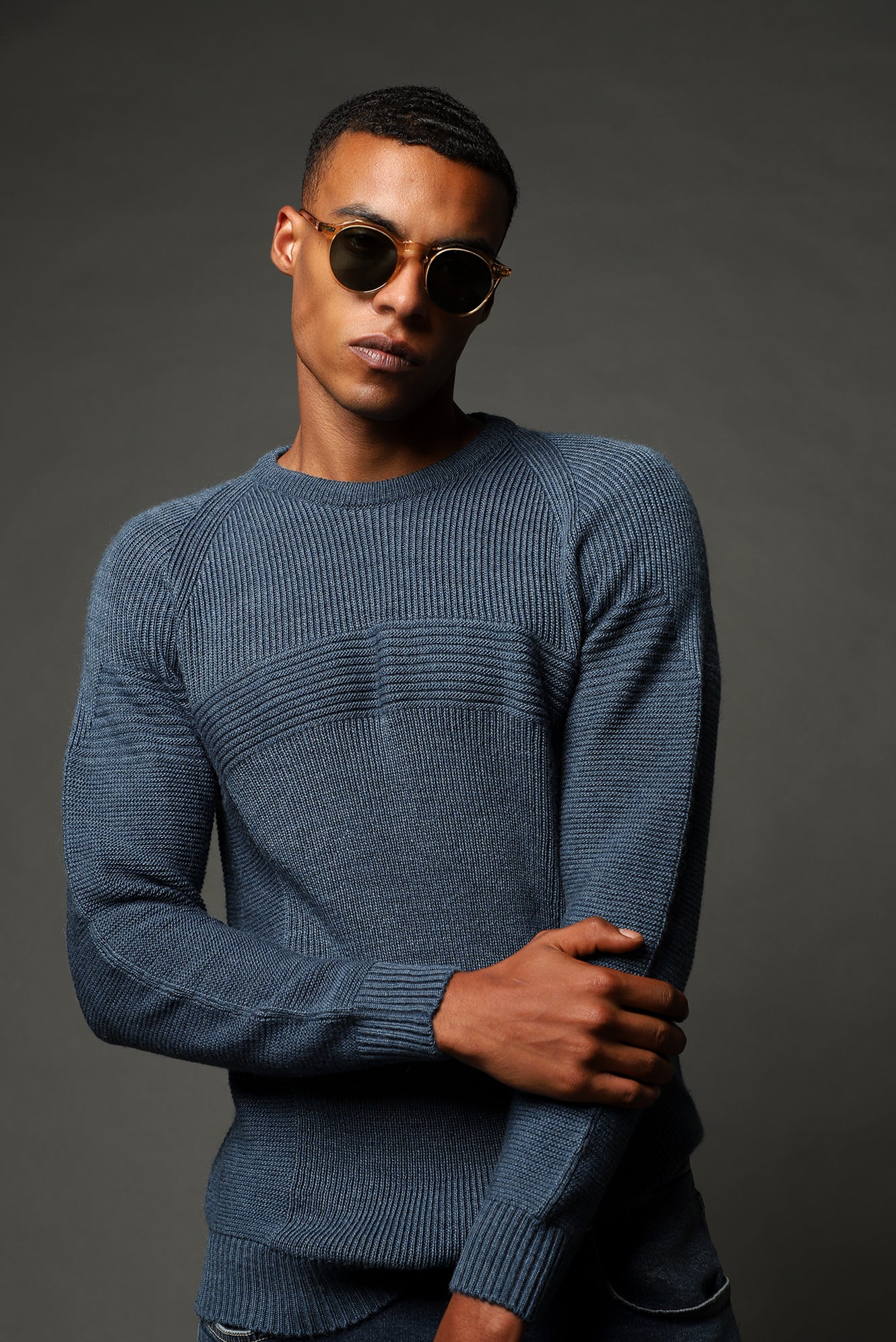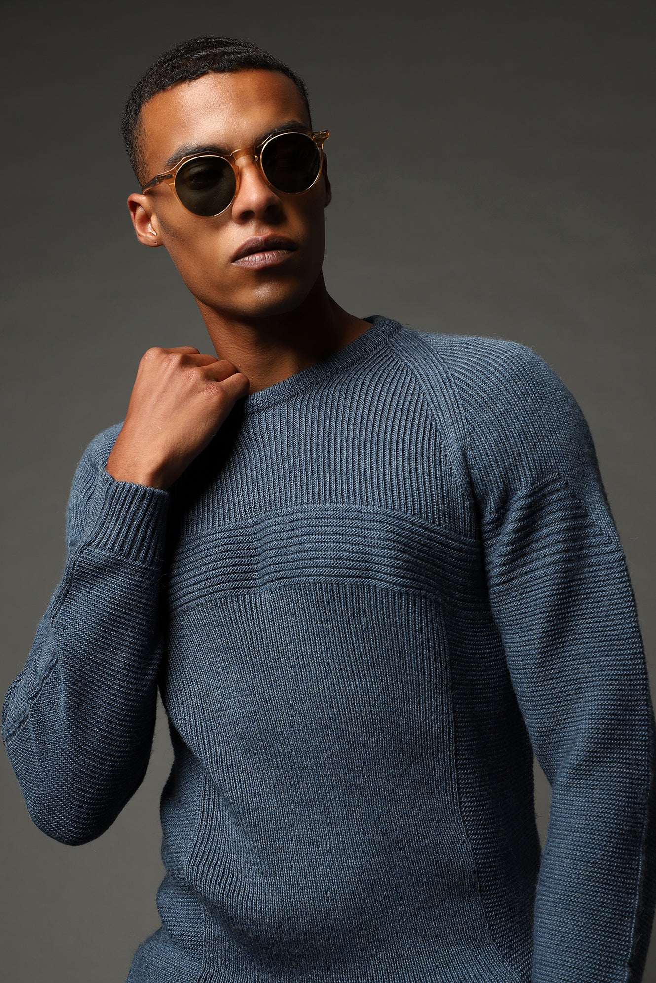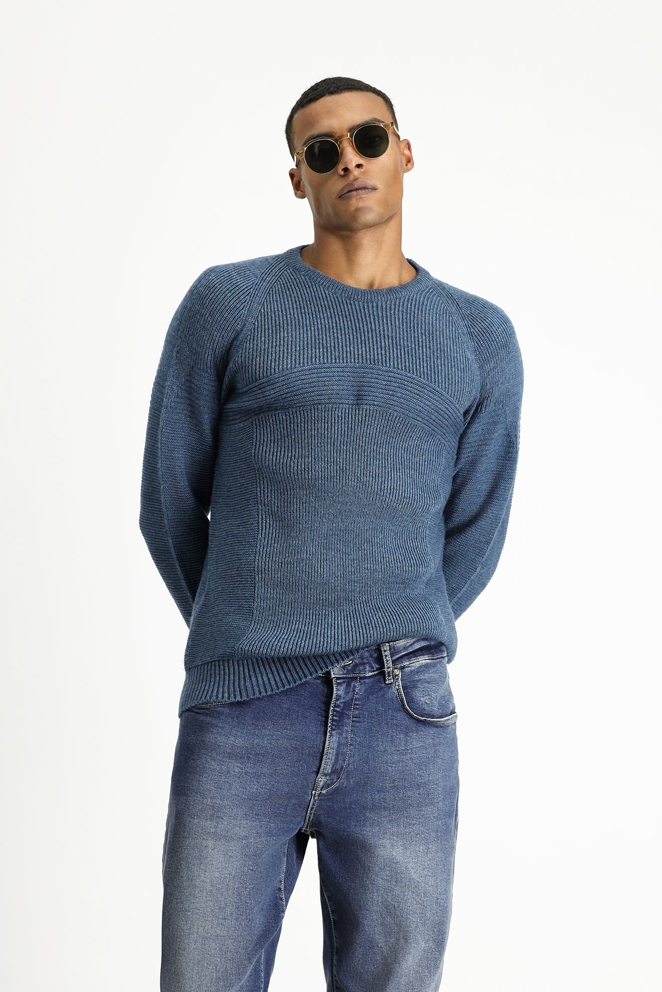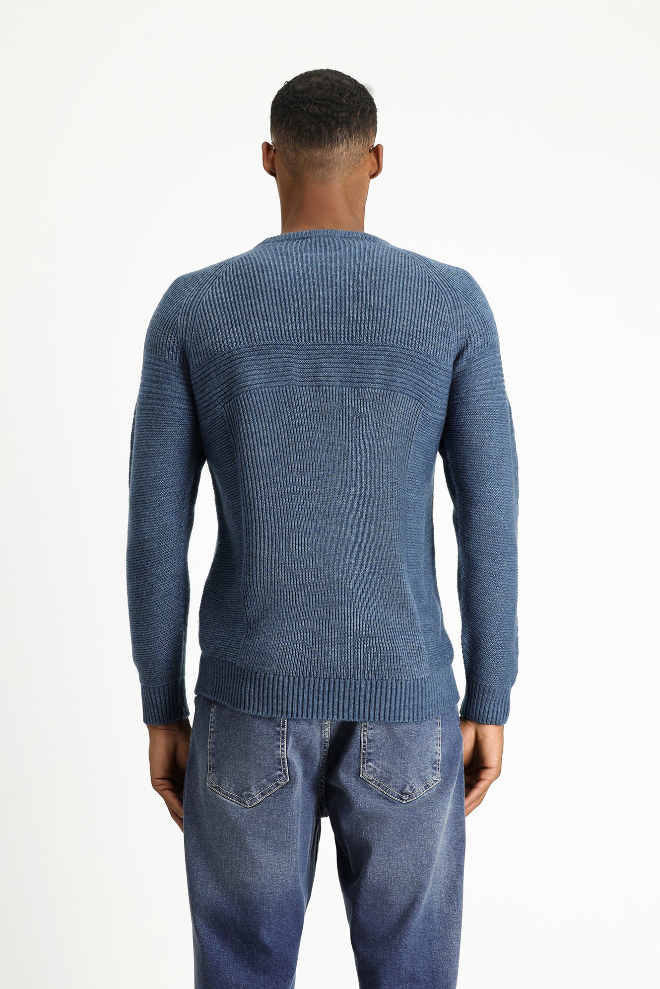 İndigo Bisiklet Yaka Regular Fit Dikişsiz Desenli Triko Kazak