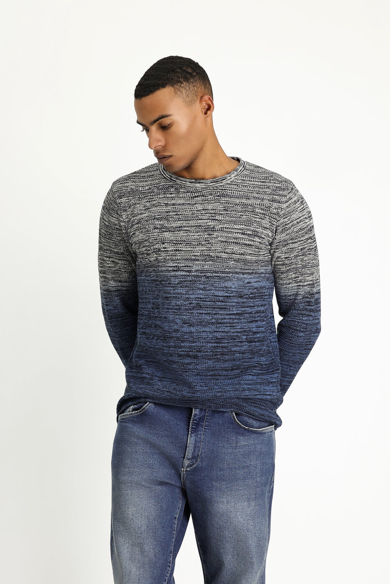 İndigo Bisiklet Yaka Slim Fit Dar Kesim Desenli Pamuklu Triko Kazak