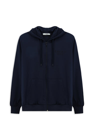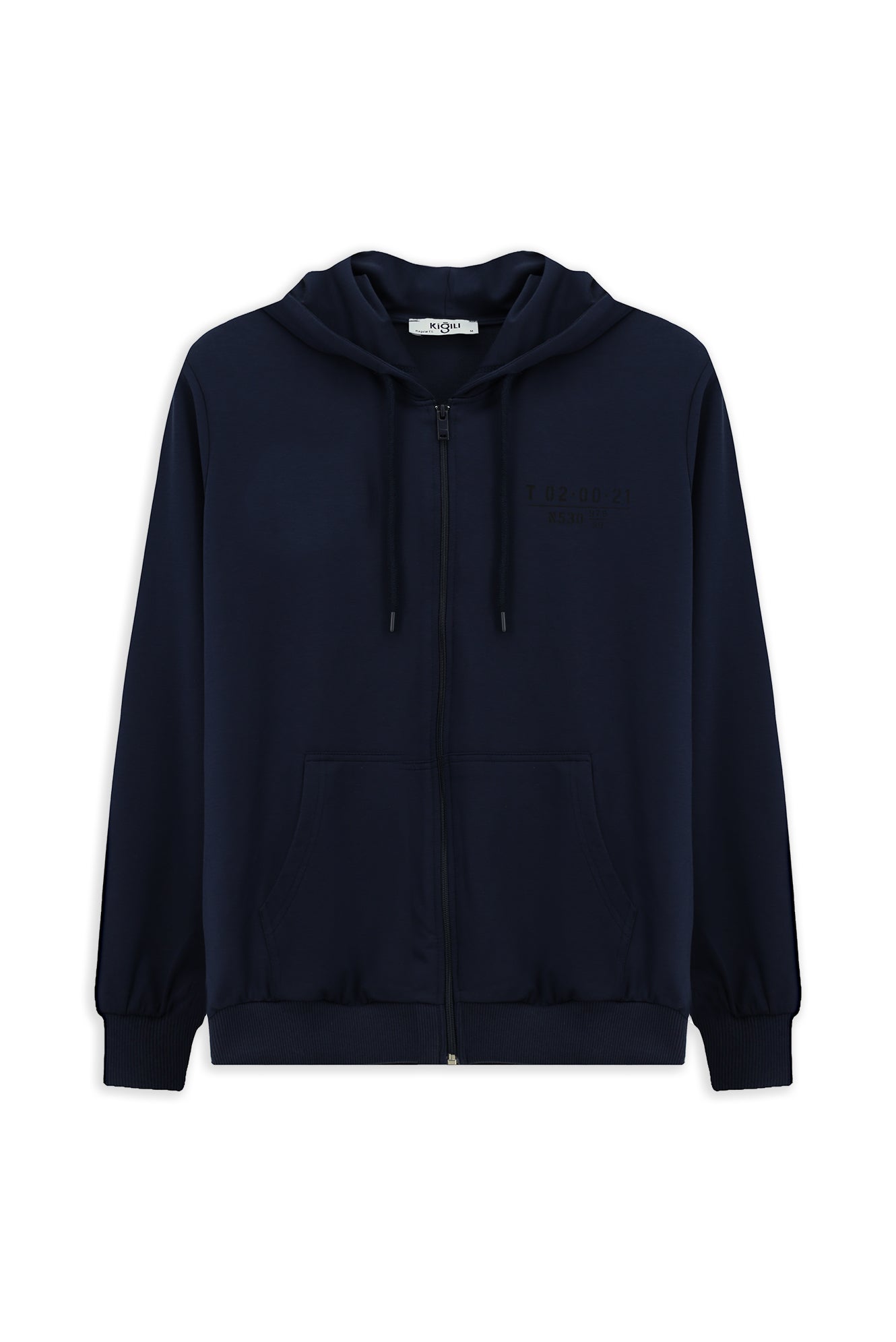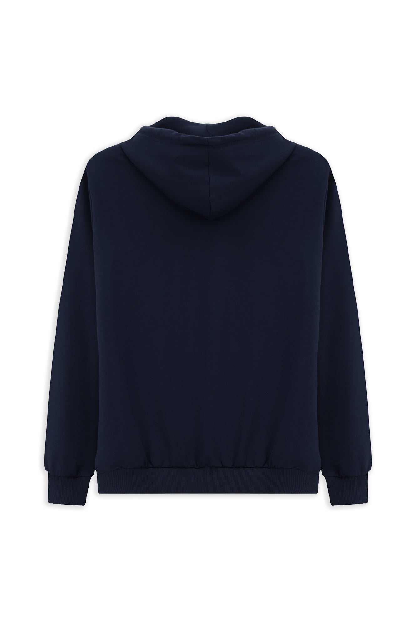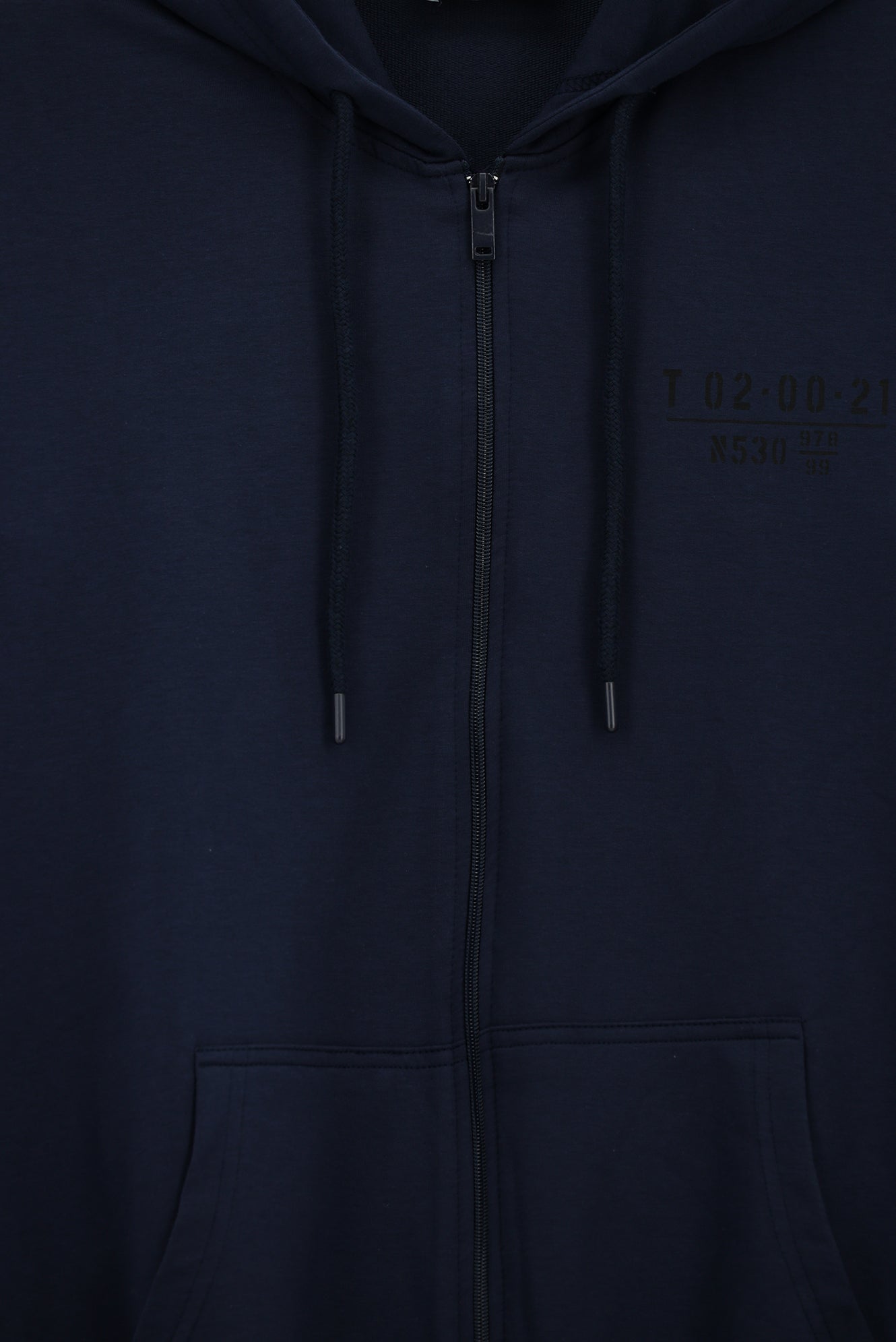 İndigo Kapüşonlu Regular Fit Fermuarlı Baskılı Pamuklu Sweatshirt