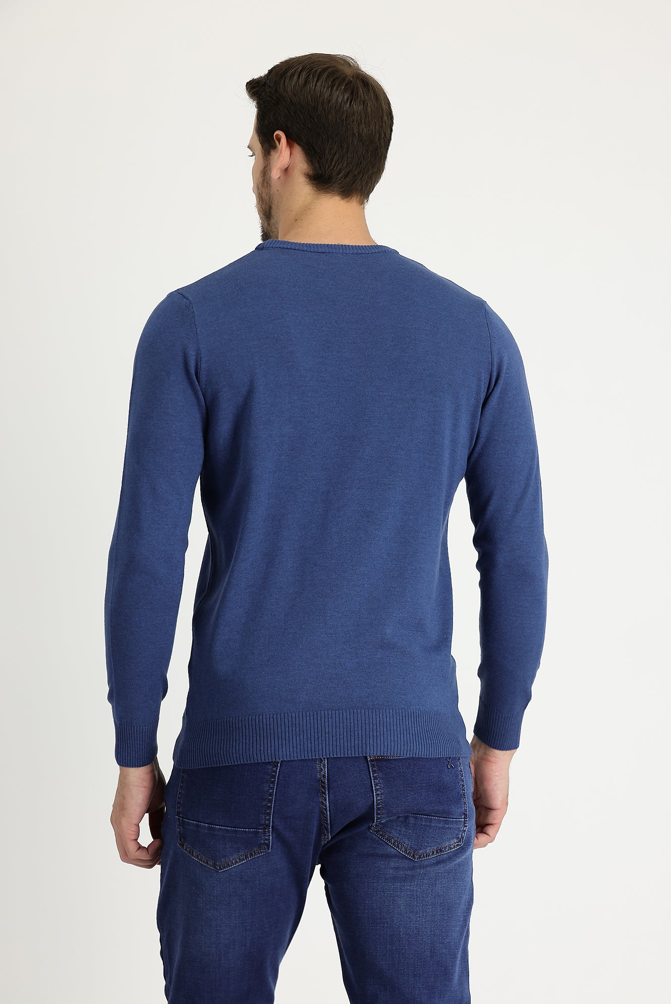 İndigo Melanj Bisiklet Yaka Regular Fit Triko Kazak