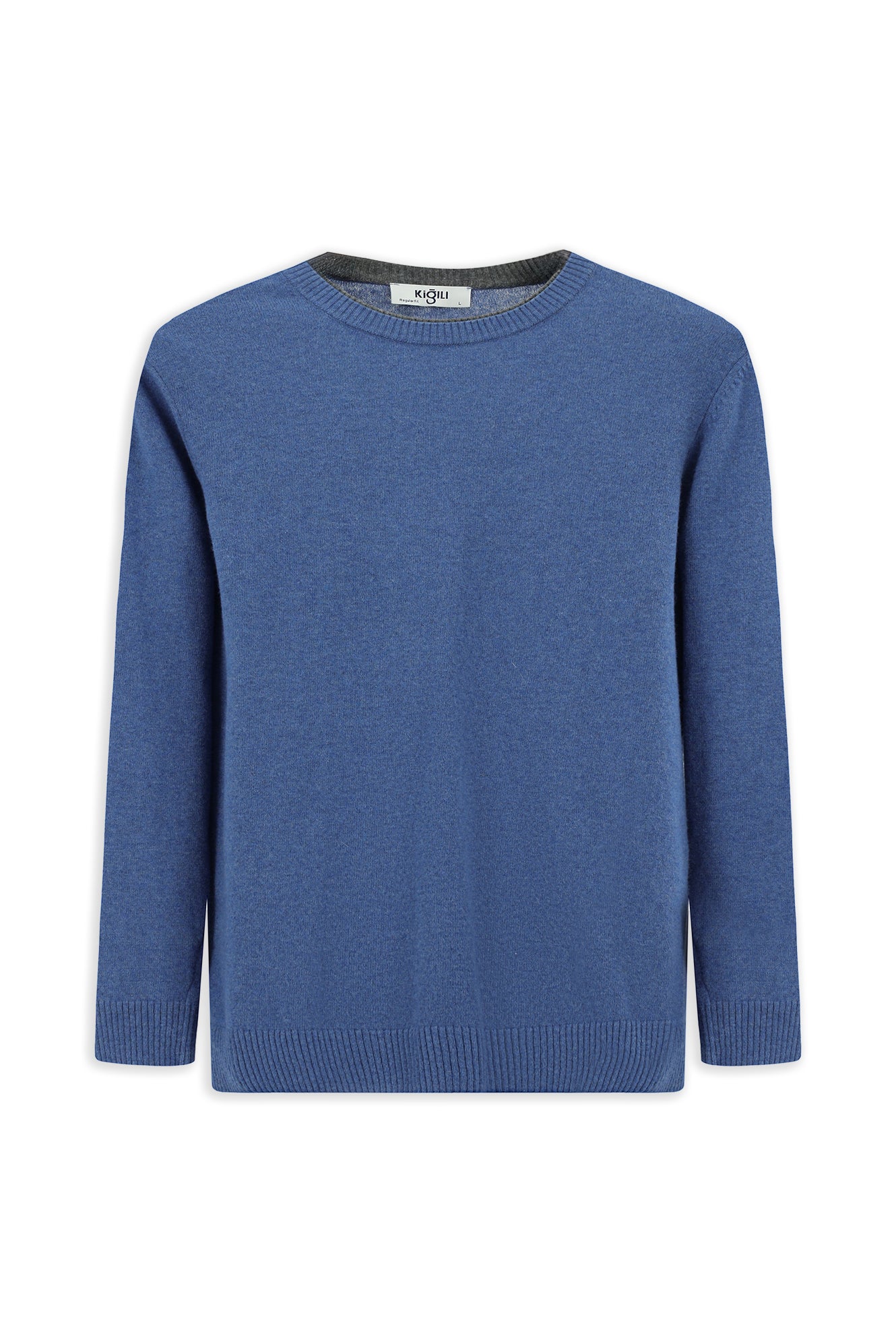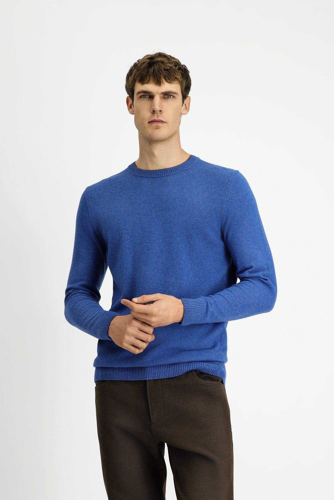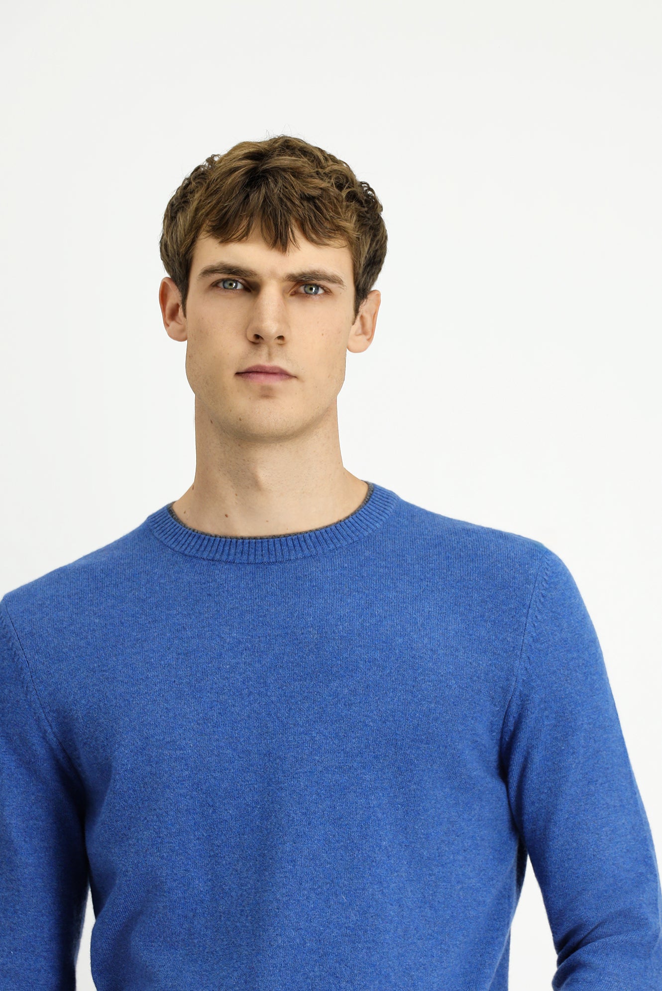 İndigo Melanj Bisiklet Yaka Regular Fit Yünlü Triko Kazak