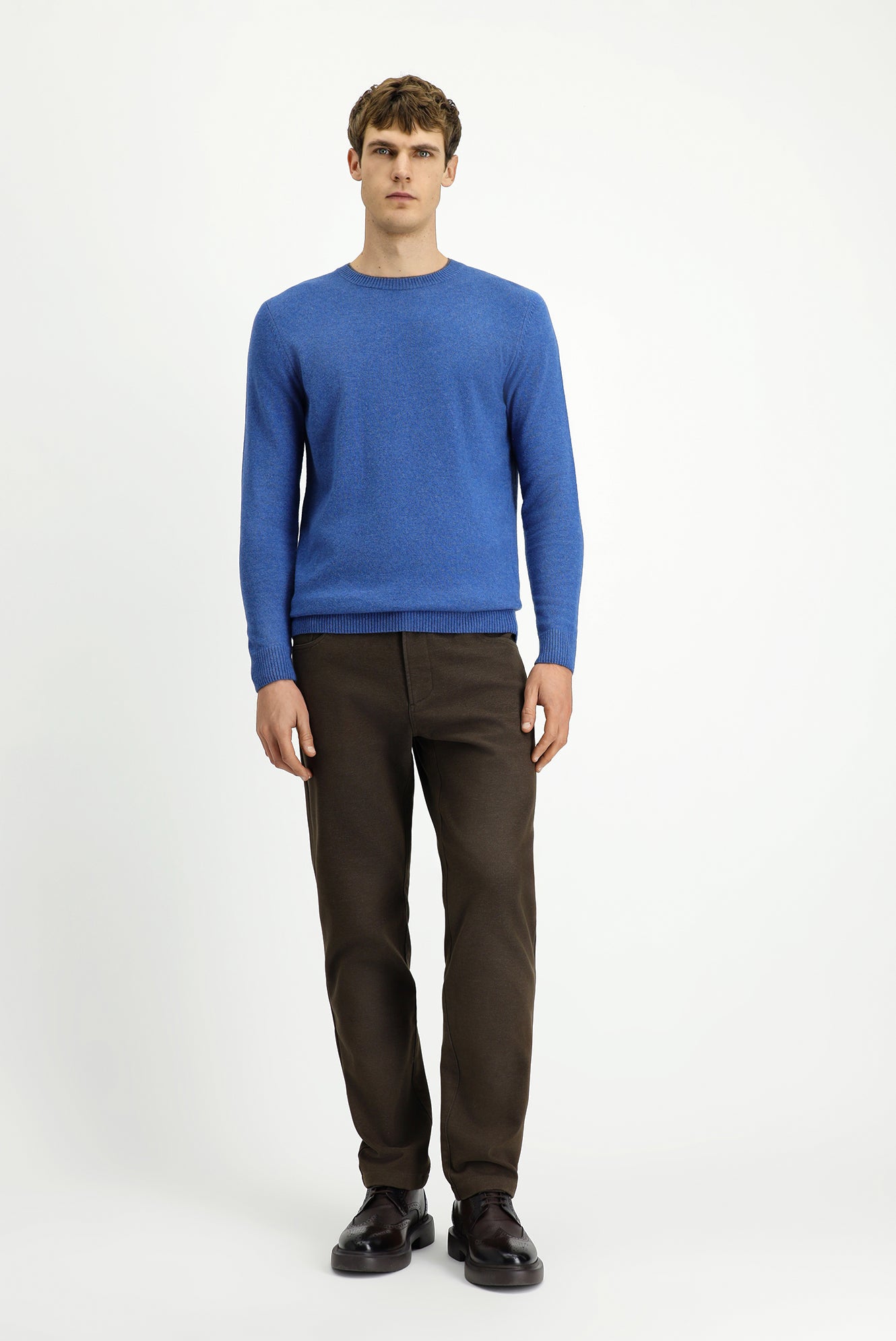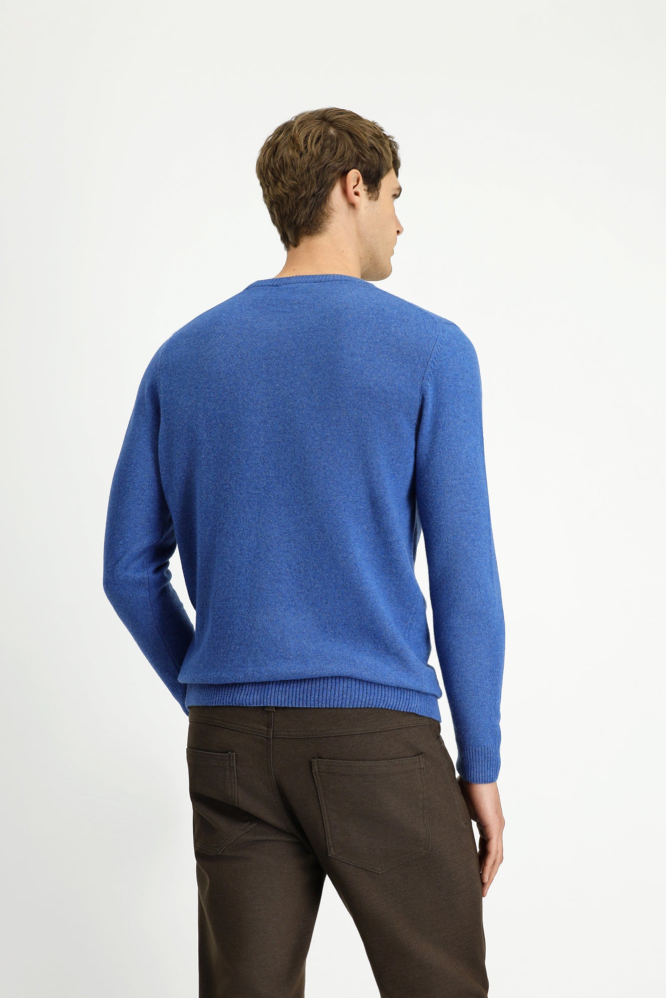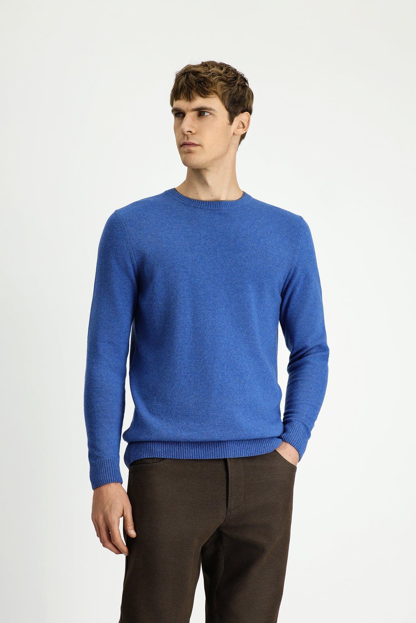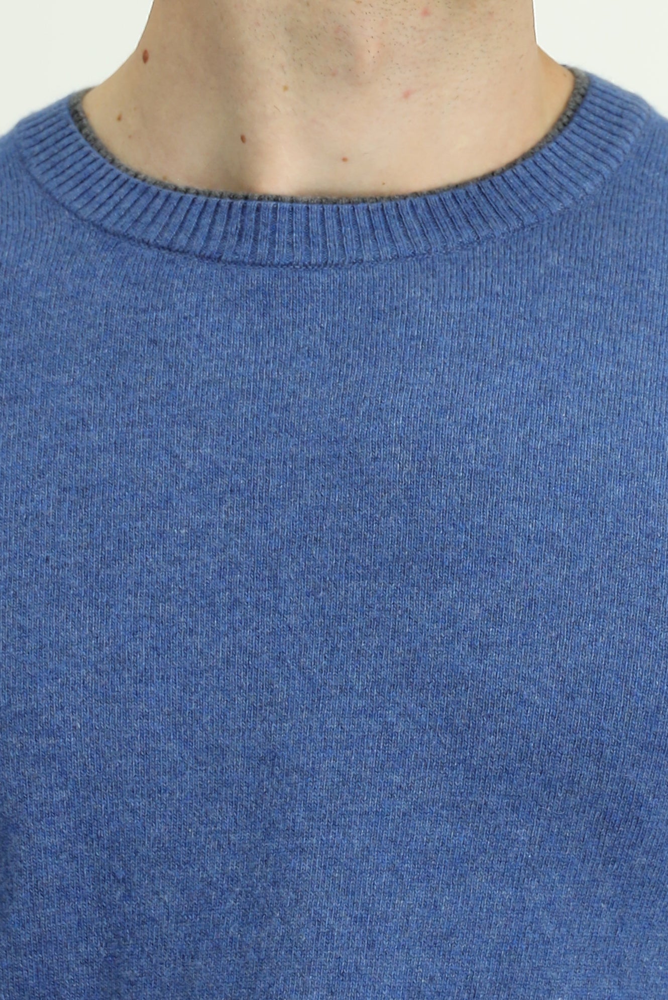 İndigo Melanj Bisiklet Yaka Regular Fit Yünlü Triko Kazak