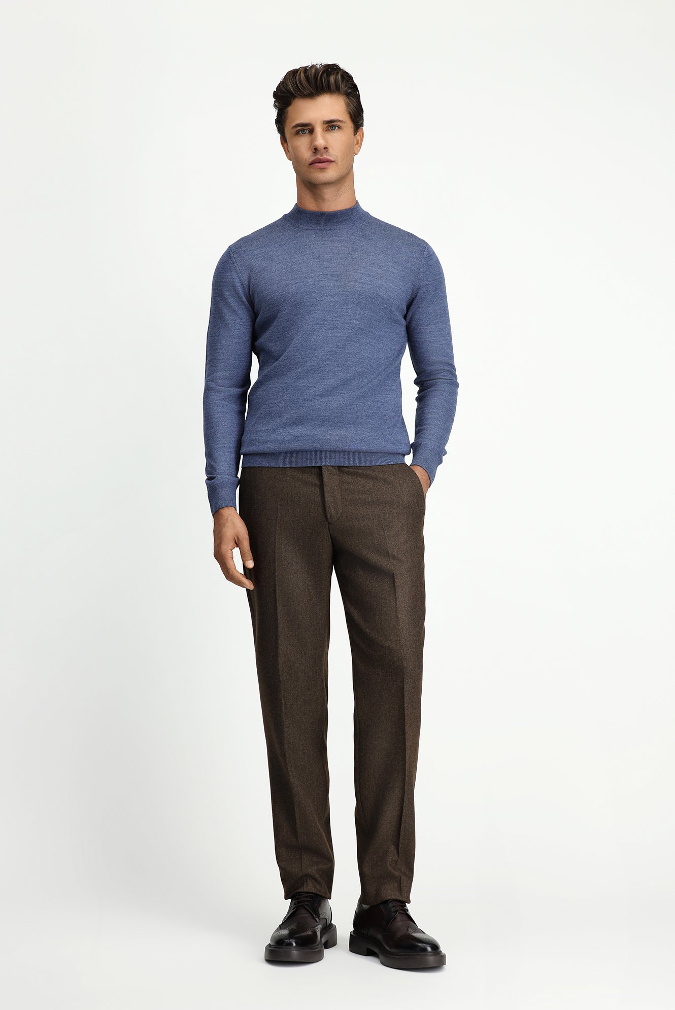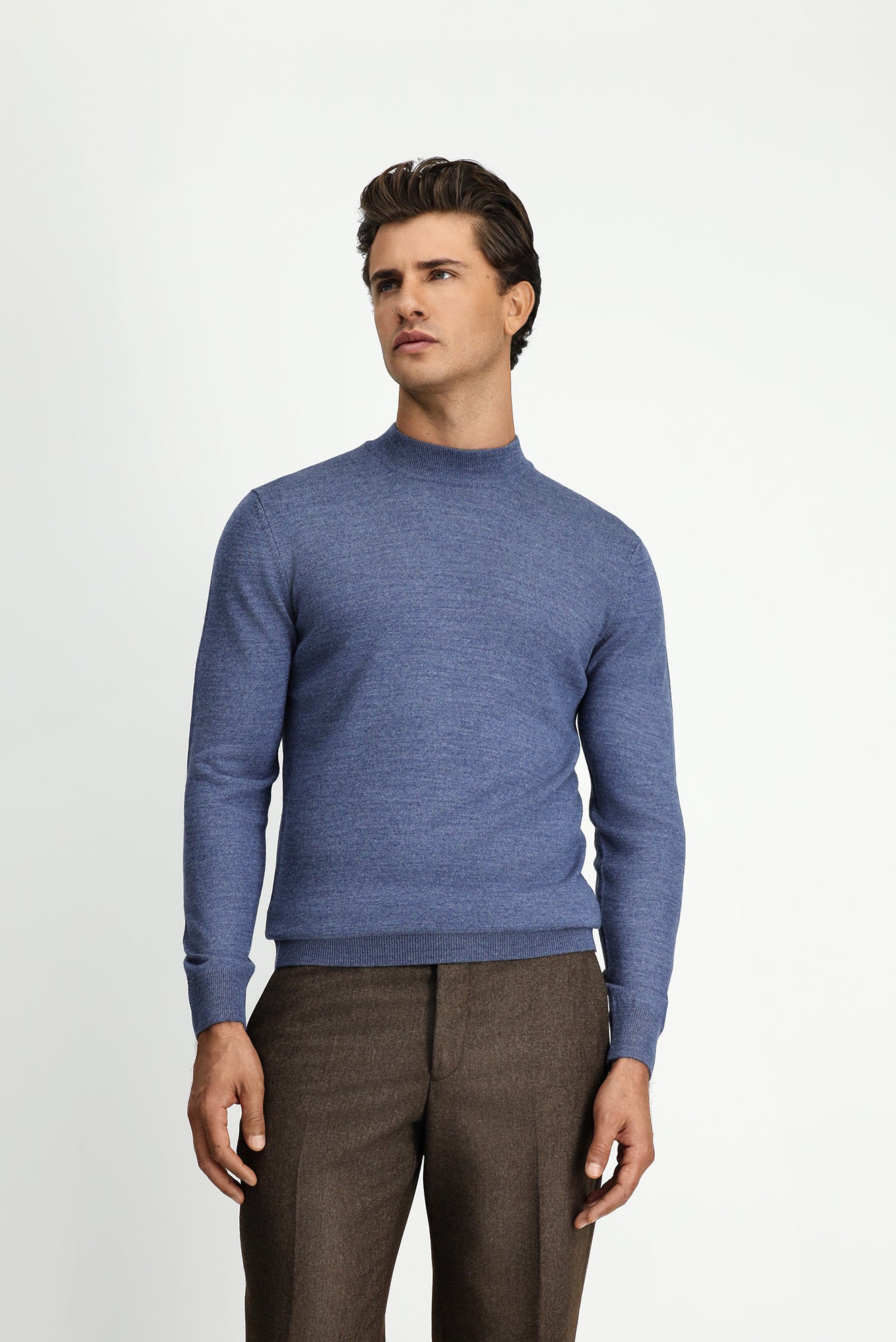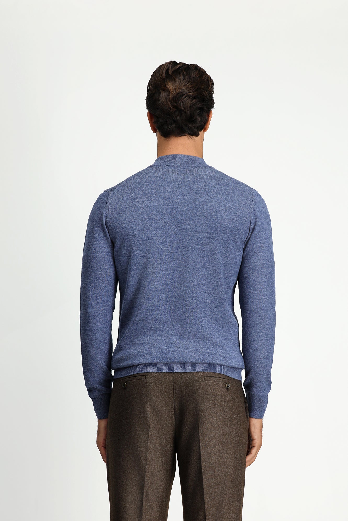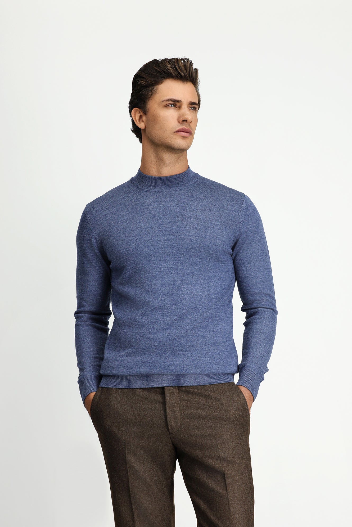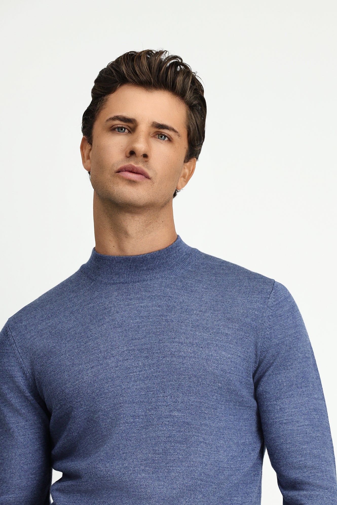 İndigo Melanj Yarım Balıkçı Yaka Regular Fit Yünlü Triko Kazak