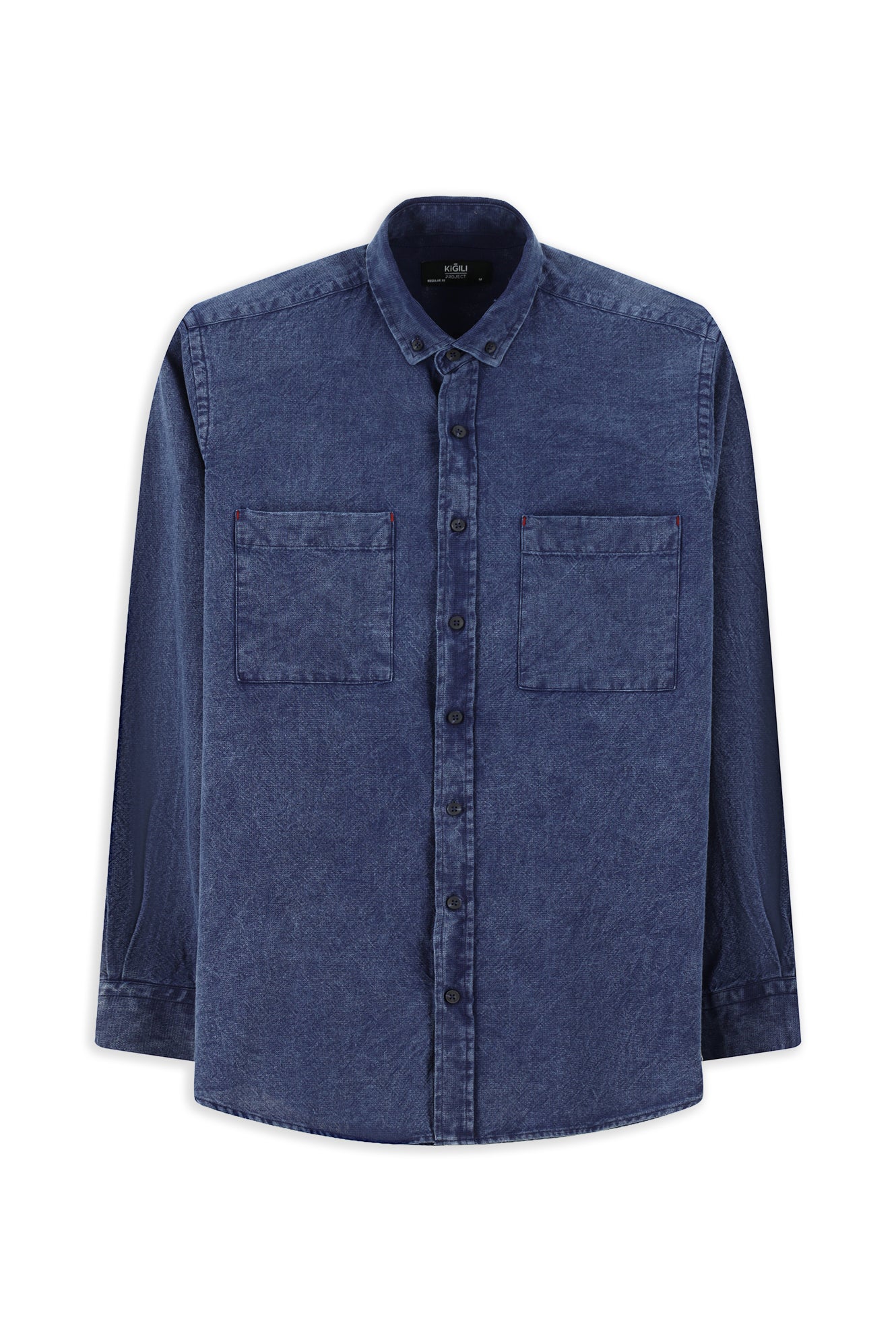 İndigo Uzun Kol Regular Fit Desenli Pamuk Düğmeli Yaka Denim Görünümlü Gömlek