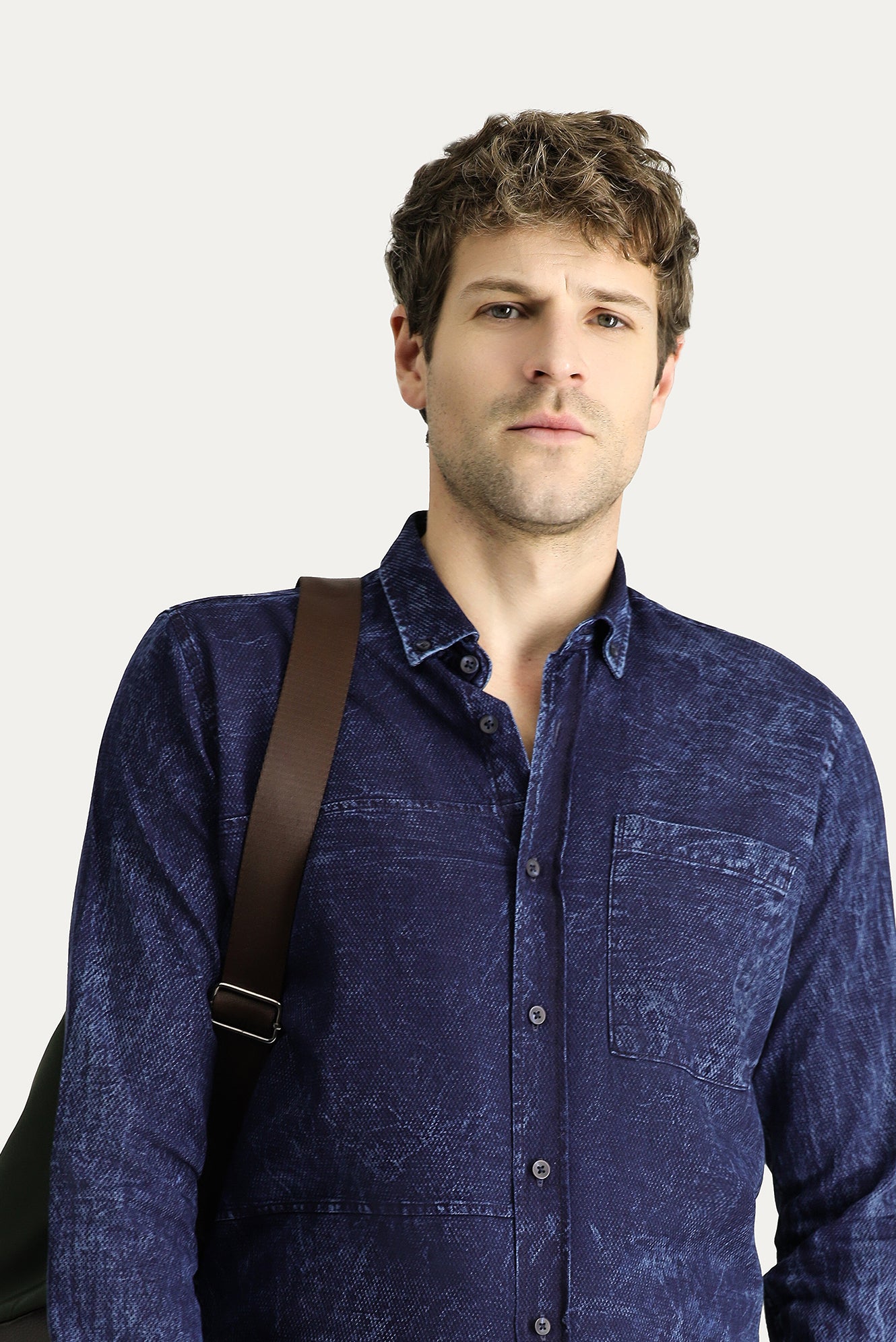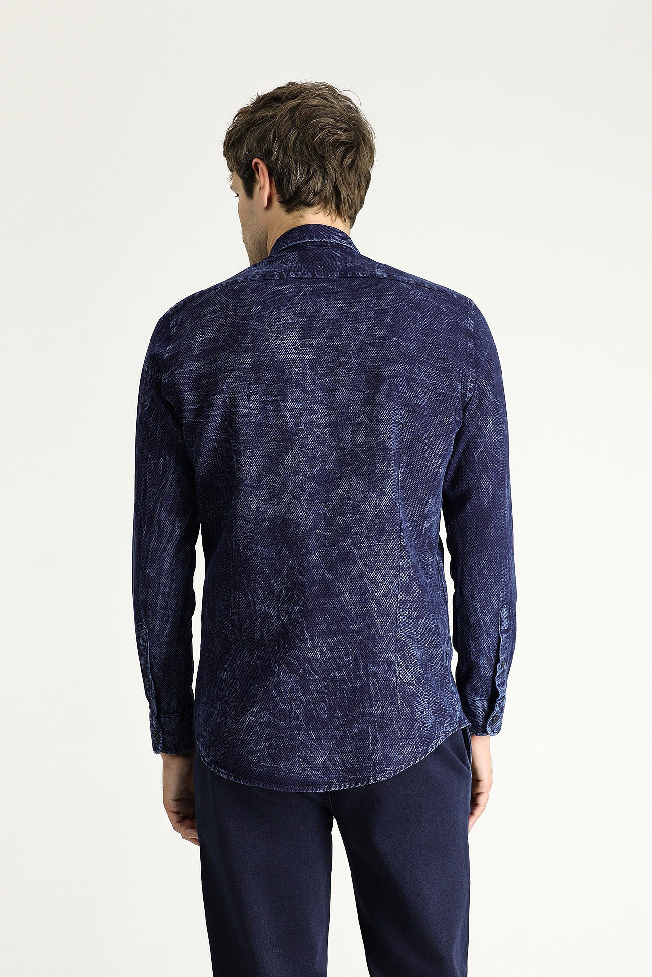İndigo Uzun Kol Slim Fit Dar Kesim Denim Pamuk Gömlek