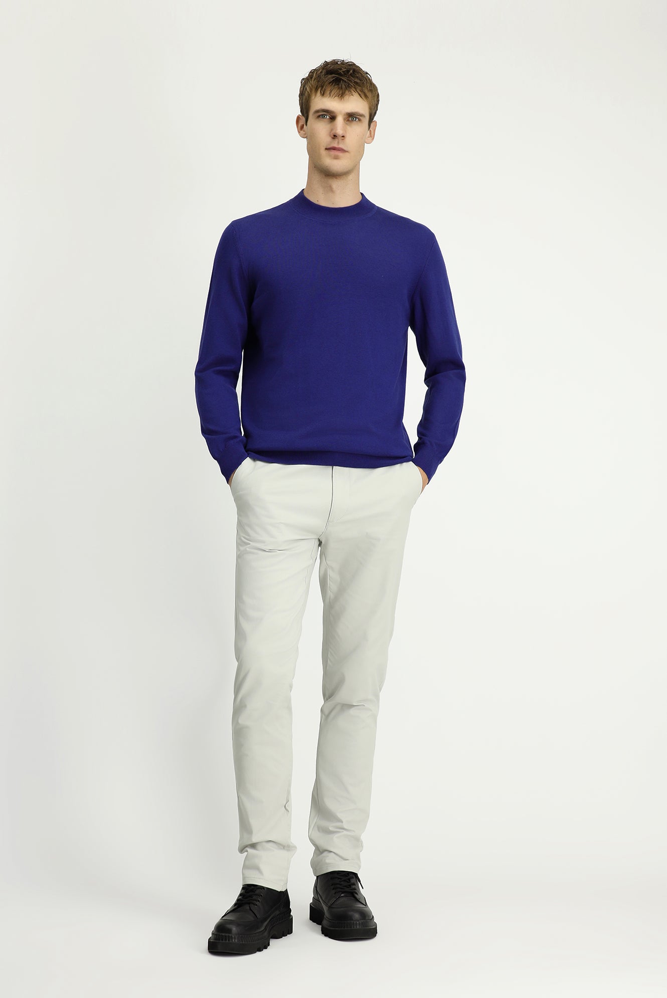 İndigo Yarım Balıkçı Yaka Regular Fit Pamuklu Kaşmirli Triko Kazak