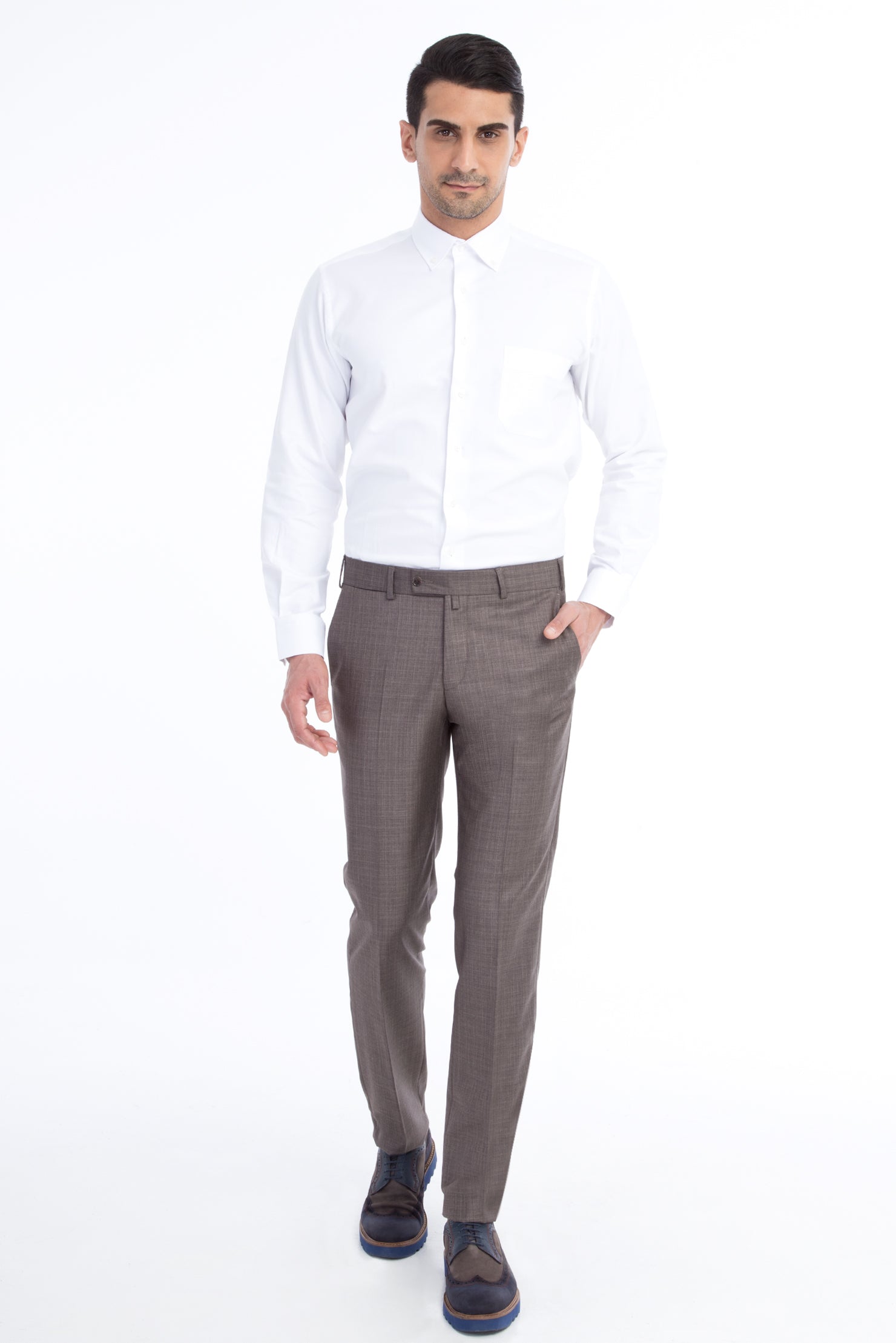 Kahve Slim Fit Dar Kesim Ekose Klasik Kumaş Pantolon