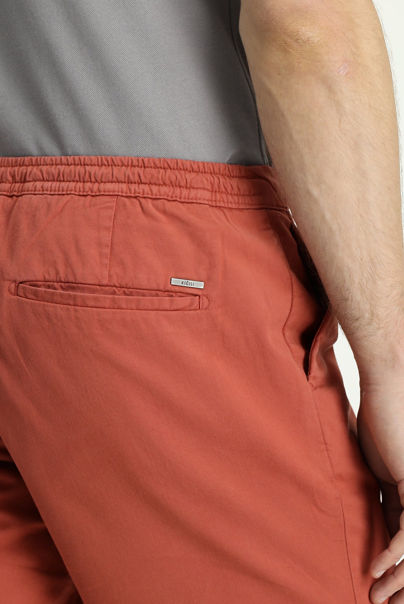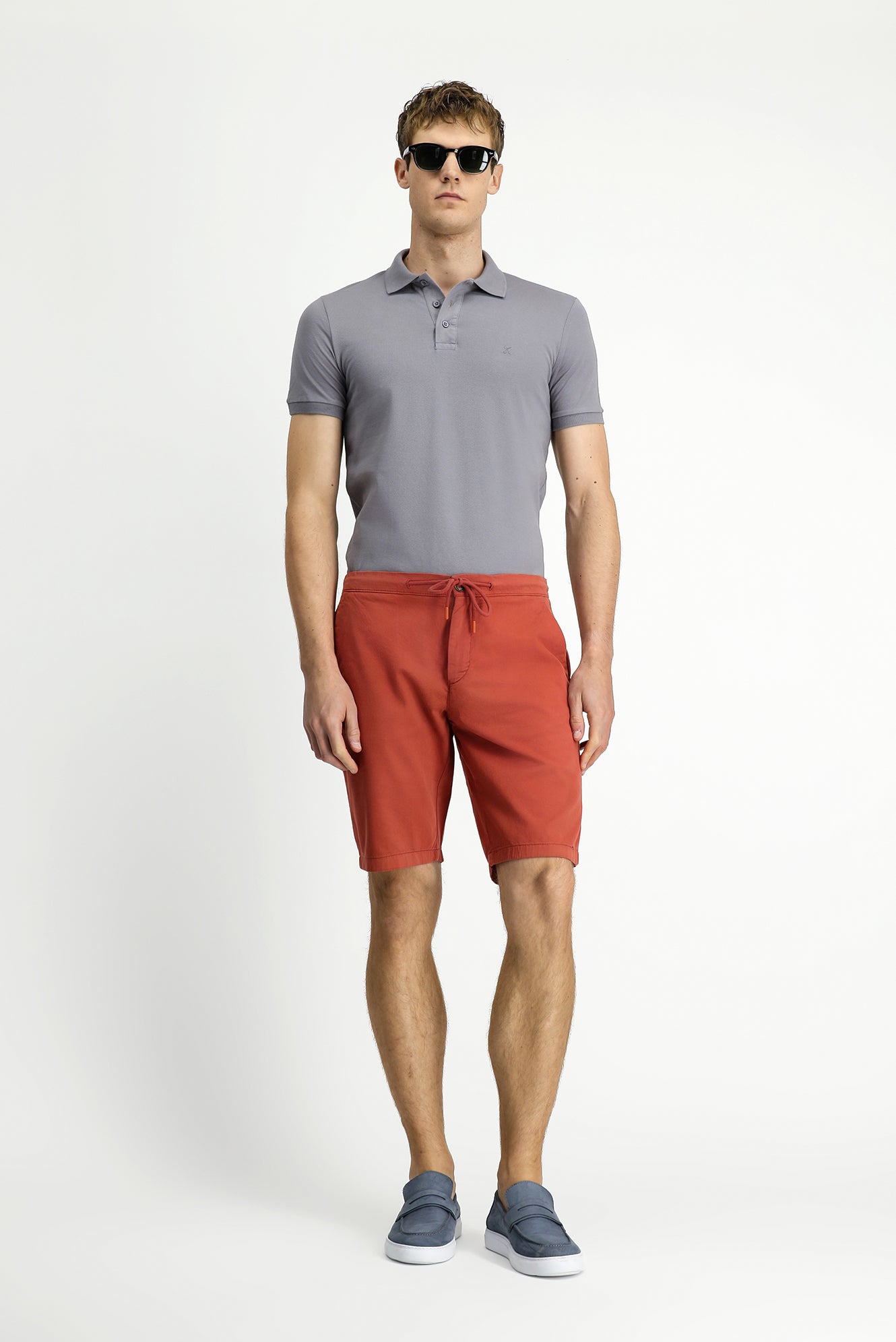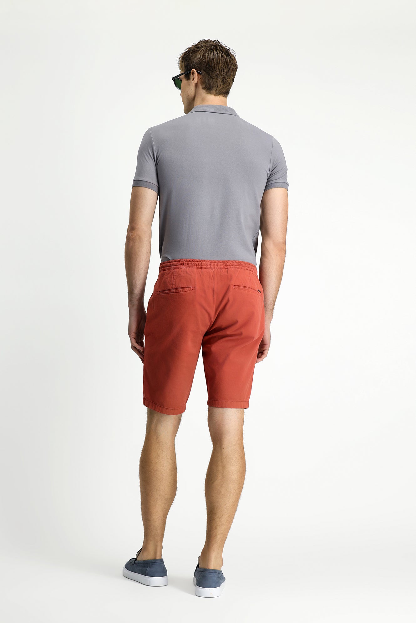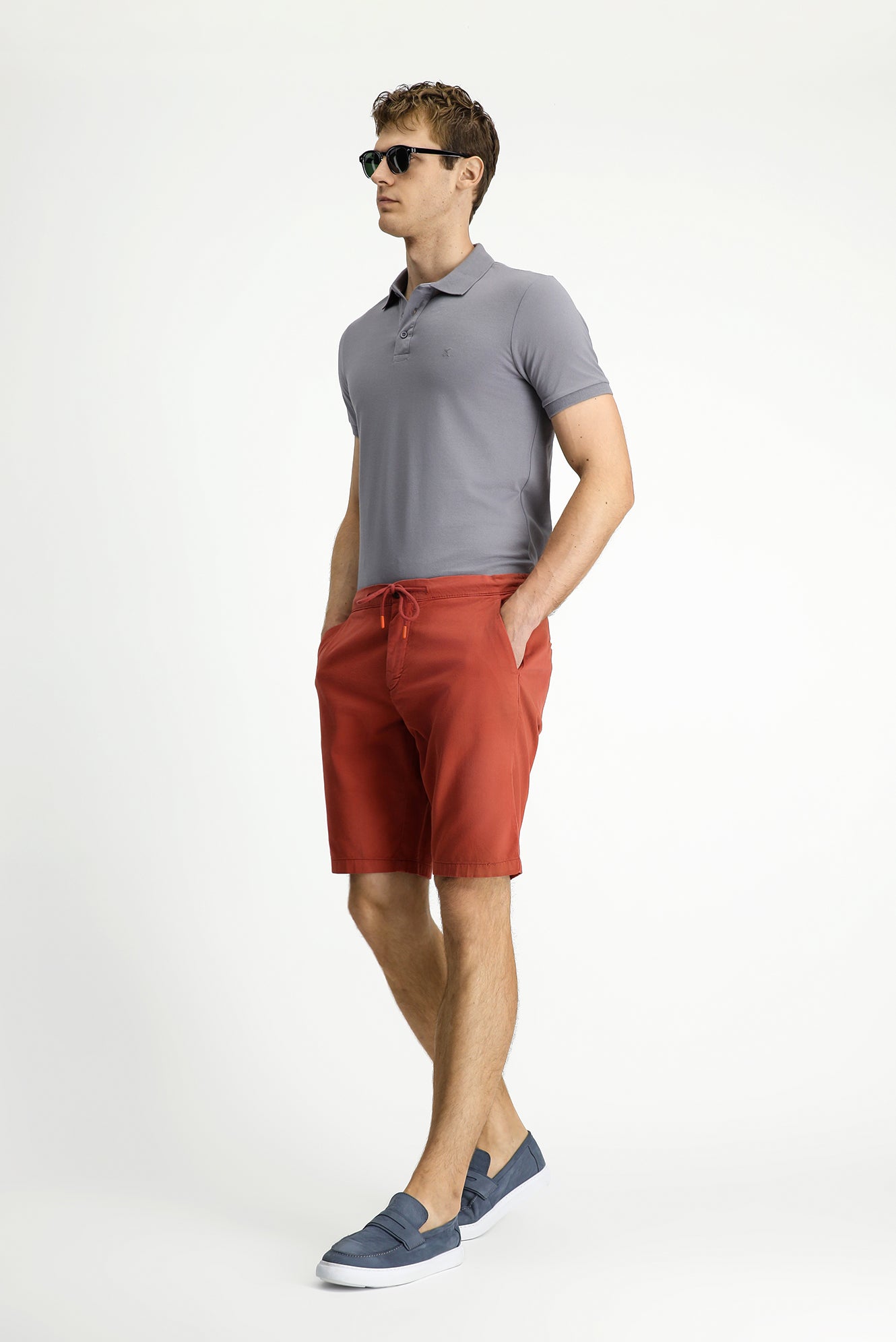 Kiremit Regular Fit Beli Lastikli İpli Pamuklu Bermuda Şort