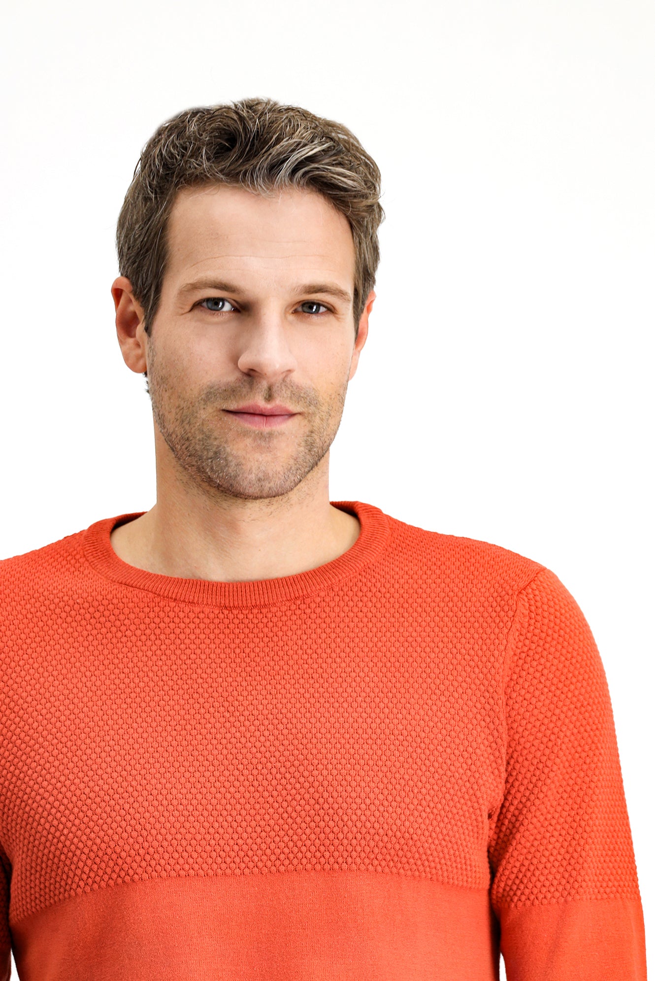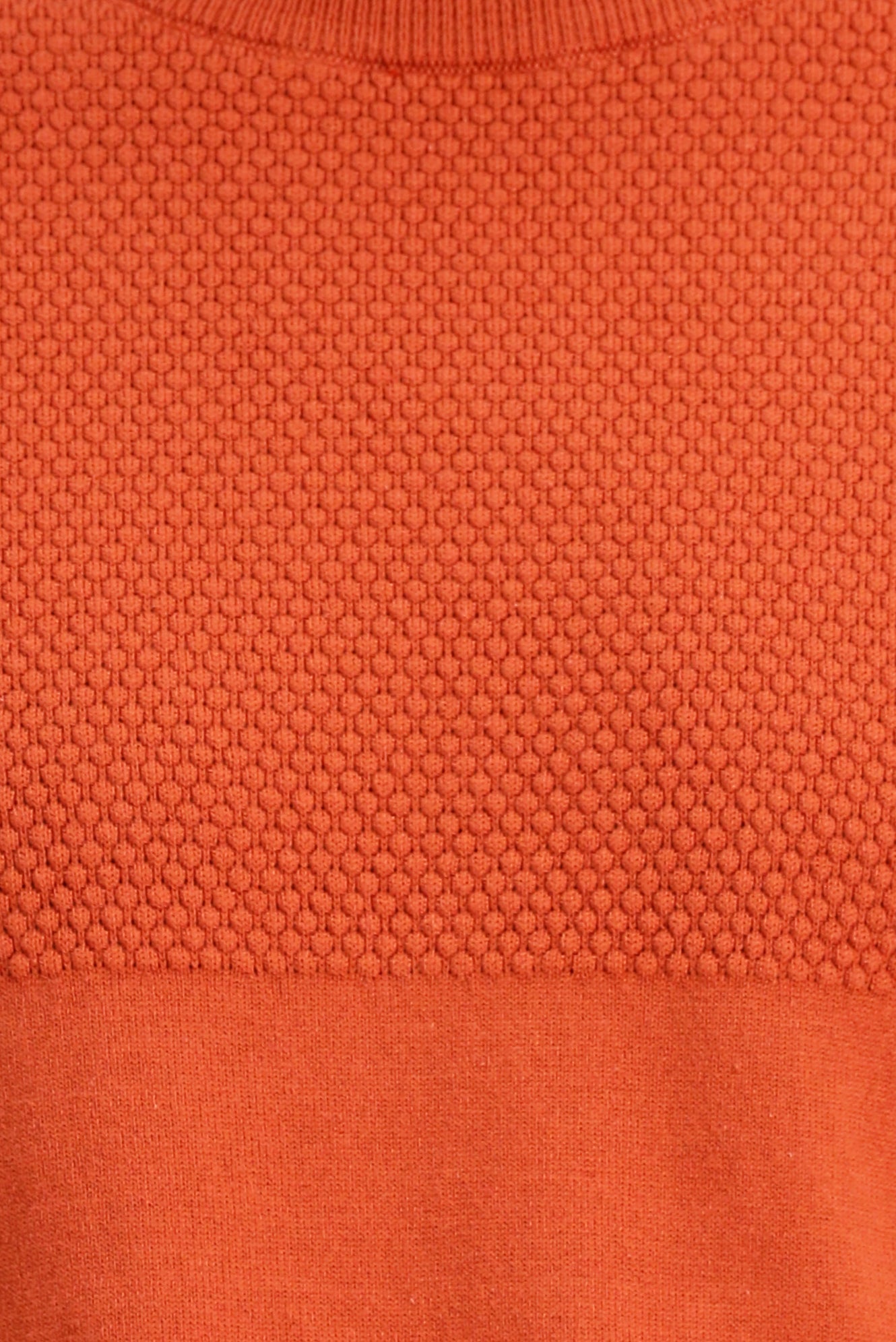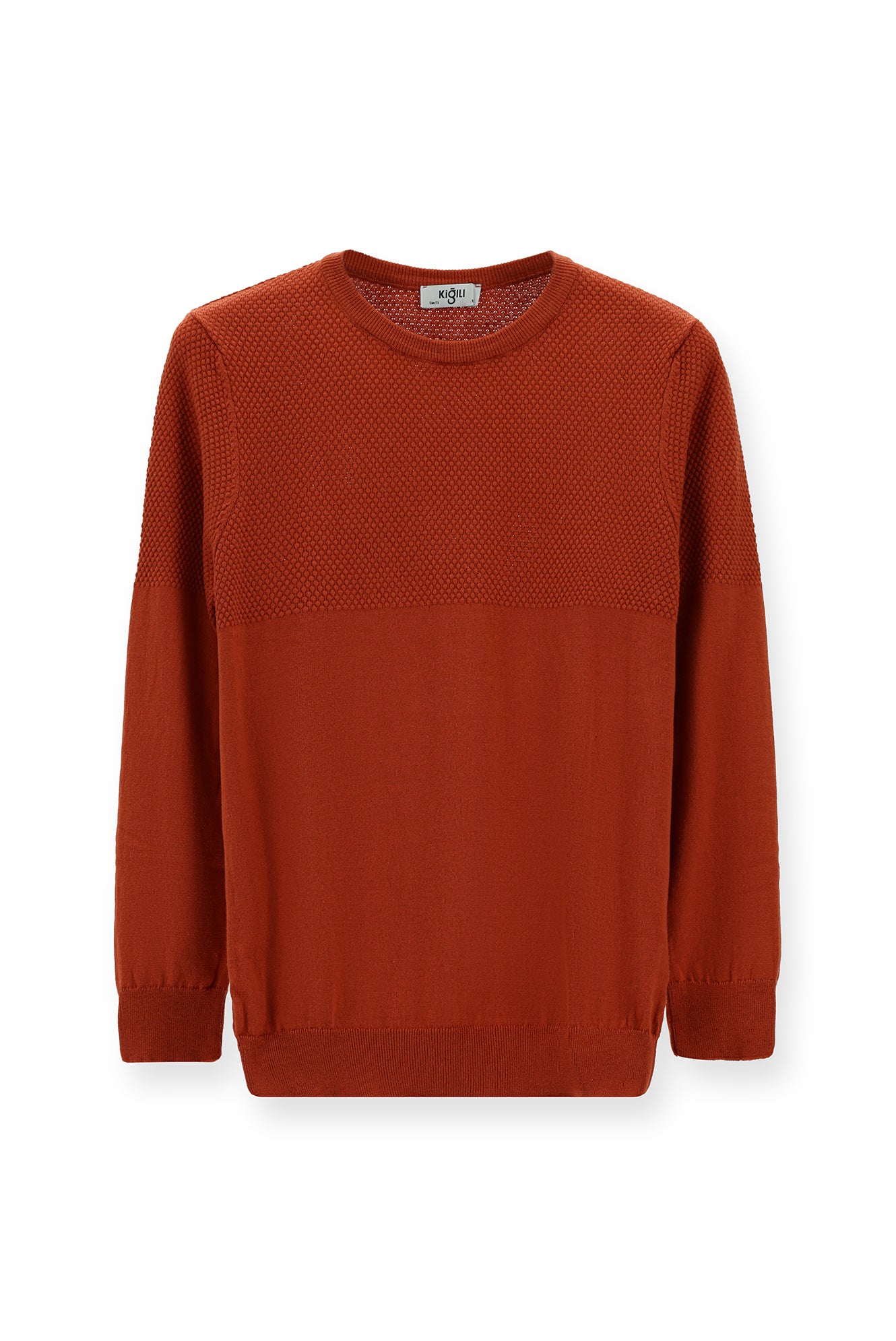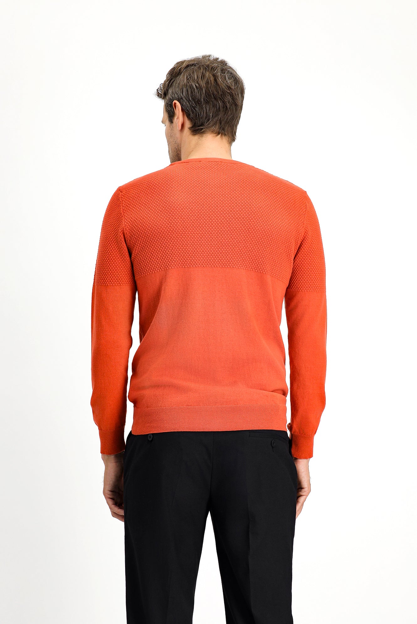 Kiremit Bisiklet Yaka Slim Fit Dar Kesim Desenli Pamuklu Triko Kazak