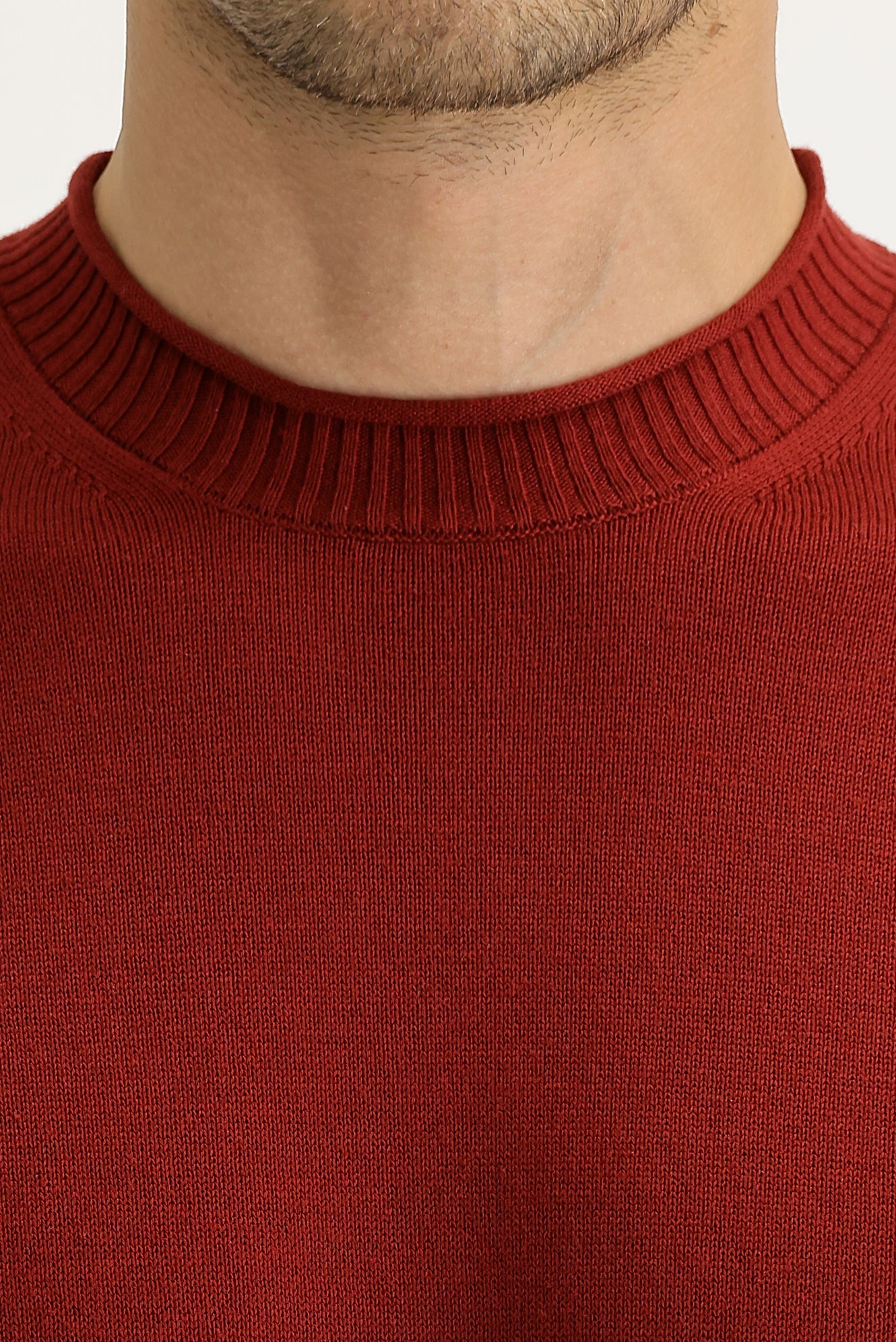Kiremit Bisiklet Yaka Slim Fit Dar Kesim Triko Kazak
