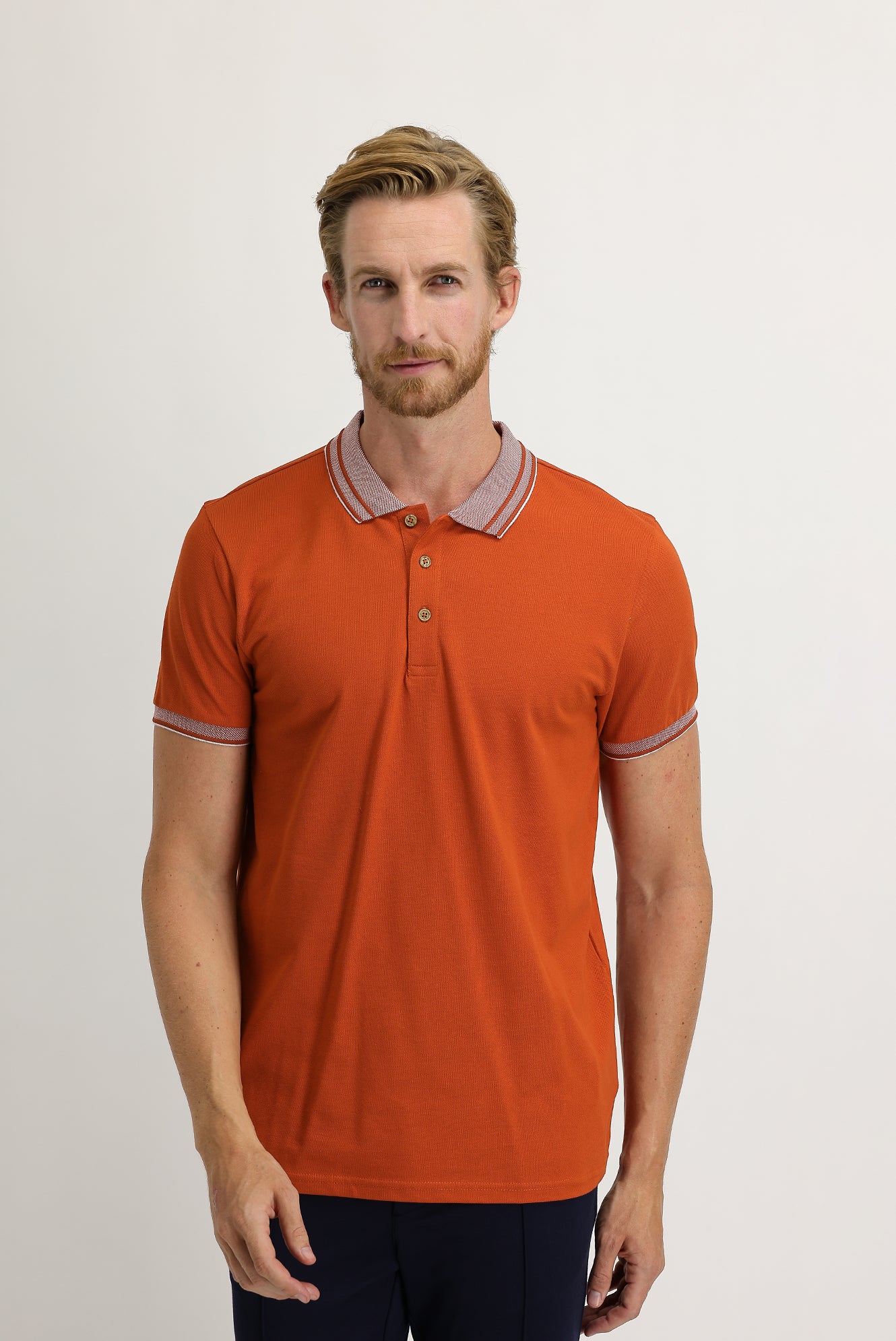 Kiremit Polo Yaka Slim Fit Dar Kesim Pamuk Tişört