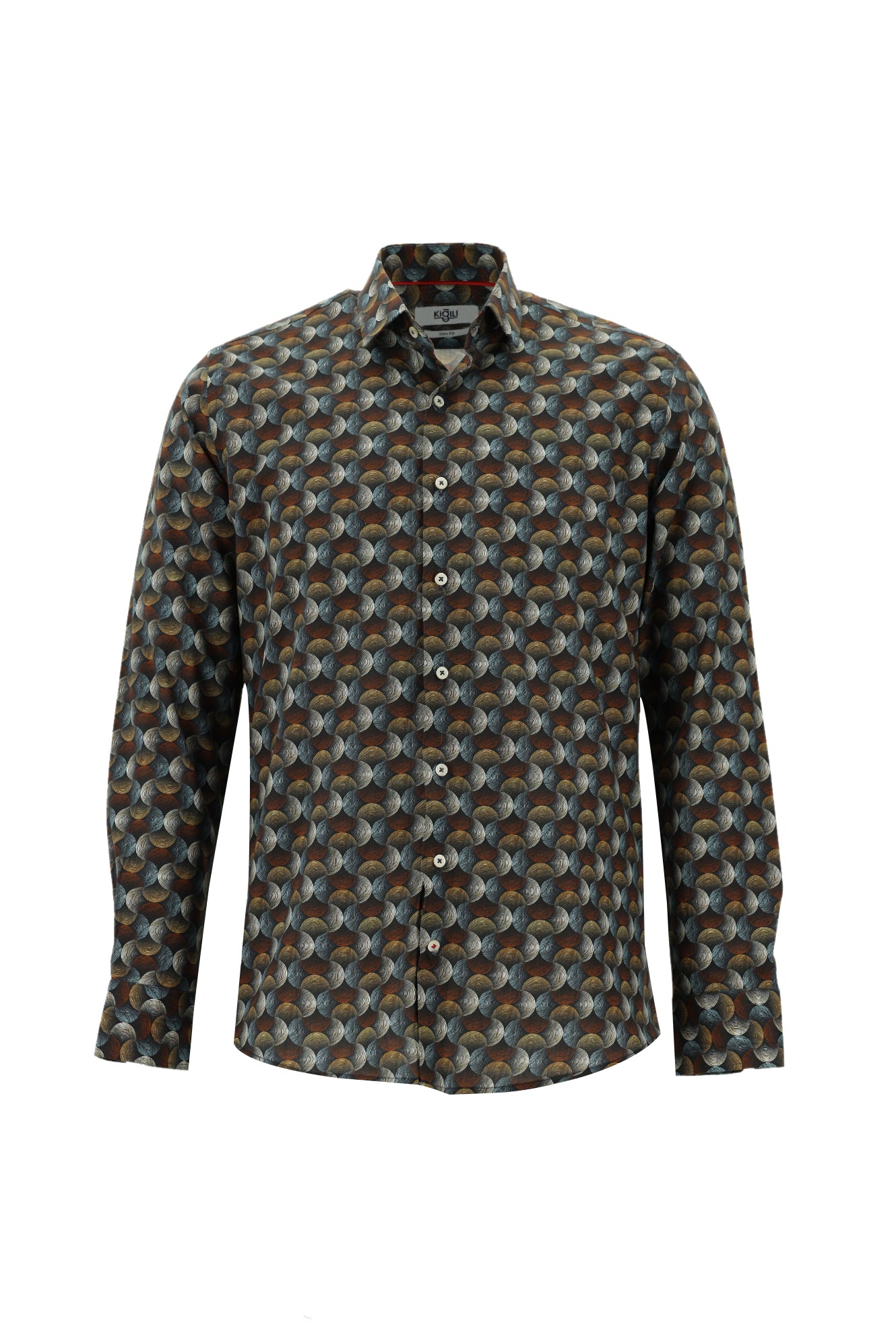 Kiremit Uzun Kol Baskılı Slim Fit Dar Kesim Pamuk Gömlek