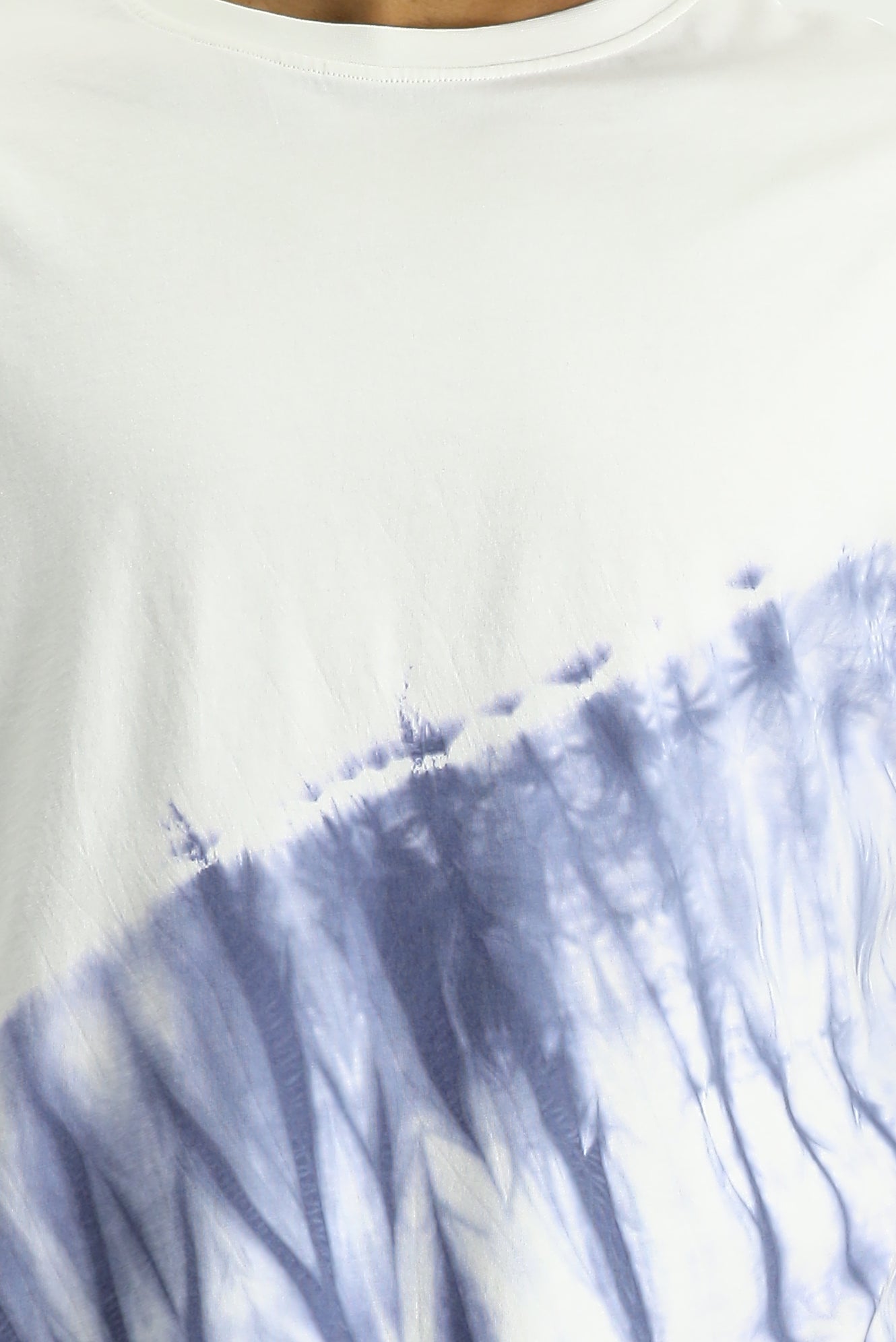 Kırık Beyaz Bisiklet Yaka Oversize Pamuk Baskılı Tişört