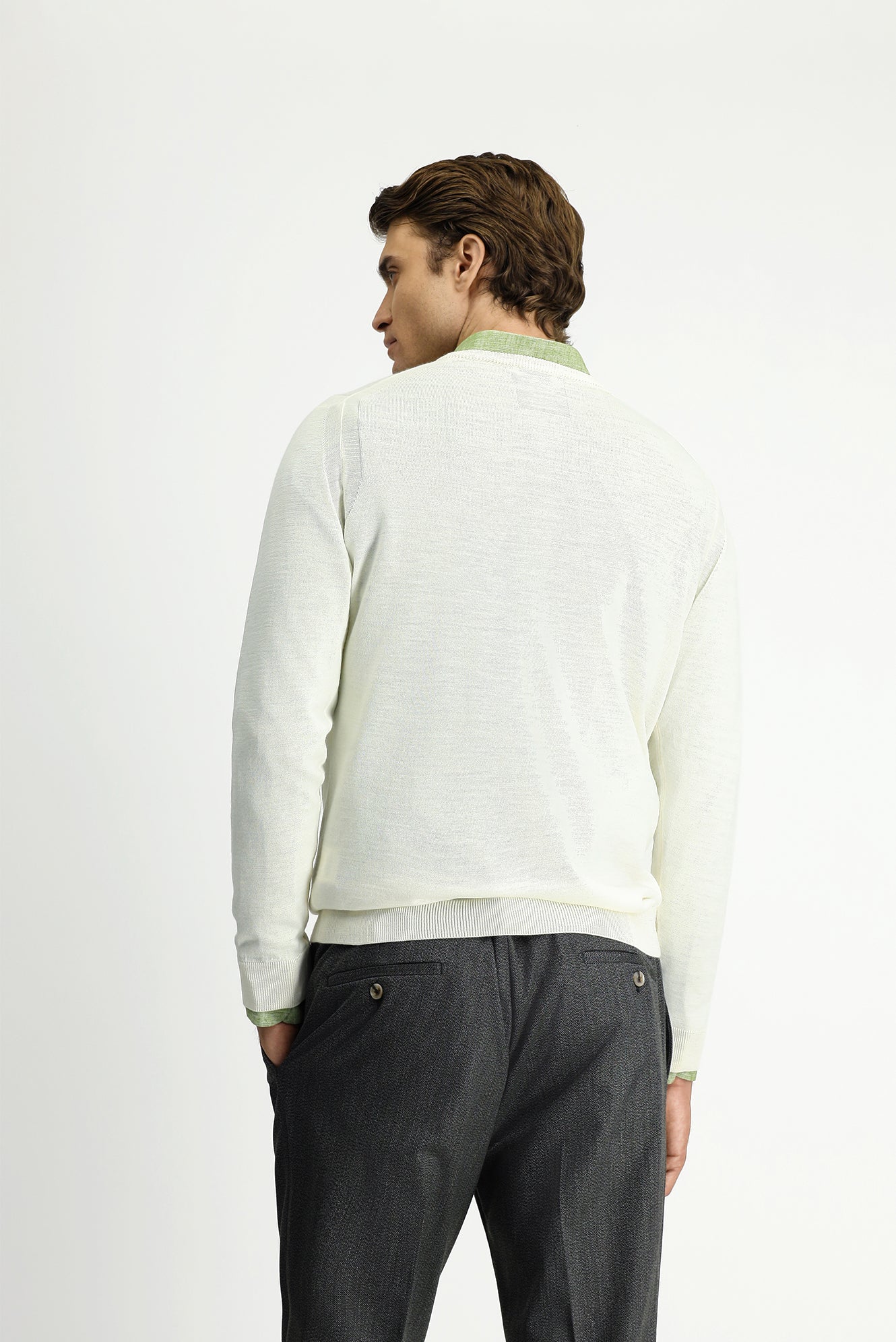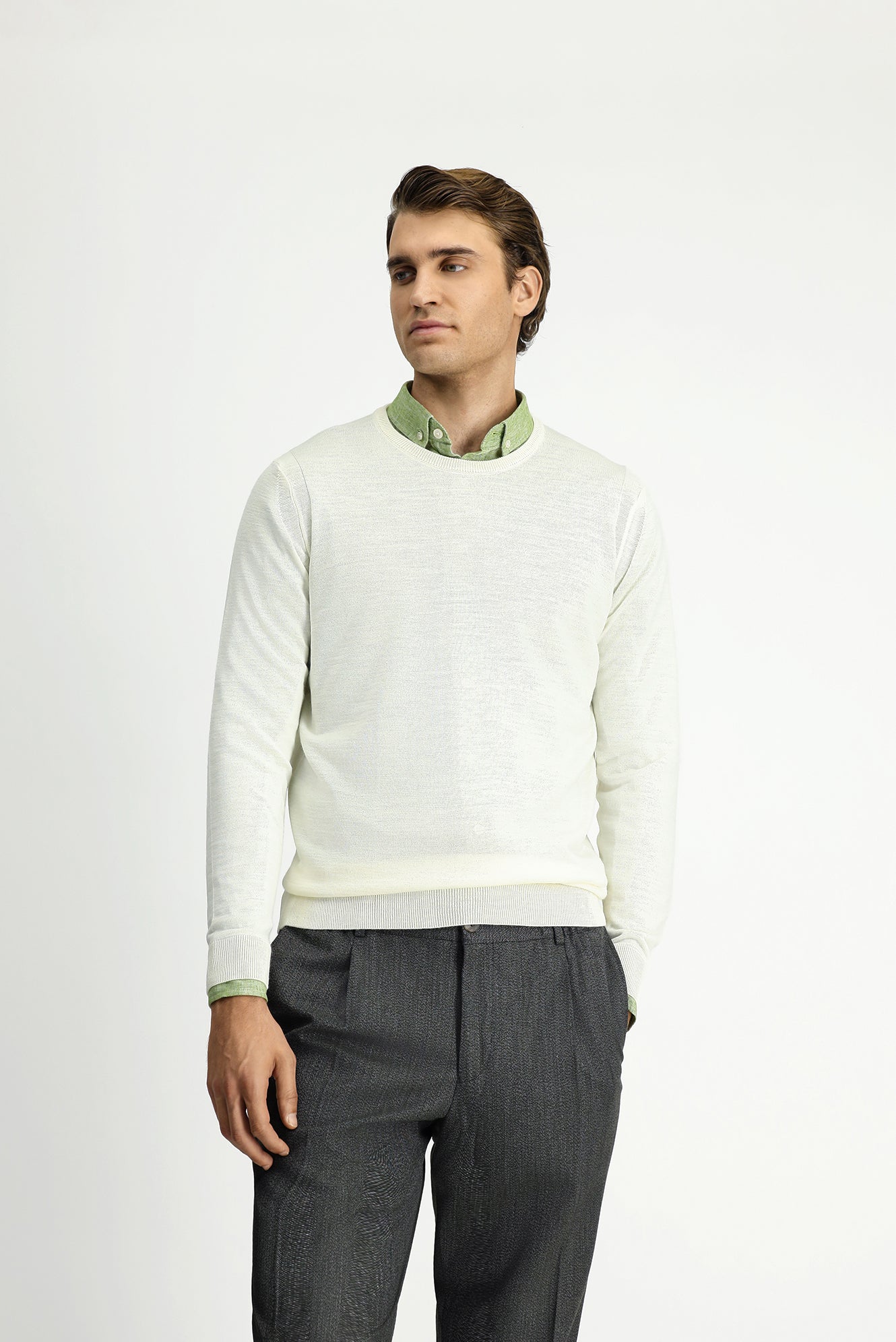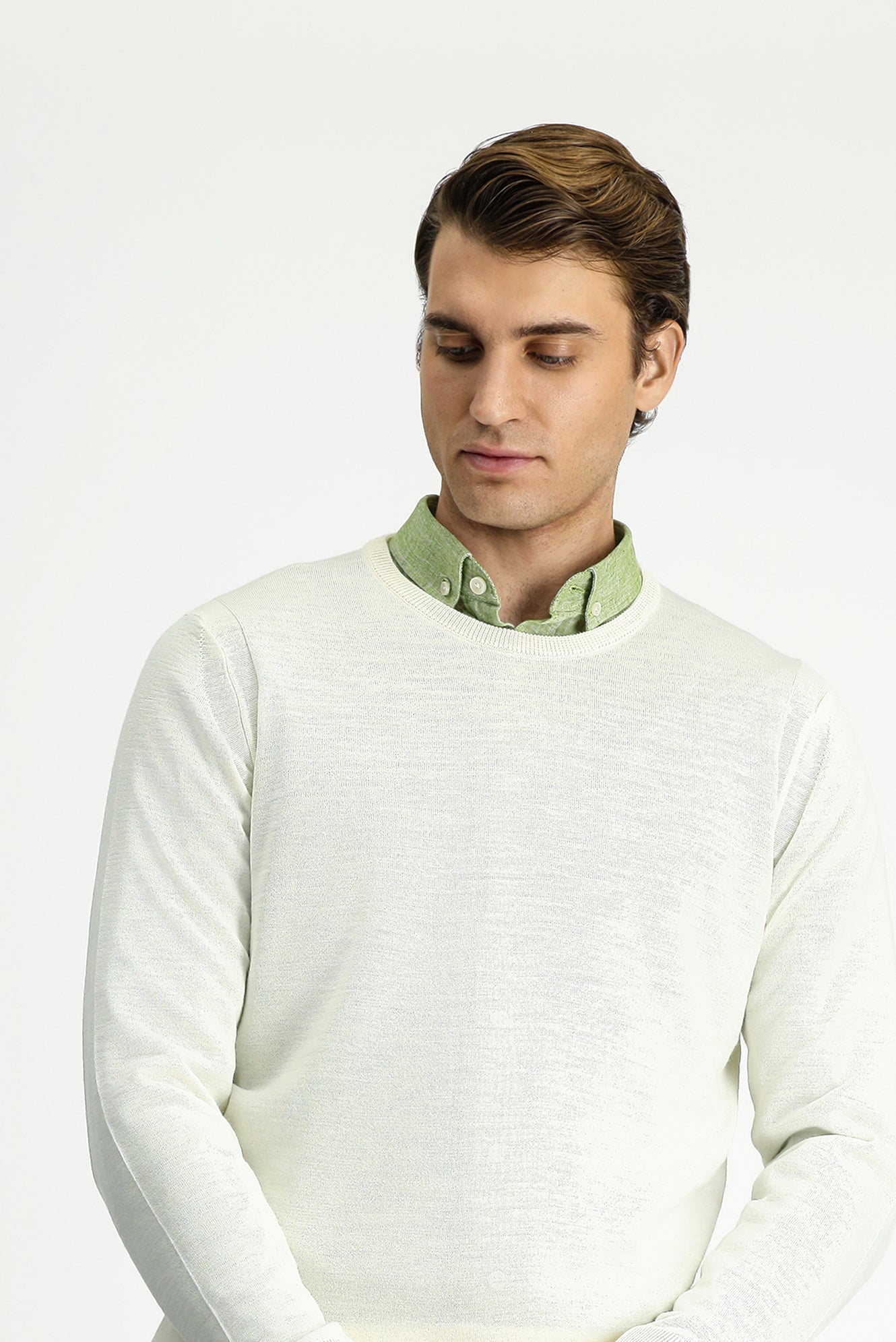 Kırık Beyaz Bisiklet Yaka Regular Fit Yünlü Triko Kazak