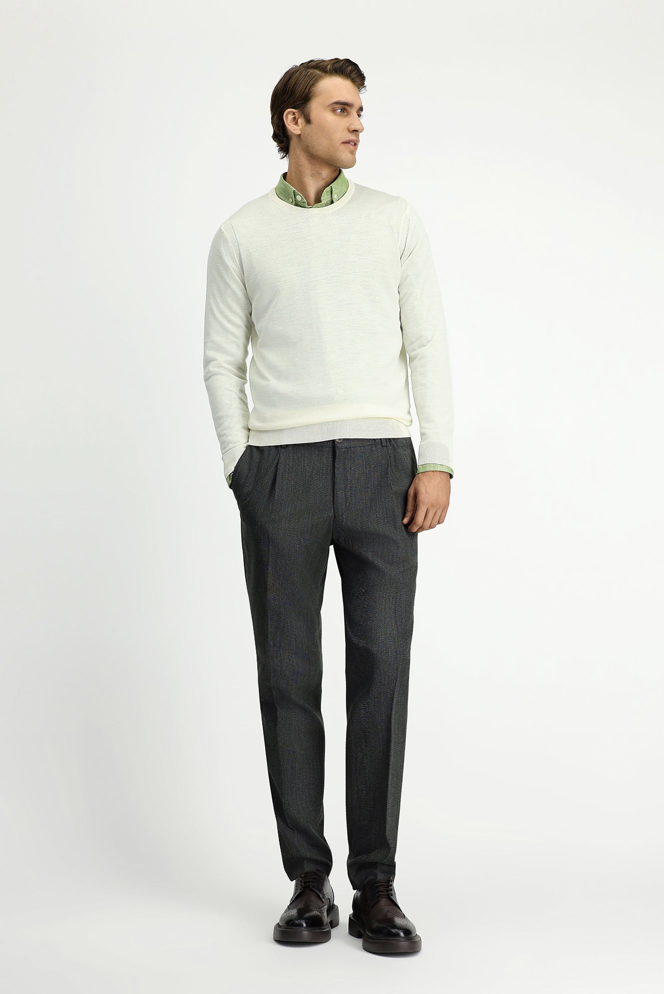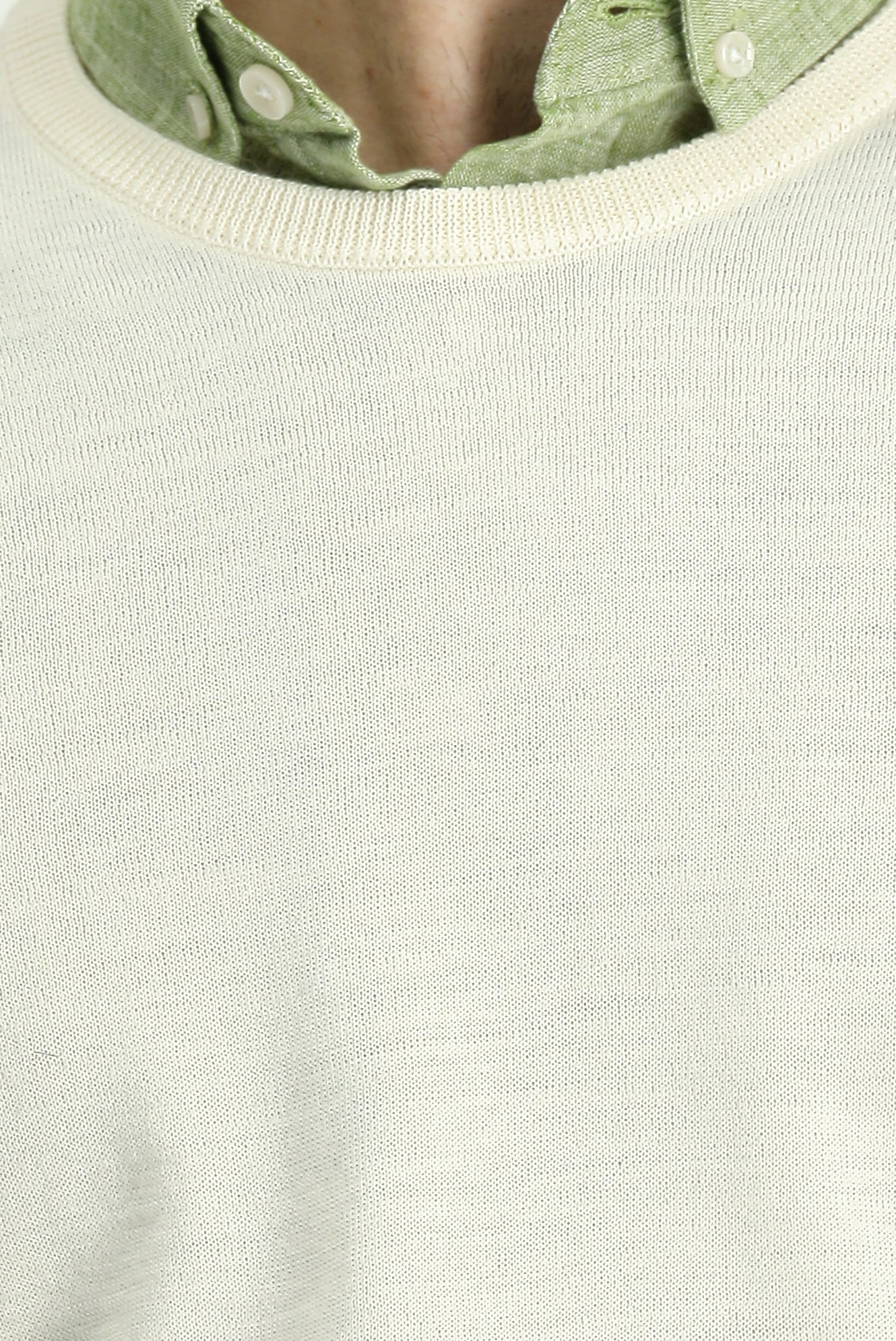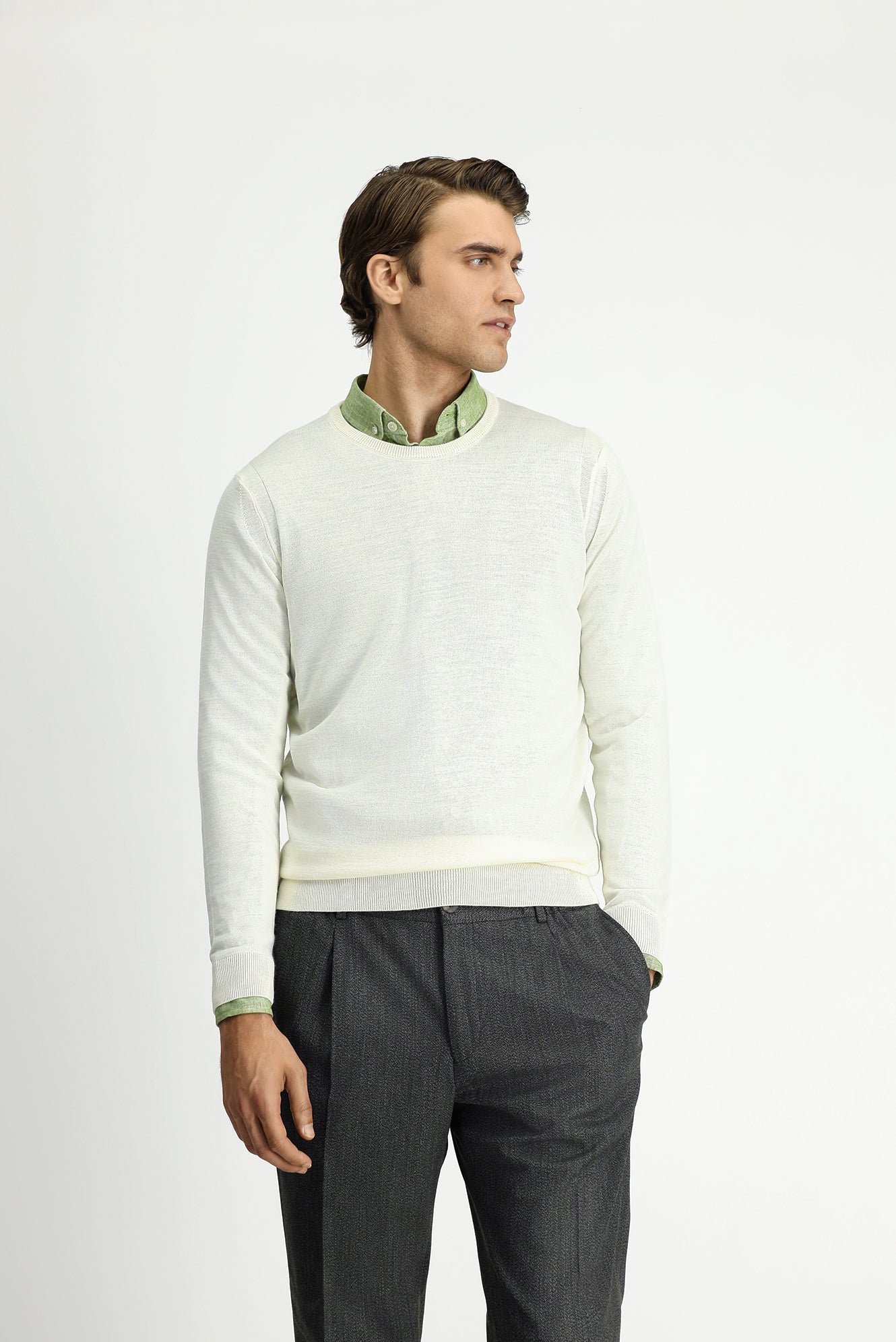 Kırık Beyaz Bisiklet Yaka Regular Fit Yünlü Triko Kazak