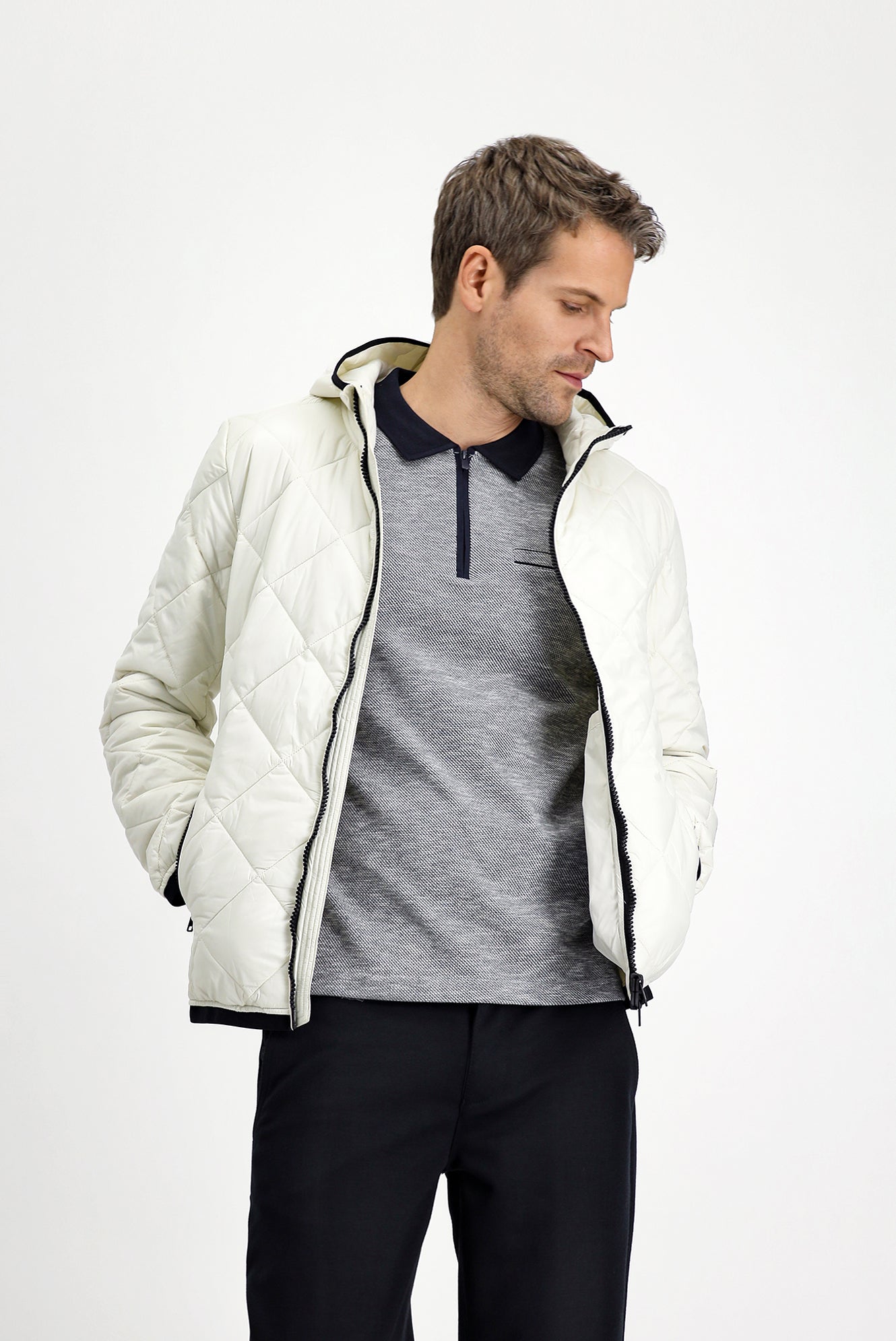 Kırık Beyaz Kapüşonlu Kapitone Spor Mont