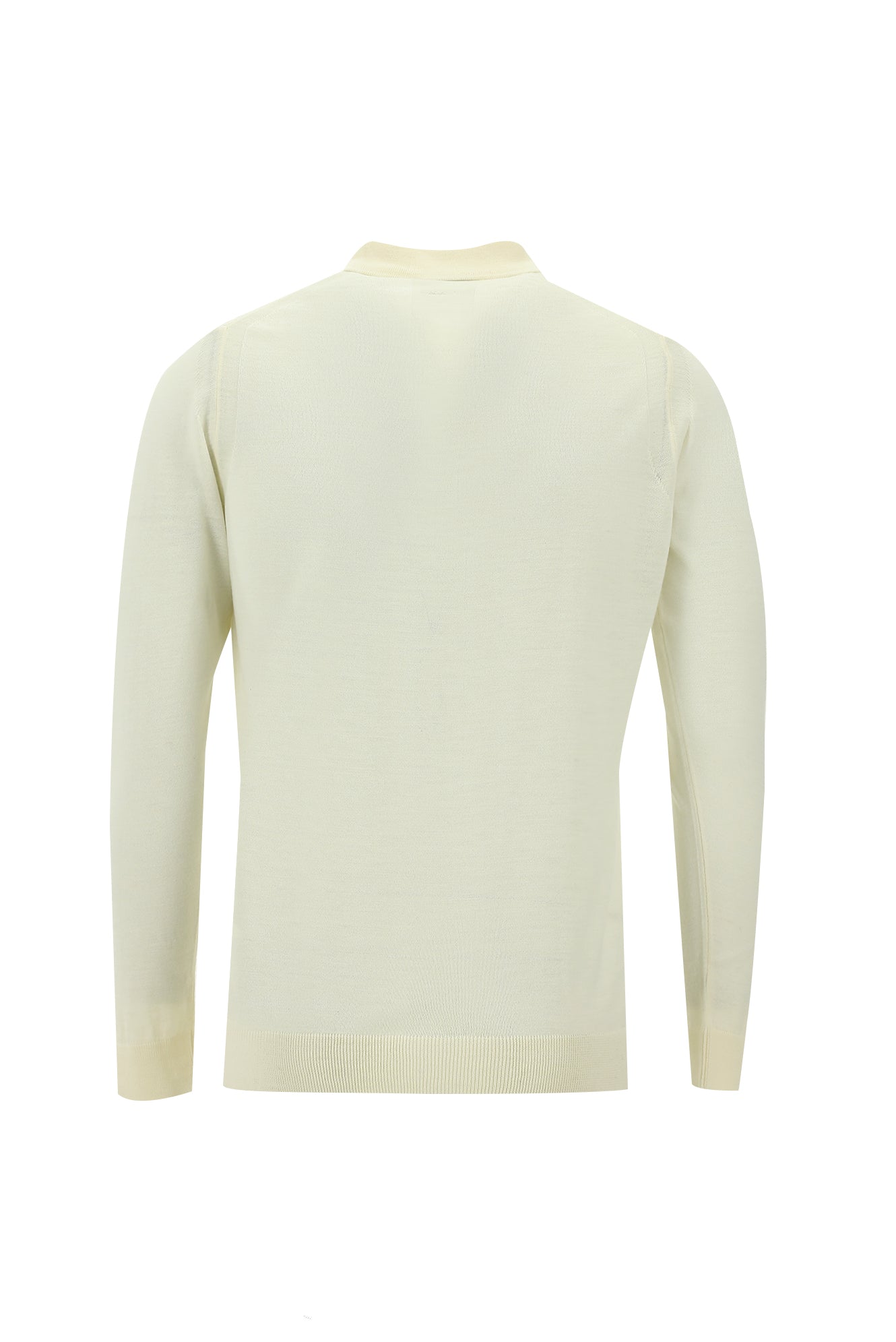 Kırık Beyaz Polo Yaka Regular Fit Triko Kazak