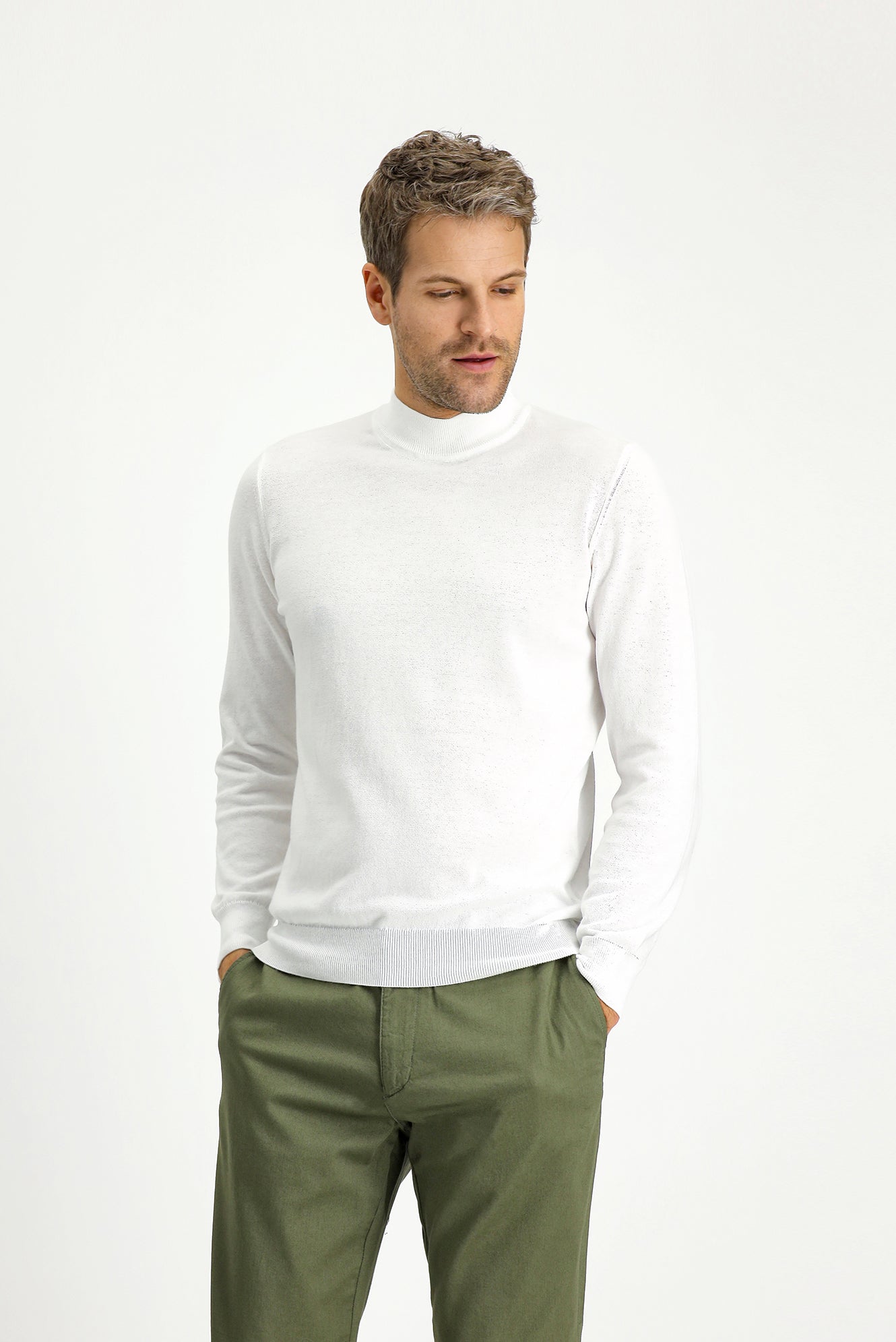 Kırık Beyaz Yarım Balıkçı Yaka Regular Fit Pamuklu Kaşmirli Triko Kazak