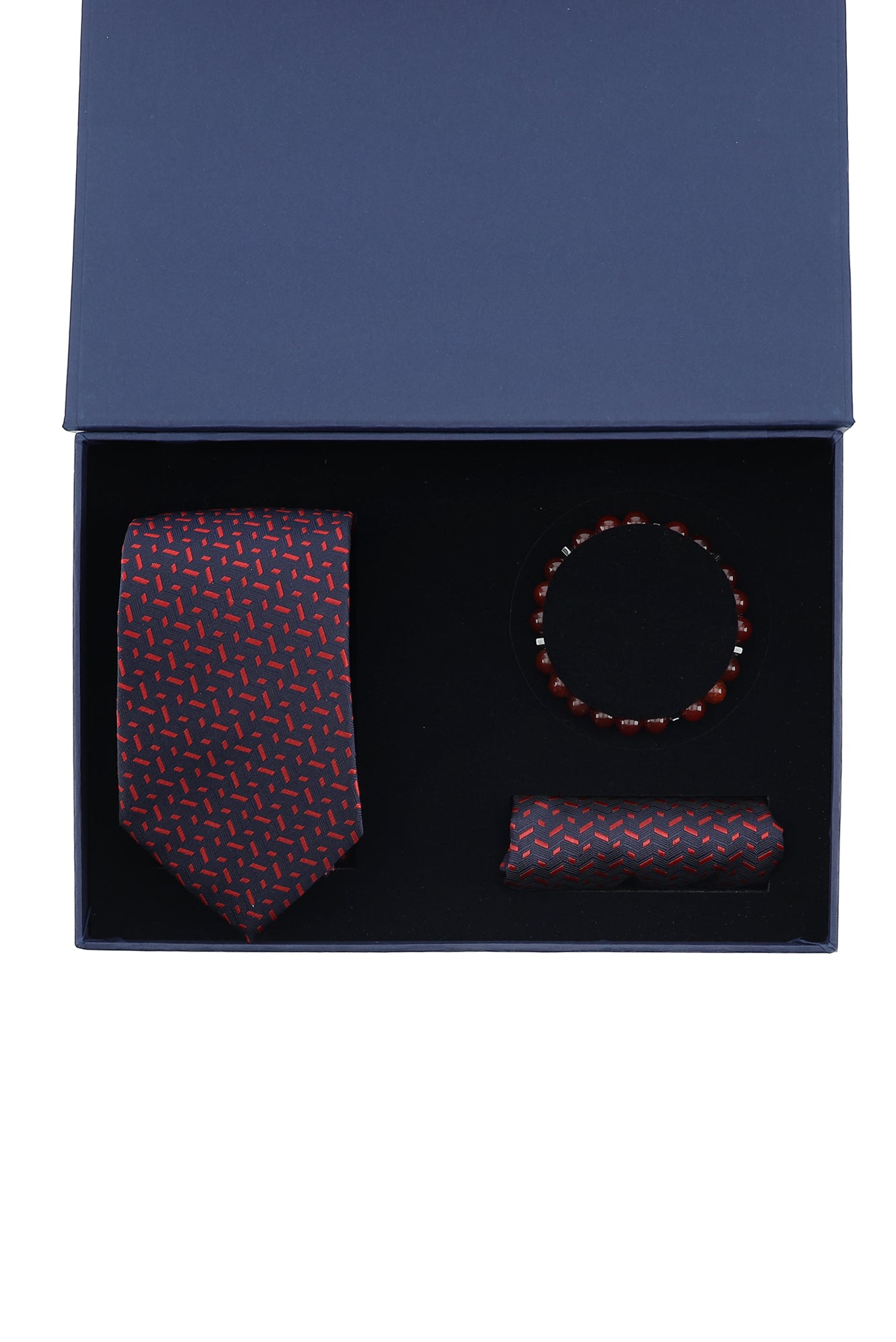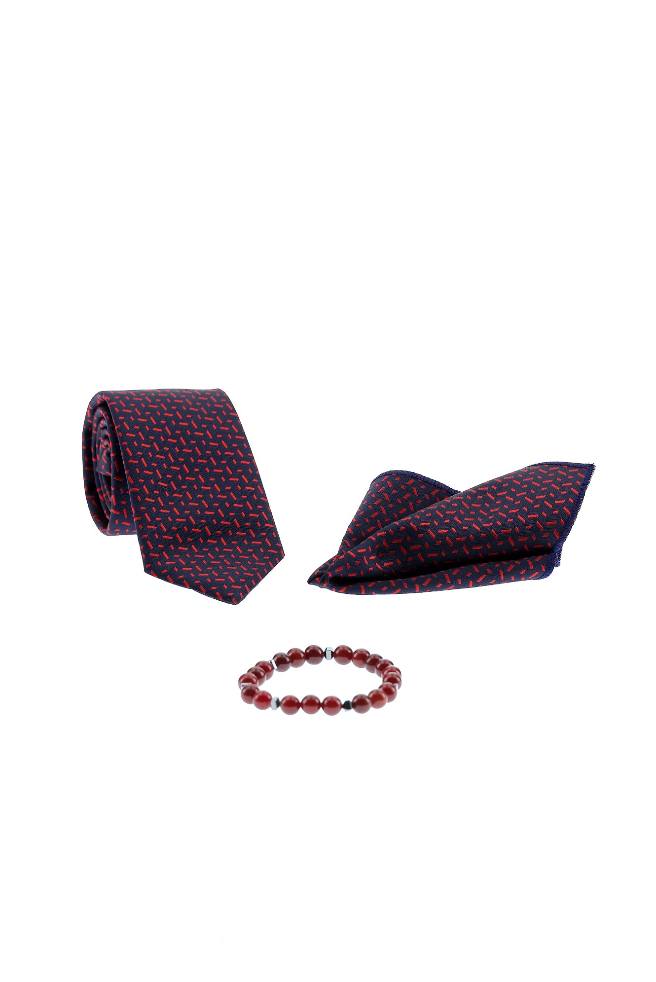 Kırmızı 3'lü Kravat & Mendil & Bileklik Seti