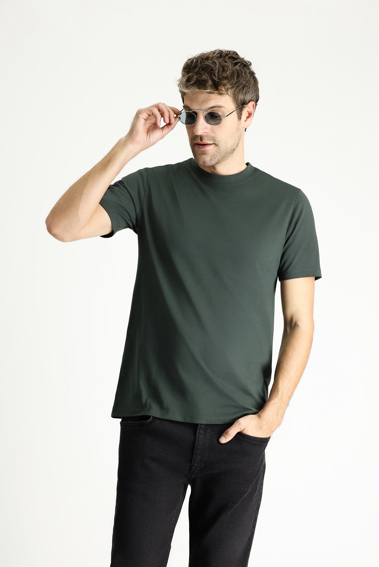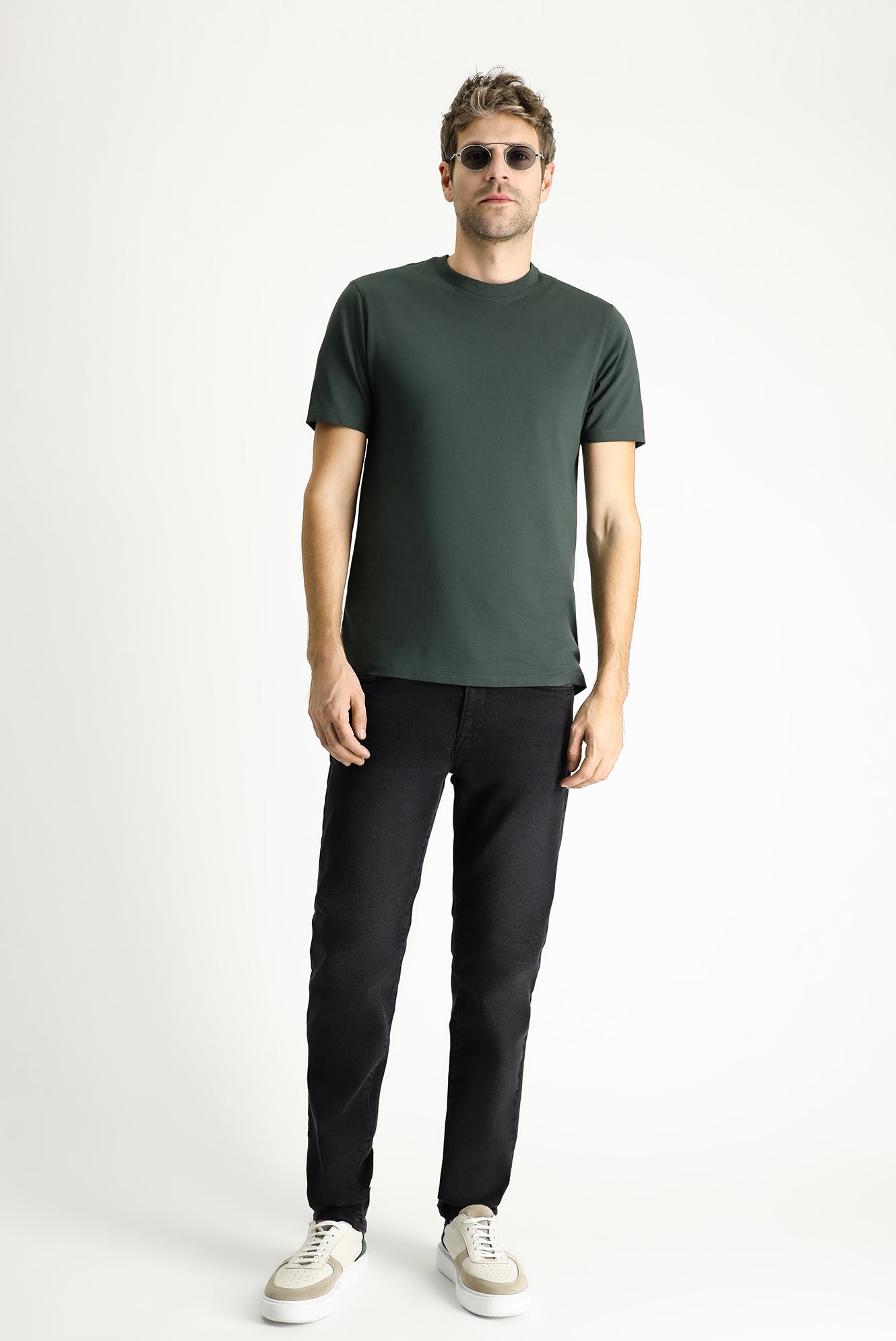 Koyu Antrasit Bisiklet Yaka Regular Fit %100 Pamuk Tişört