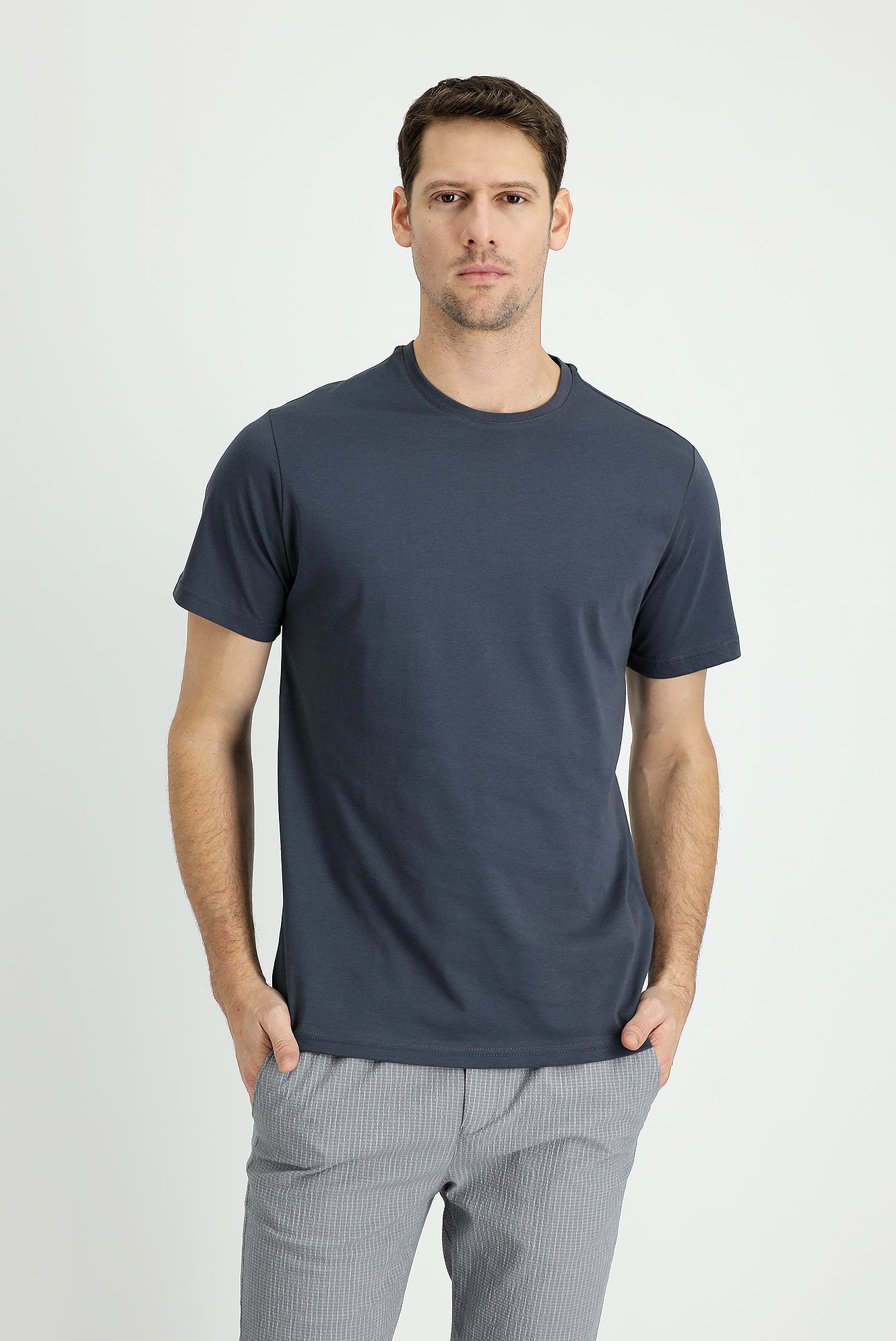 Koyu Antrasit Bisiklet Yaka Regular Fit Süprem Pamuk Tişört