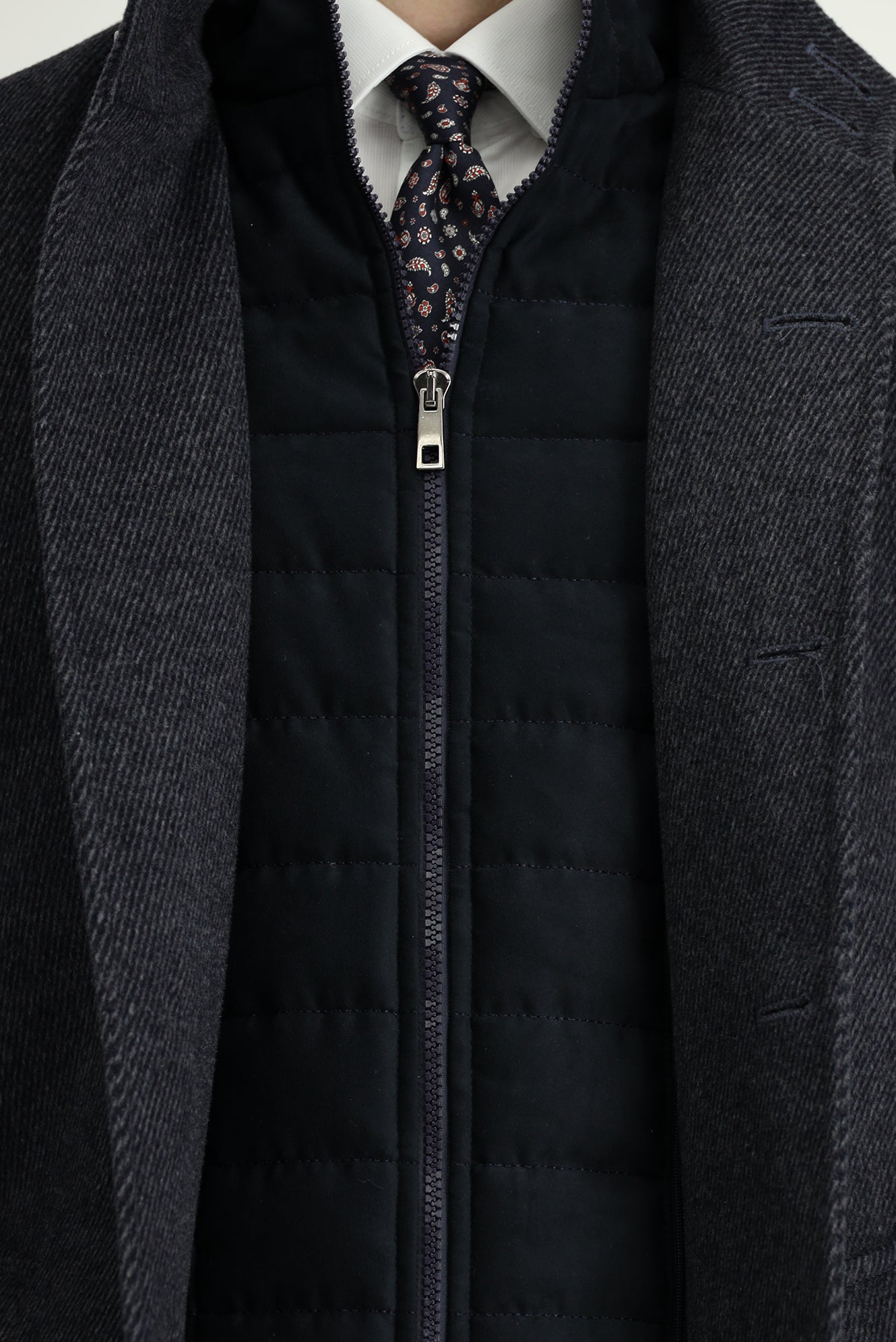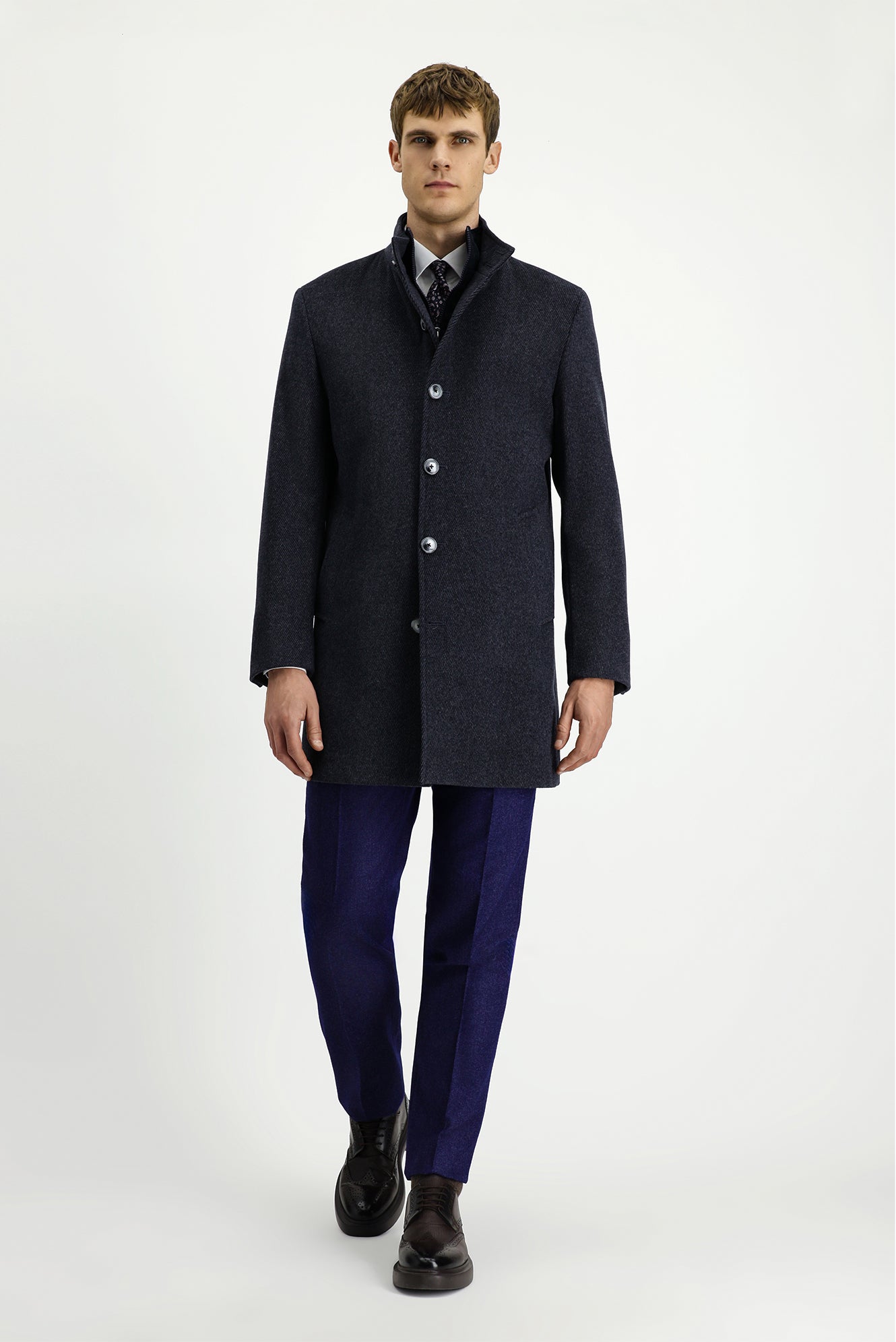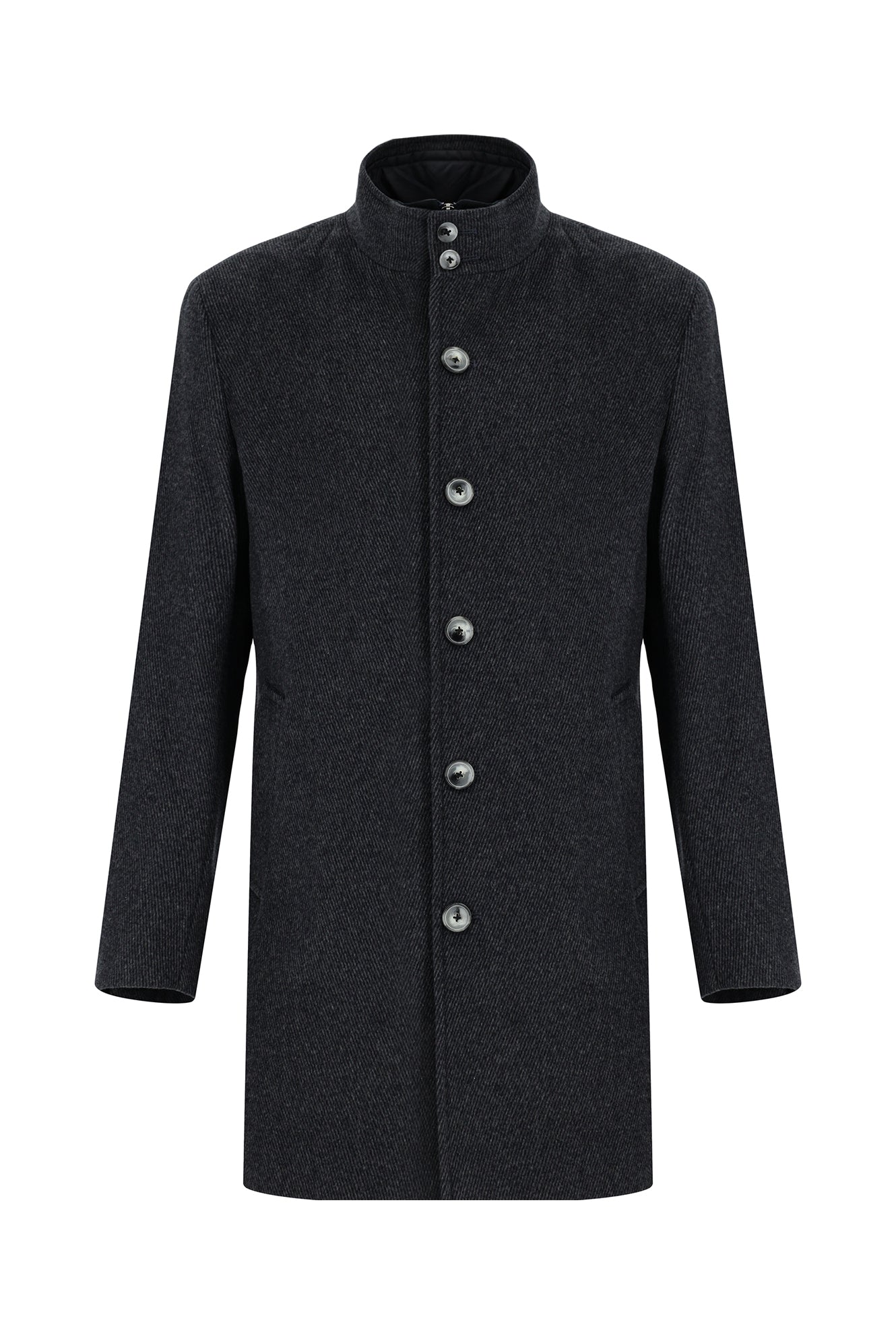 Koyu Antrasit Dik Yaka Çıkma Mostra Cepli Yünlü Klasik Kaban