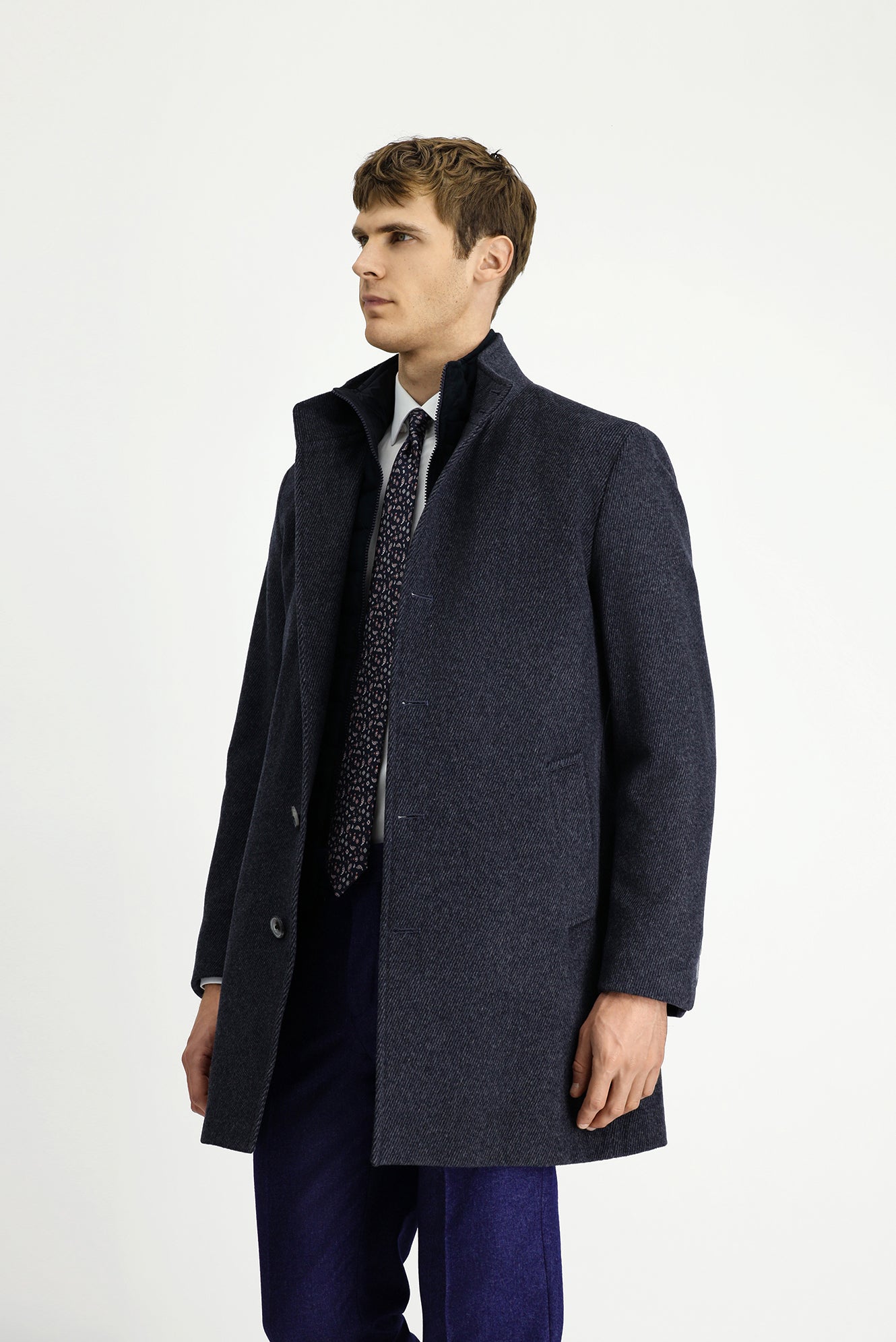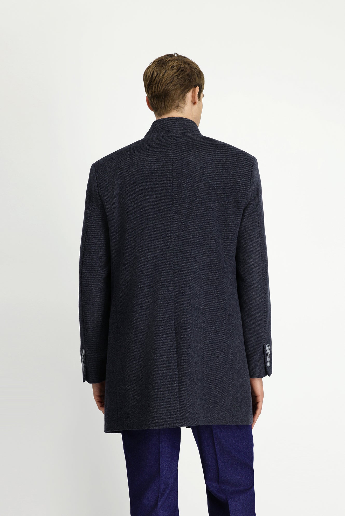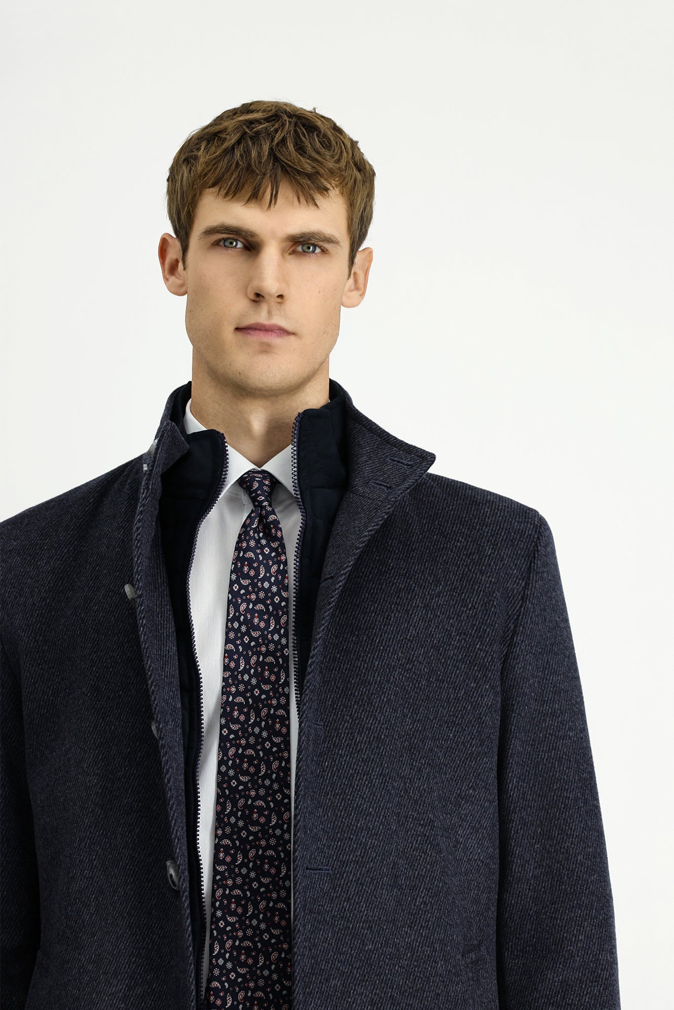 Koyu Antrasit Dik Yaka Çıkma Mostra Cepli Yünlü Klasik Kaban